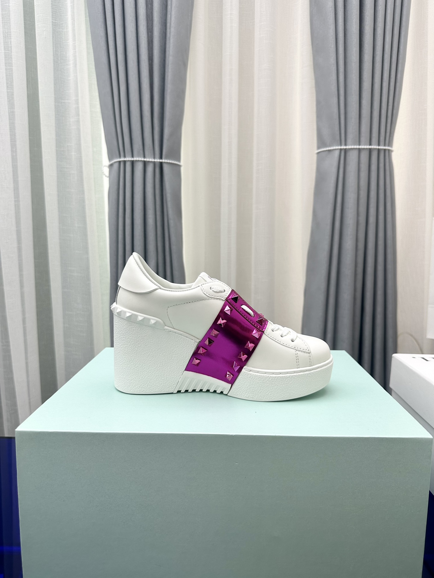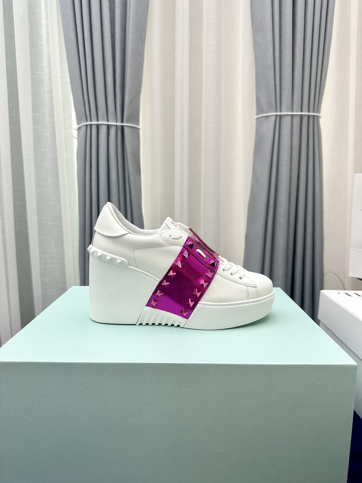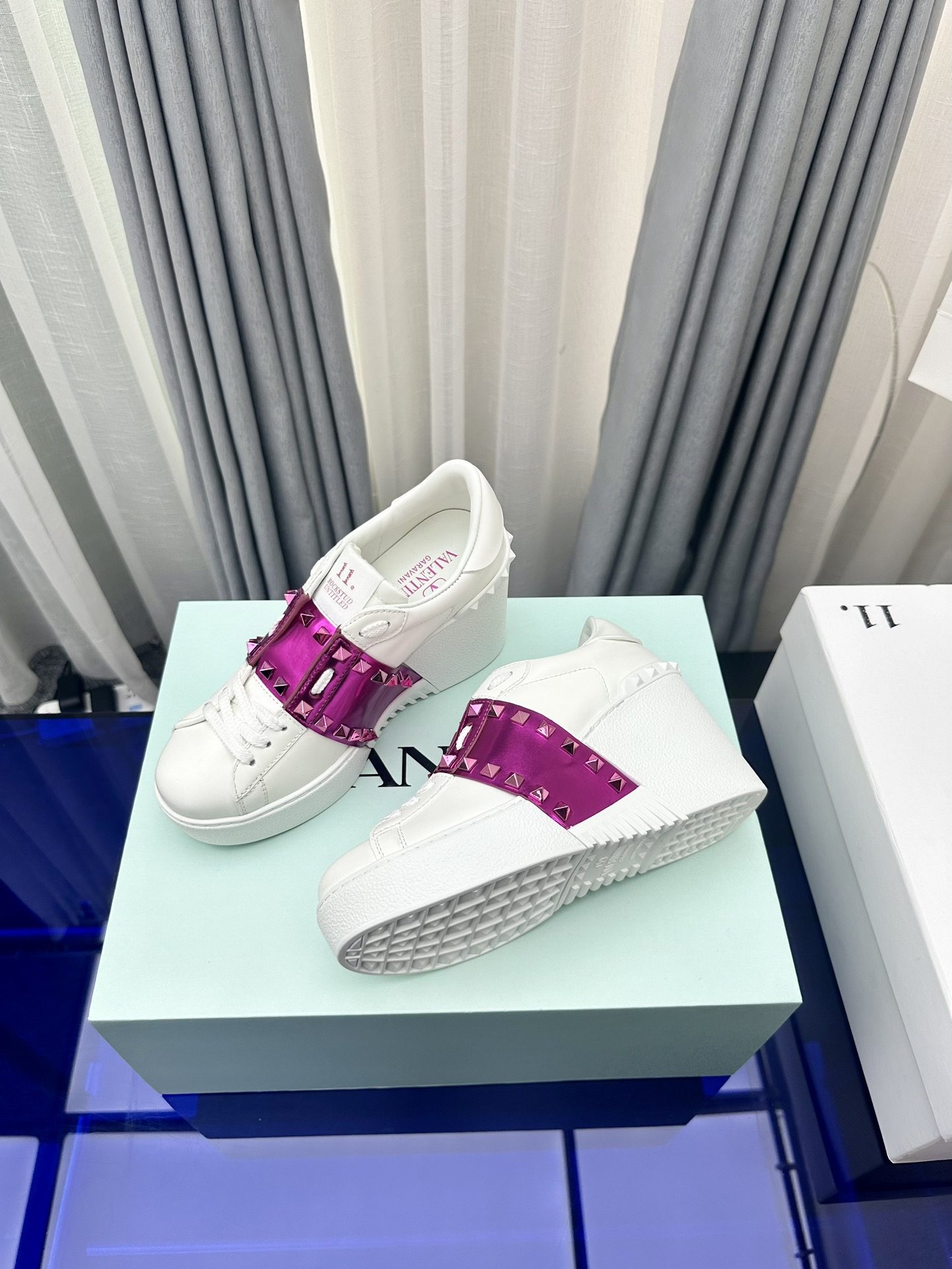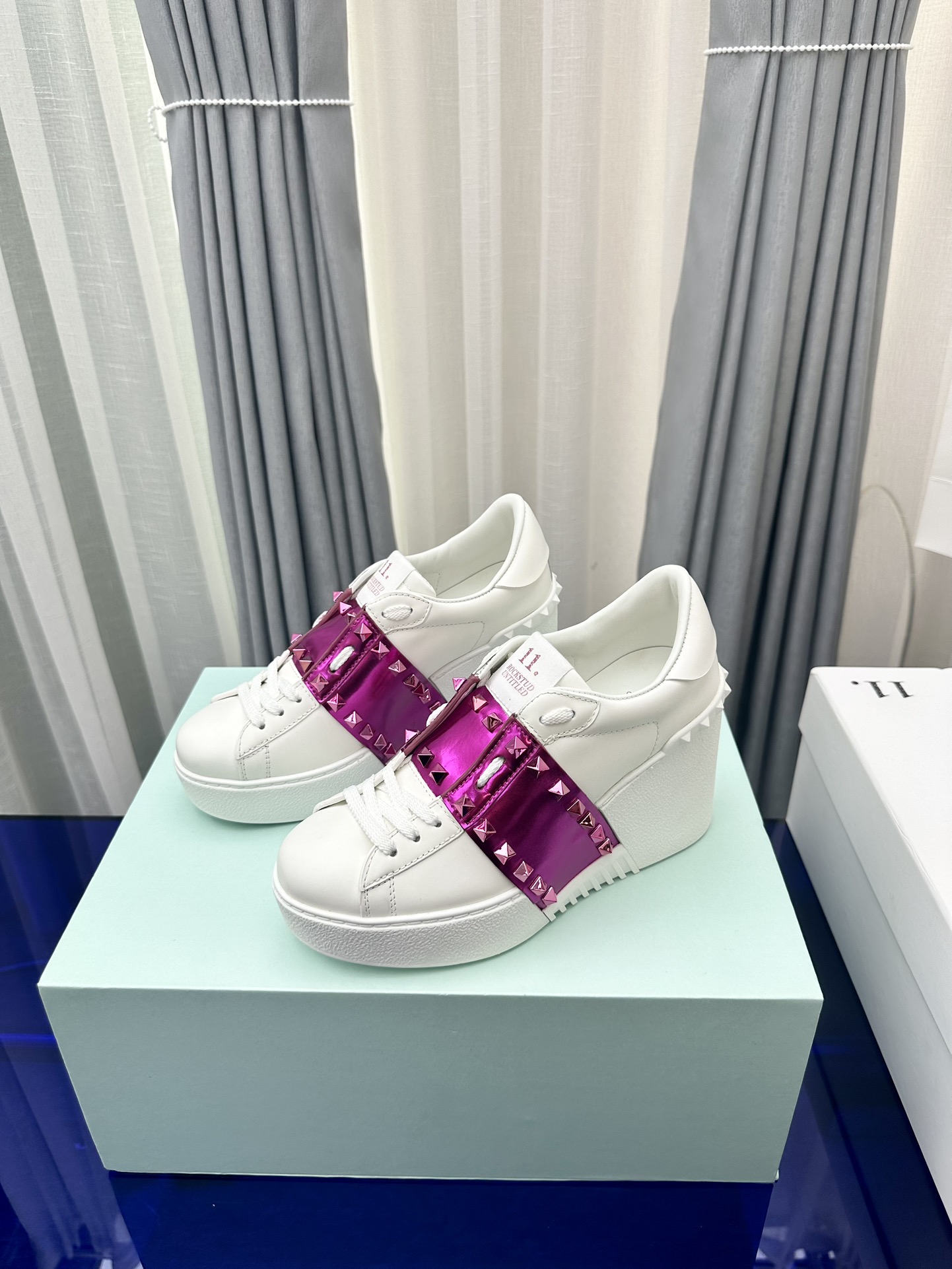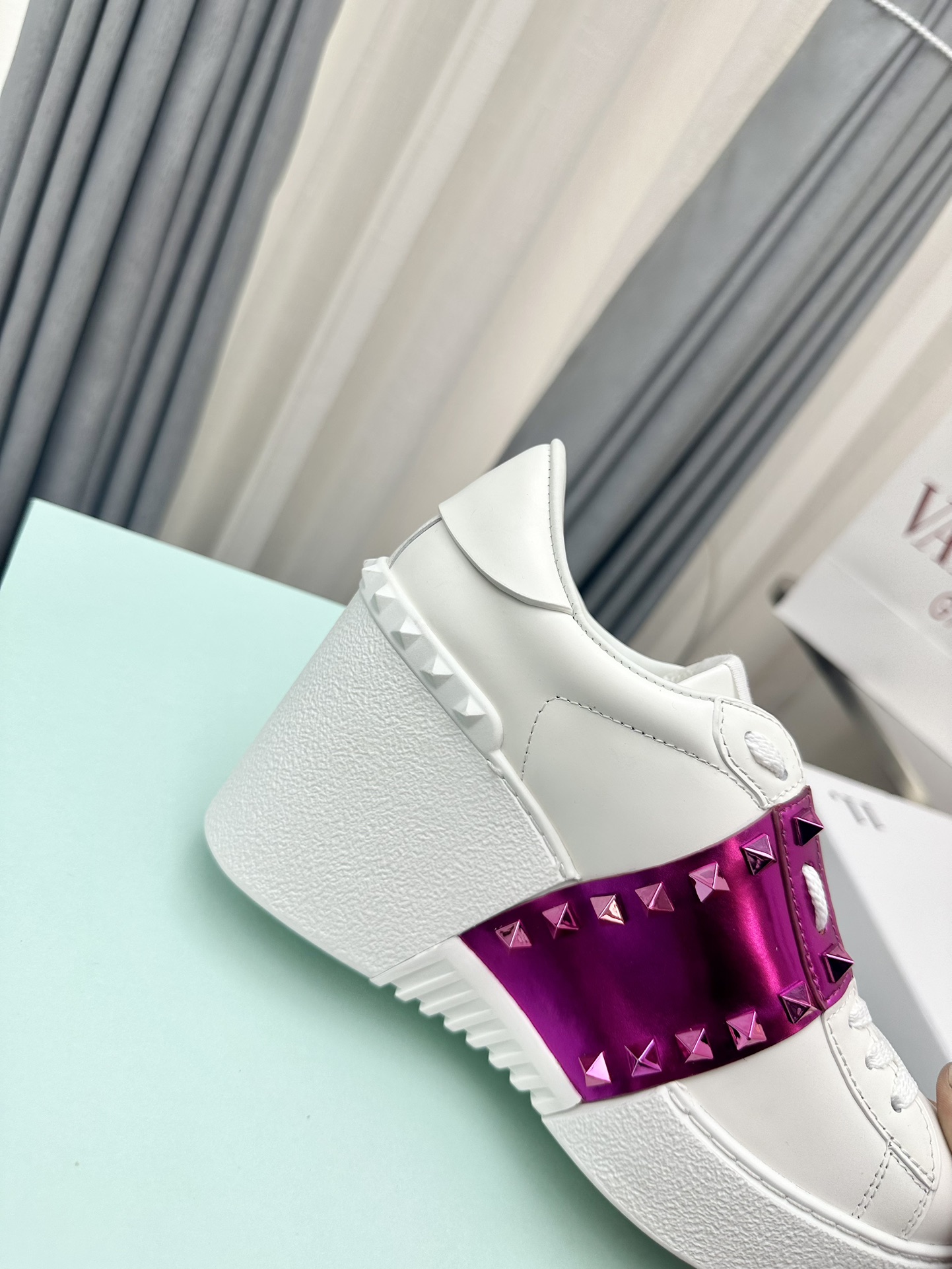 这款鞋子是AAAAA 1:1 质量 (非常棒). 使用了和原版一模一样的材料. 商标部分也保持了和华伦天奴/Valentino一样. 图片拍摄是实物鞋子拍摄, 您所收到的实物保证和我们图片一模一样.