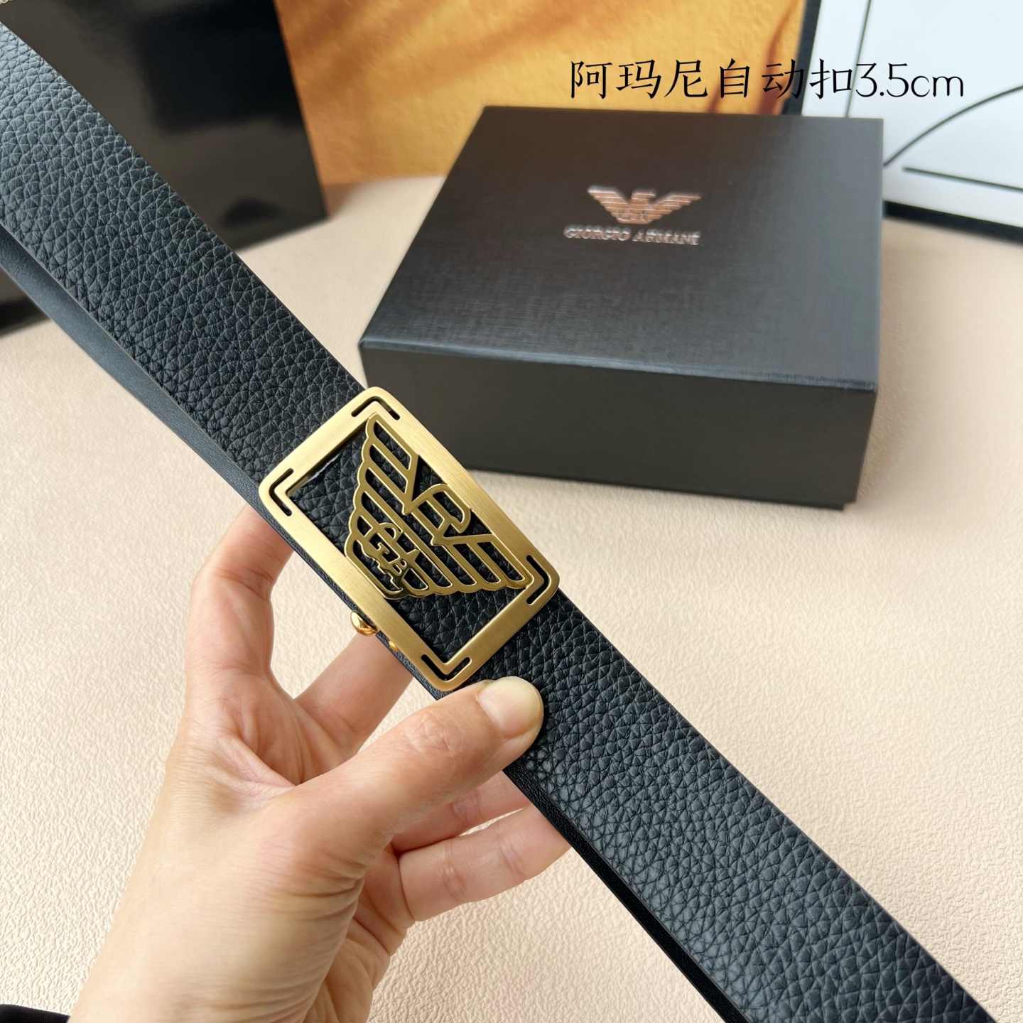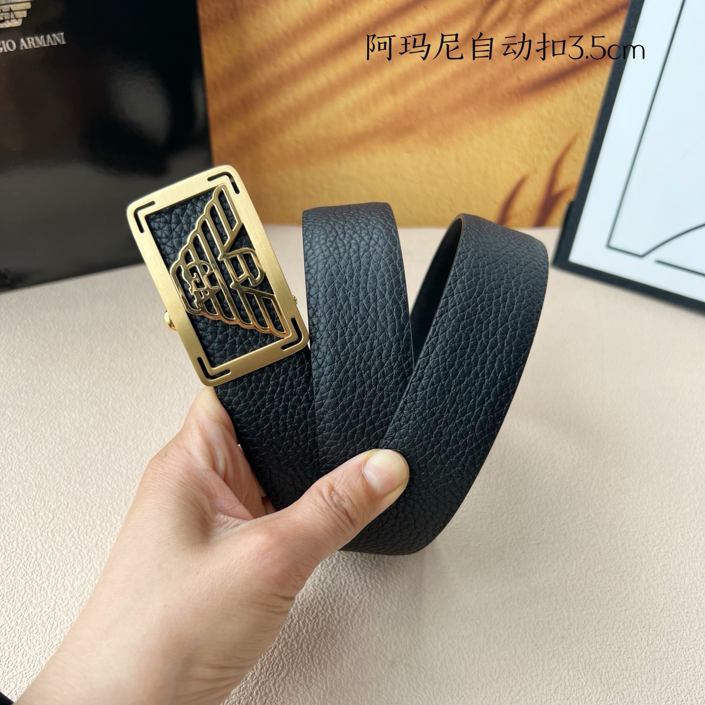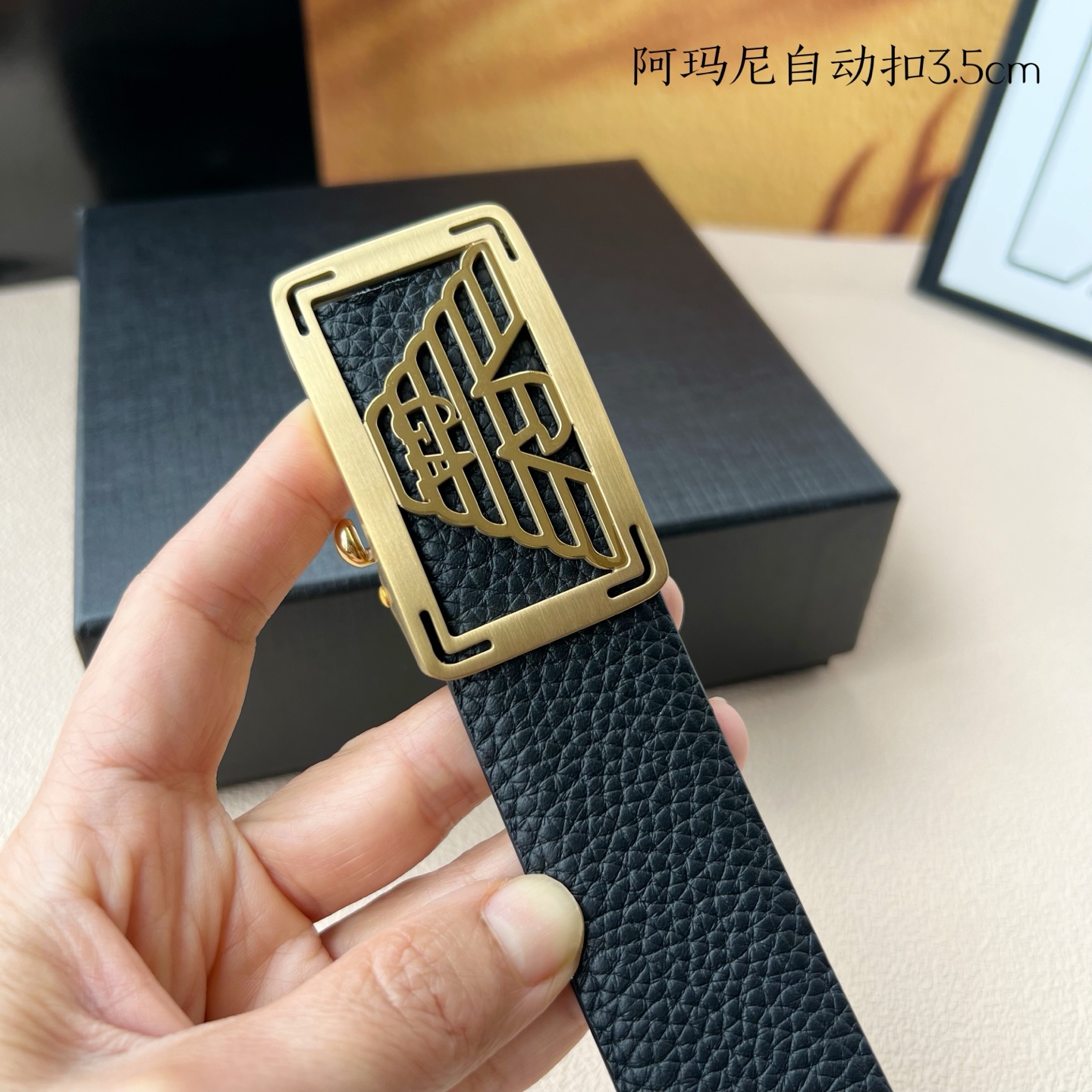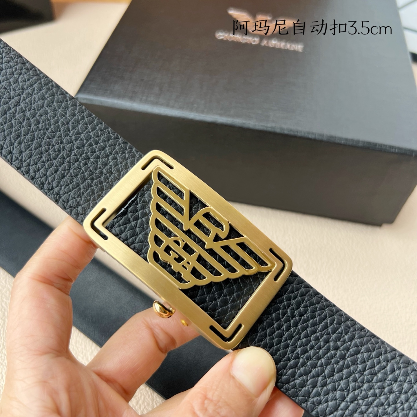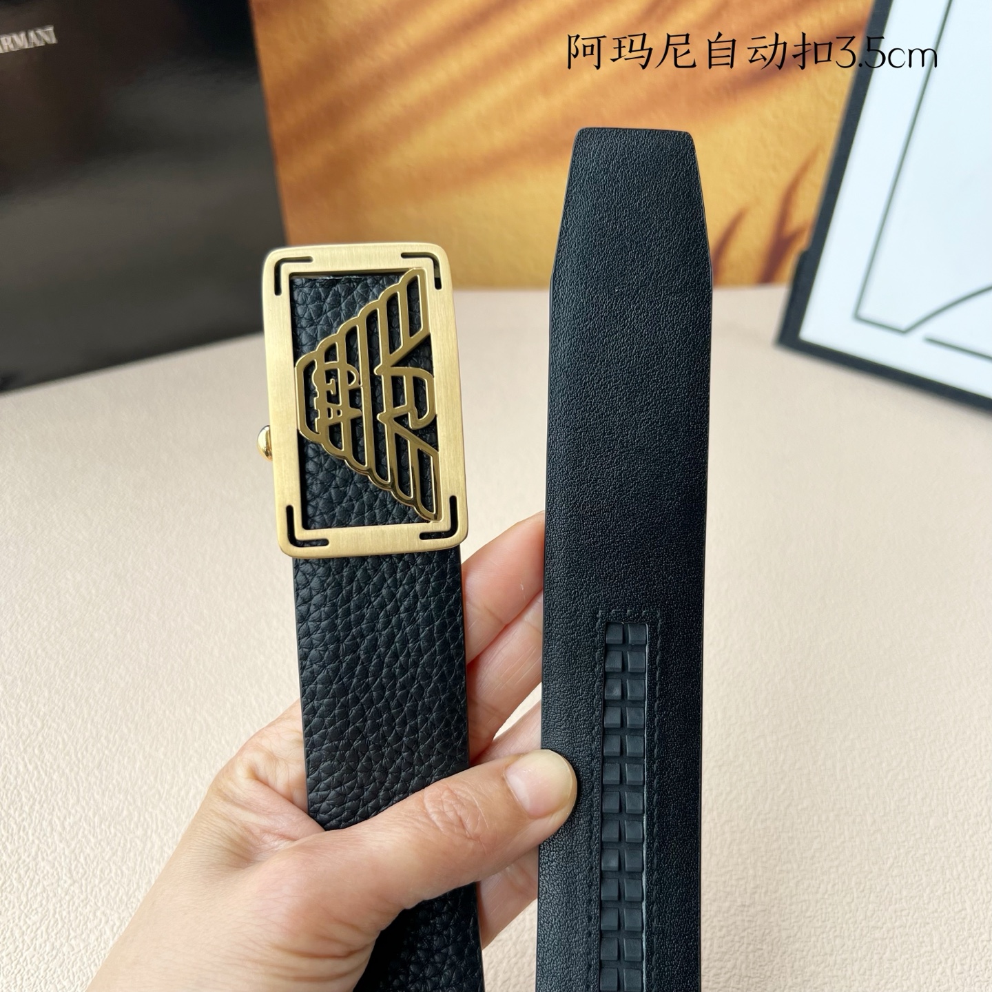 这款皮带是AAAAA 1:1 质量 (非常棒). 使用了和原版一模一样的材料. 商标部分也保持了和阿玛尼/Armani一样. 图片拍摄是实物皮带拍摄, 您所收到的实物保证和我们图片一模一样.