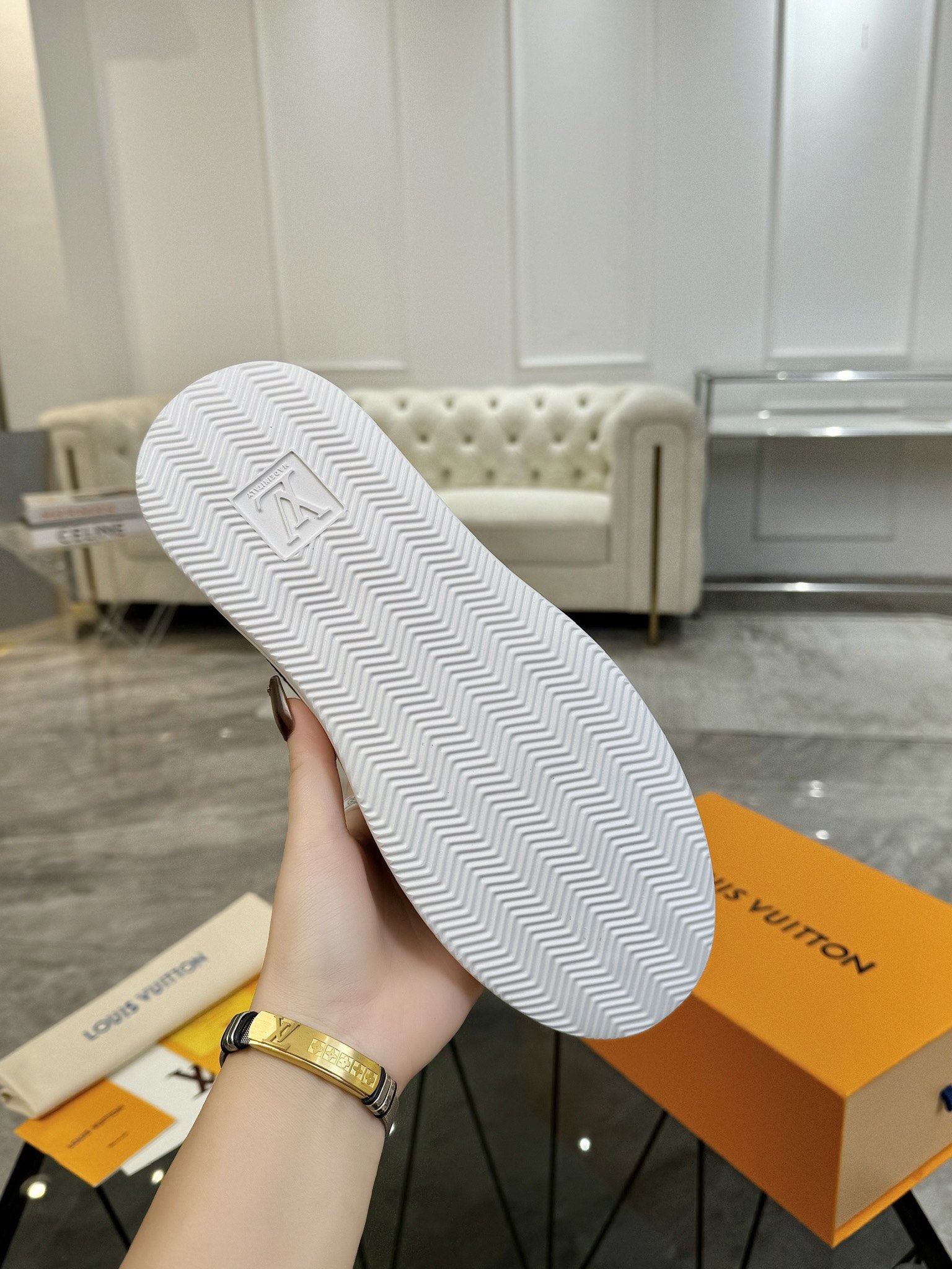 这款鞋子是AAAAA 1:1 质量 (非常棒). 使用了和原版一模一样的材料. 商标部分也保持了和路易威登/Louis Vuitton一样. 图片拍摄是实物鞋子拍摄, 您所收到的实物保证和我们图片一模一样.
