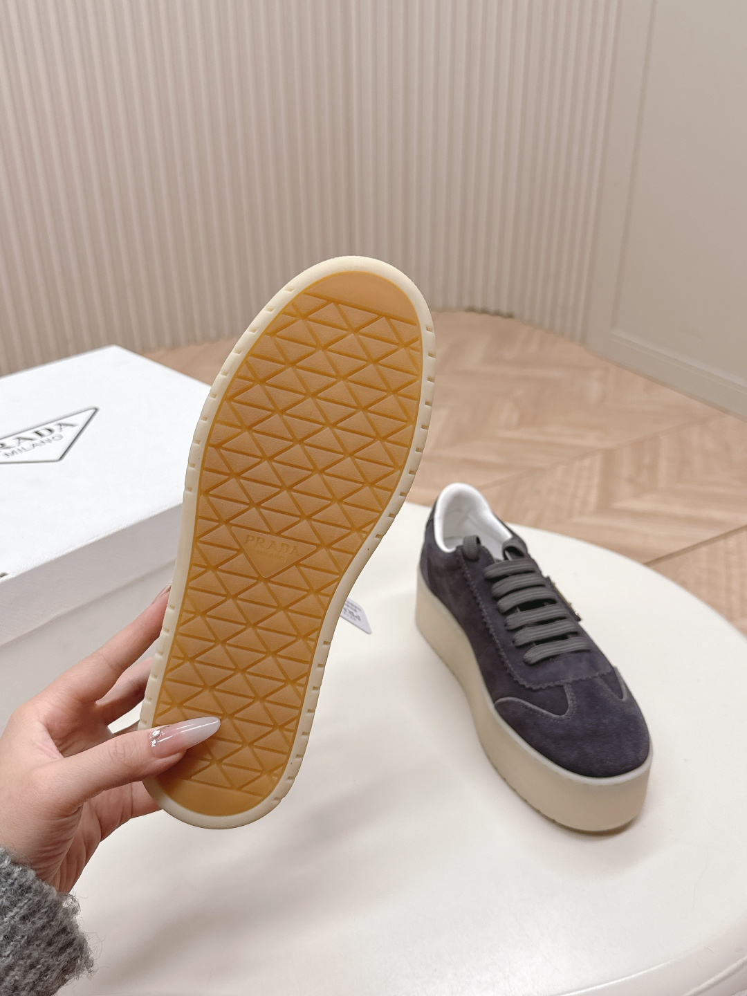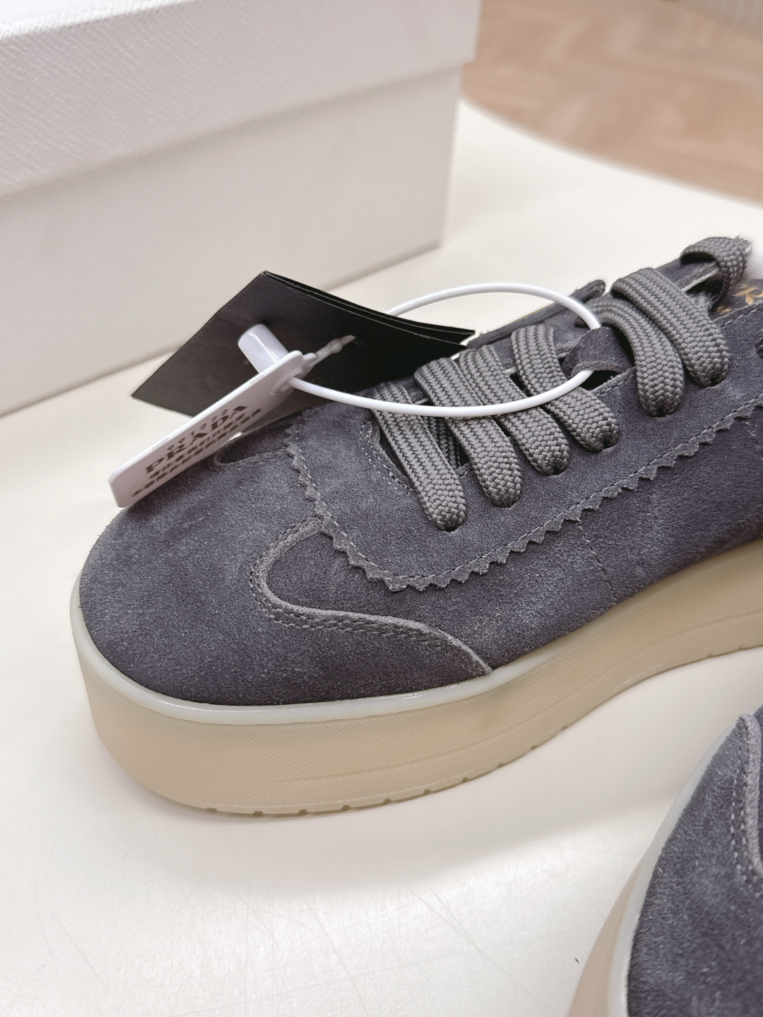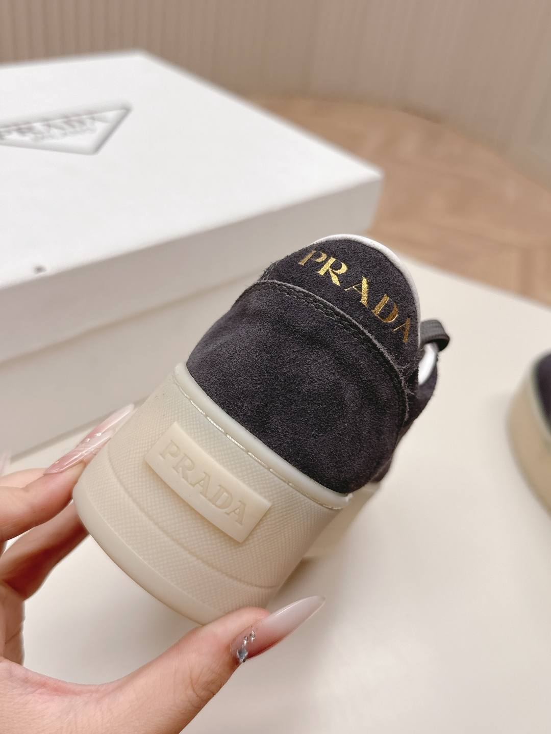 这款鞋子是AAAAA 1:1 质量 (非常棒). 使用了和原版一模一样的材料. 商标部分也保持了和普拉达/Prada一样. 图片拍摄是实物鞋子拍摄, 您所收到的实物保证和我们图片一模一样.