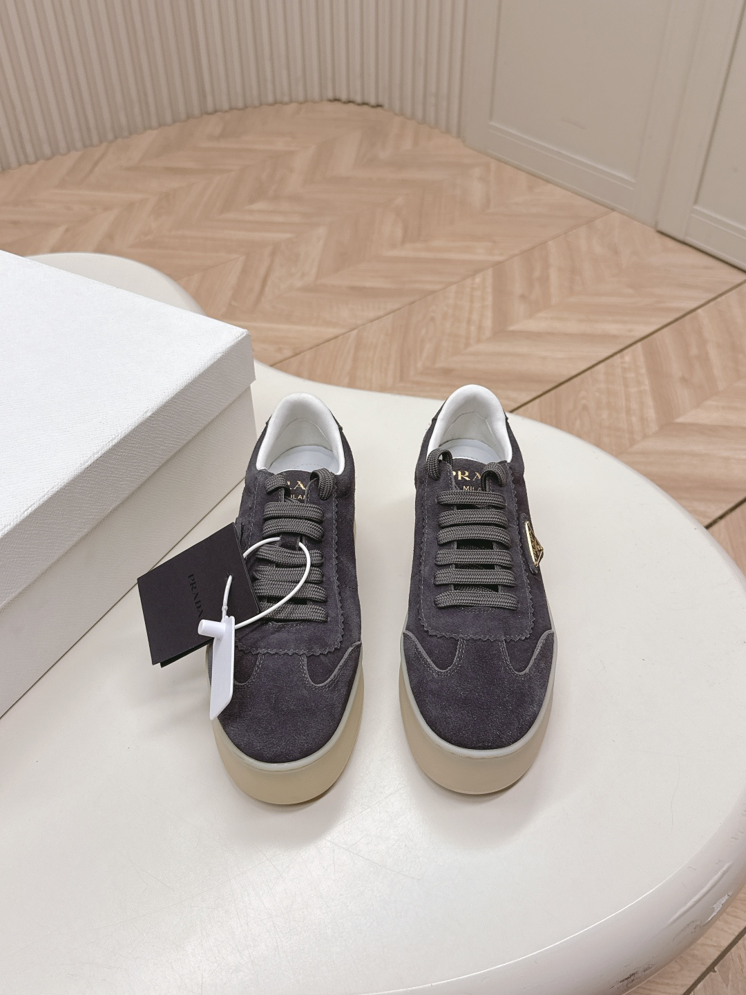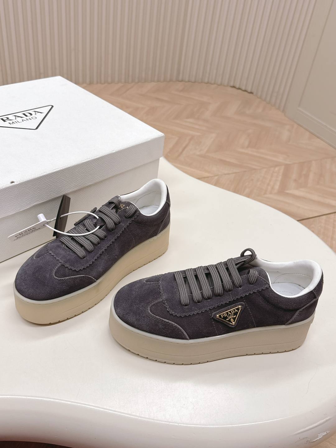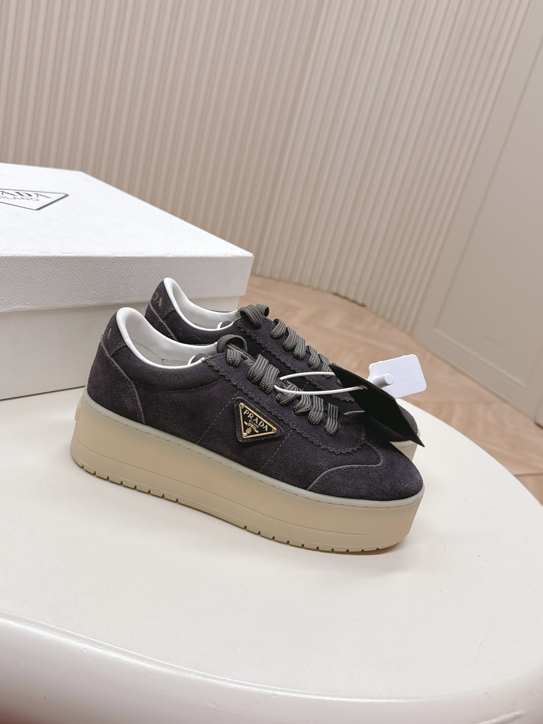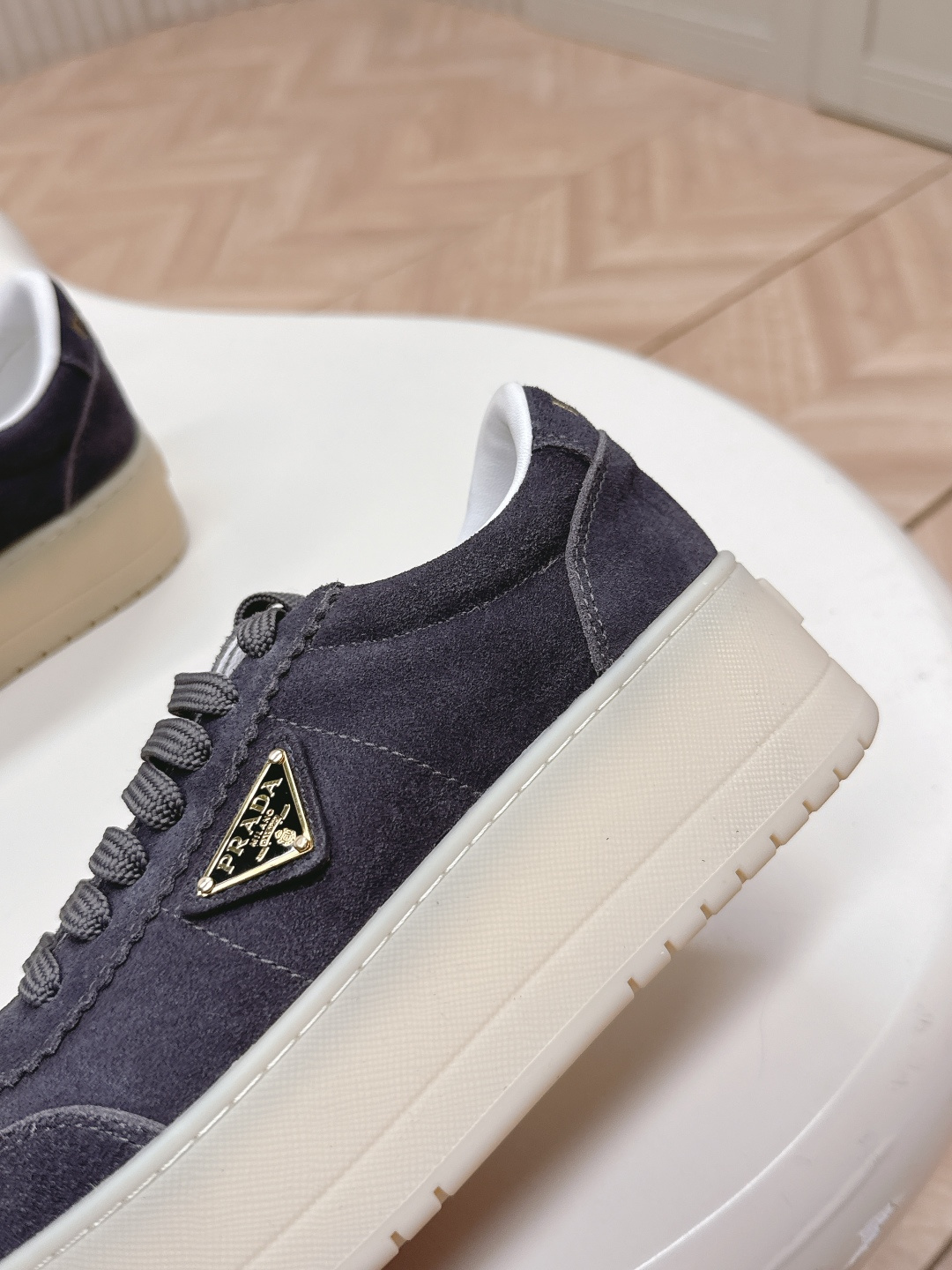 这款鞋子是AAAAA 1:1 质量 (非常棒). 使用了和原版一模一样的材料. 商标部分也保持了和普拉达/Prada一样. 图片拍摄是实物鞋子拍摄, 您所收到的实物保证和我们图片一模一样.
