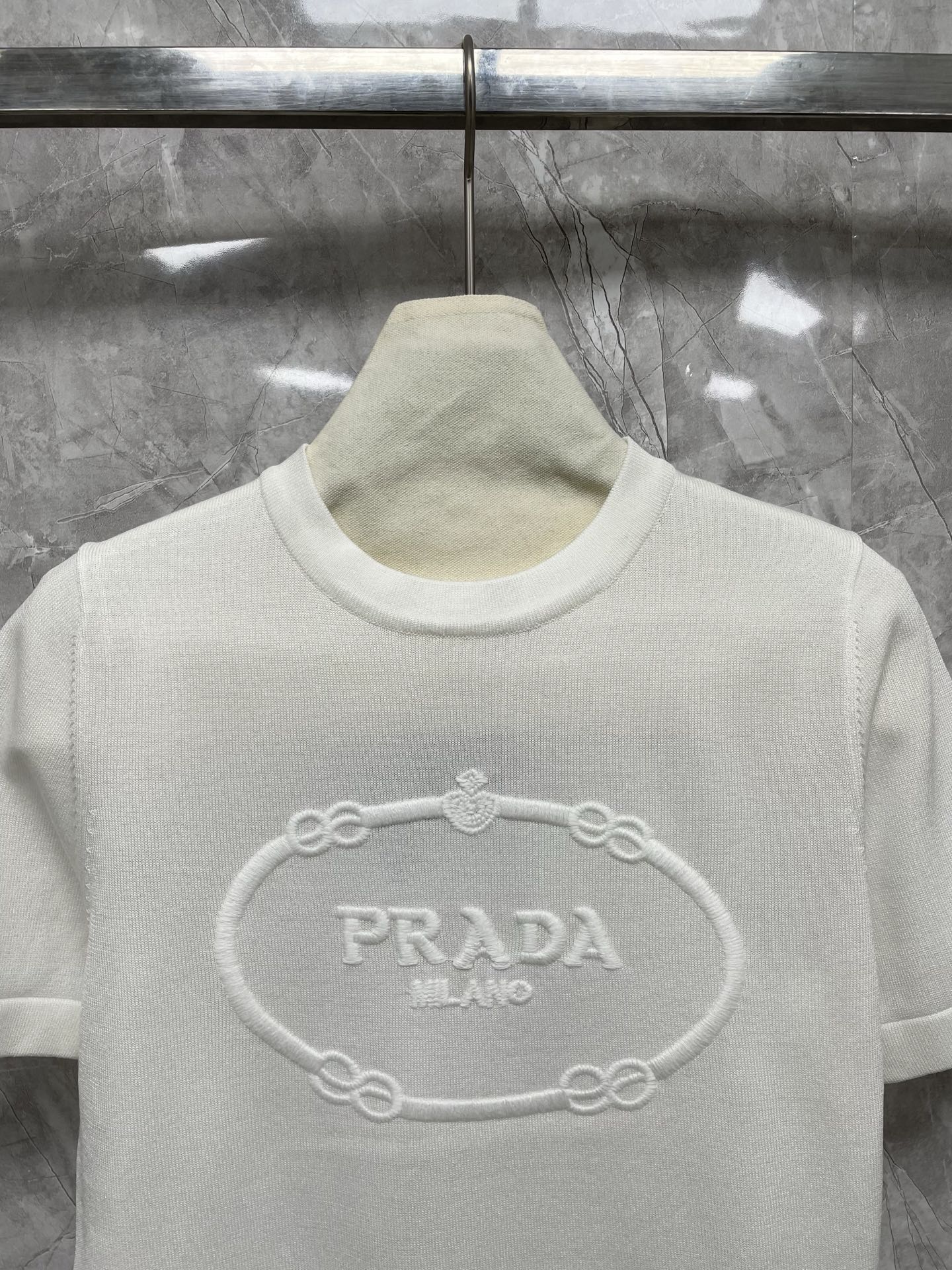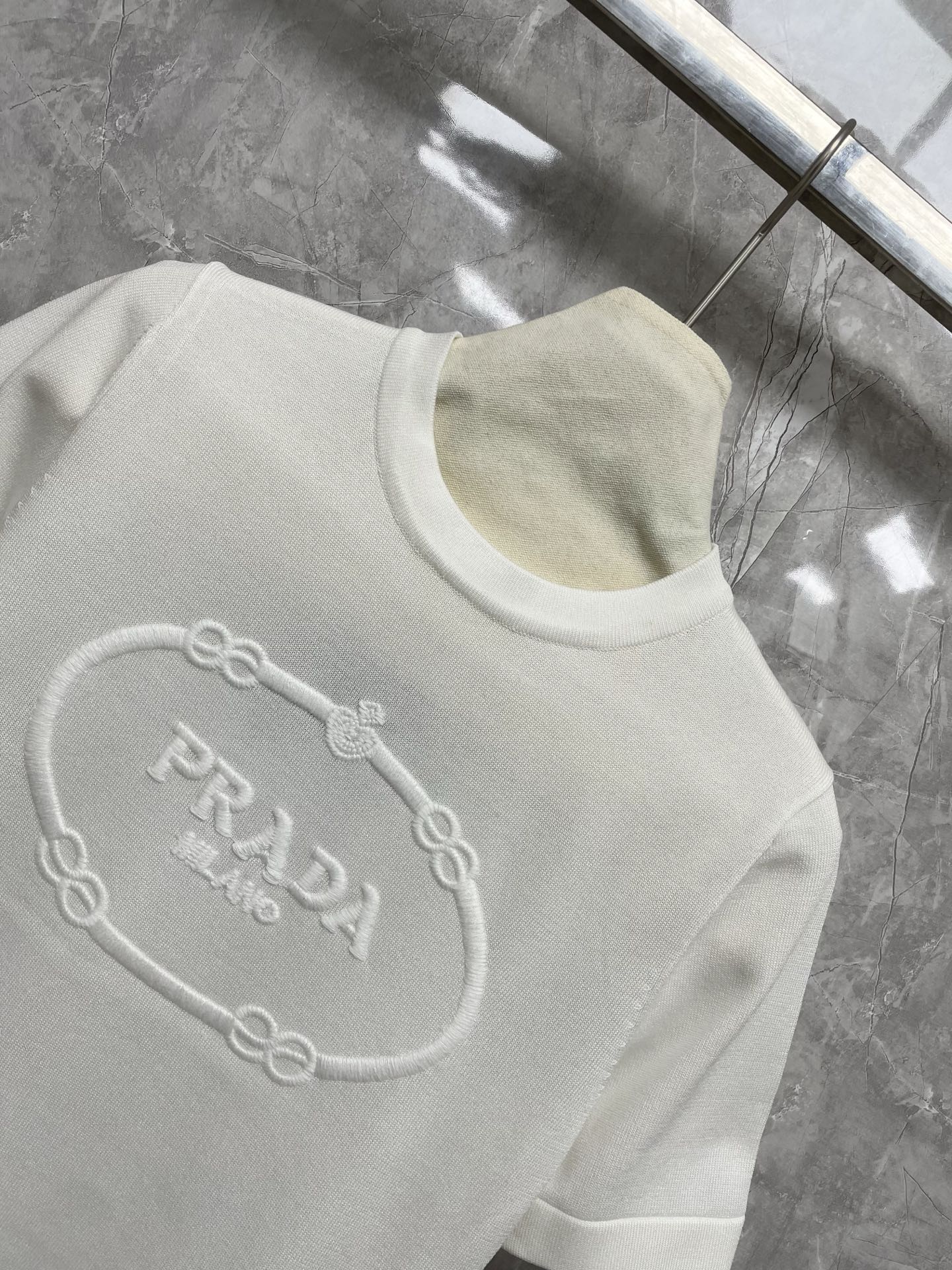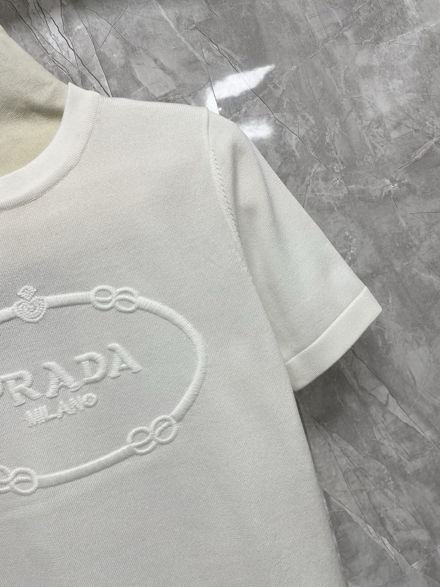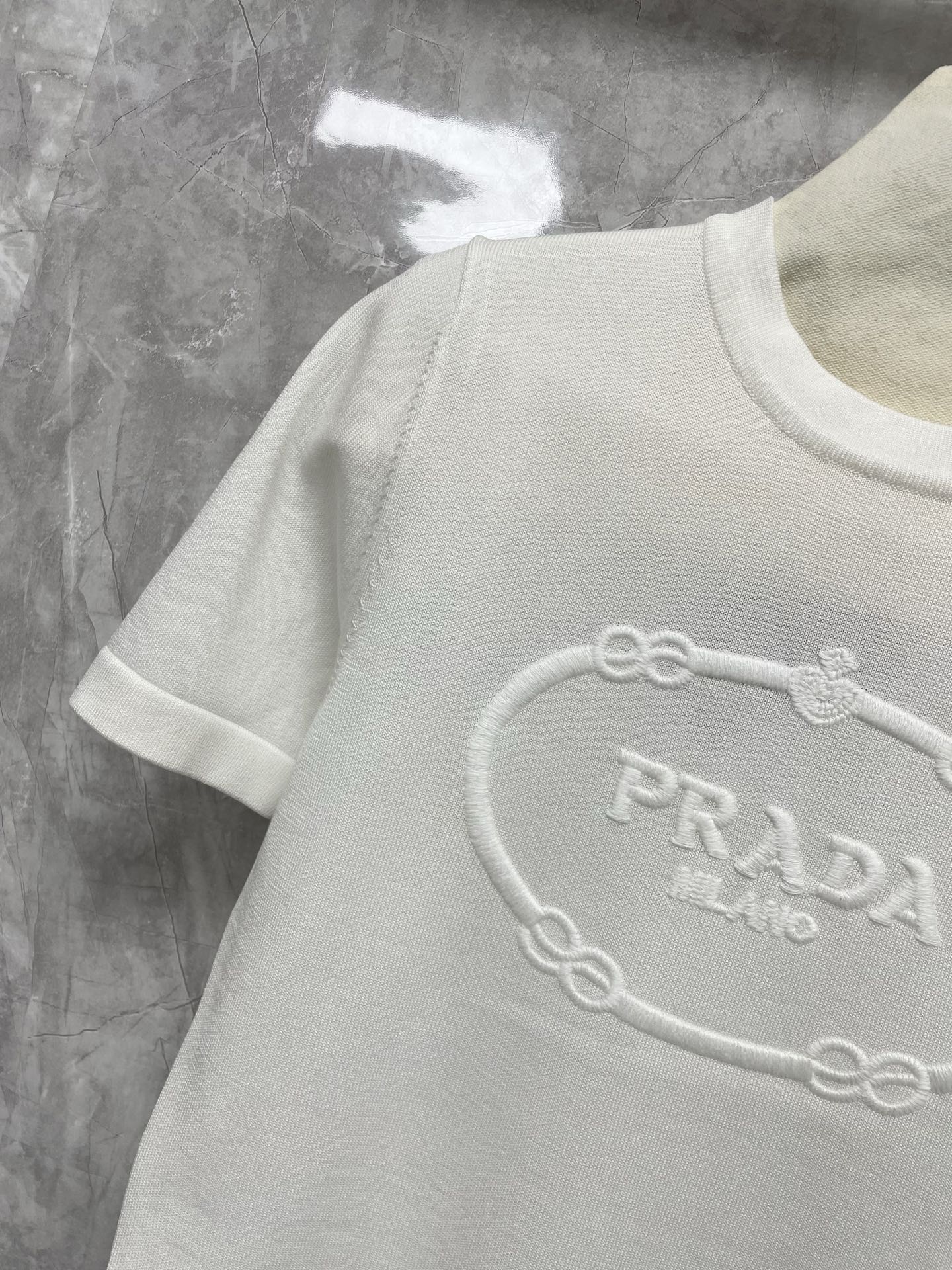 这款衣服是AAAAA 1:1 质量 (非常棒). 使用了和原版一模一样的材料. 商标部分也保持了和普拉达/Prada一样. 图片拍摄是实物衣服拍摄, 您所收到的实物保证和我们图片一模一样.