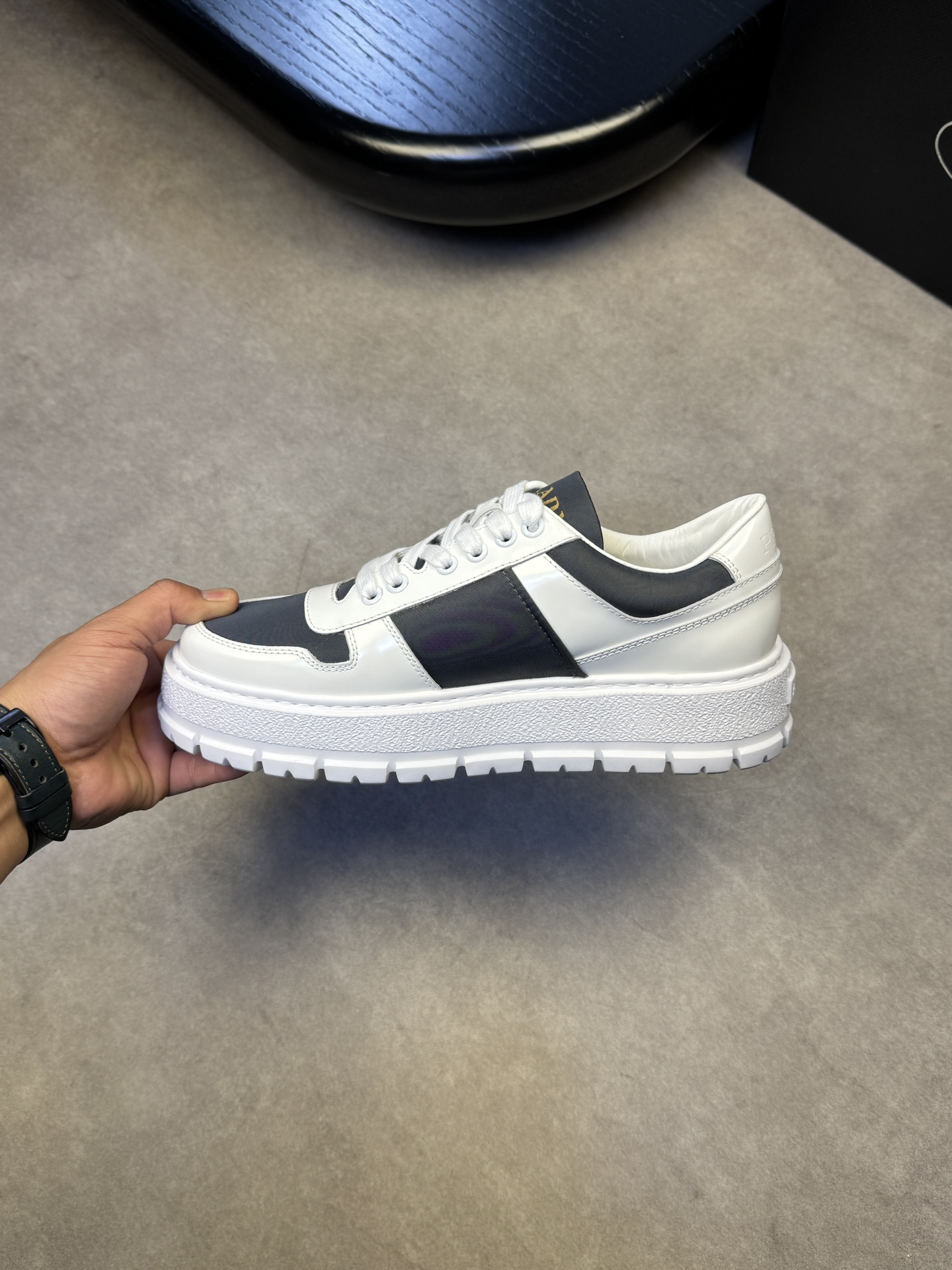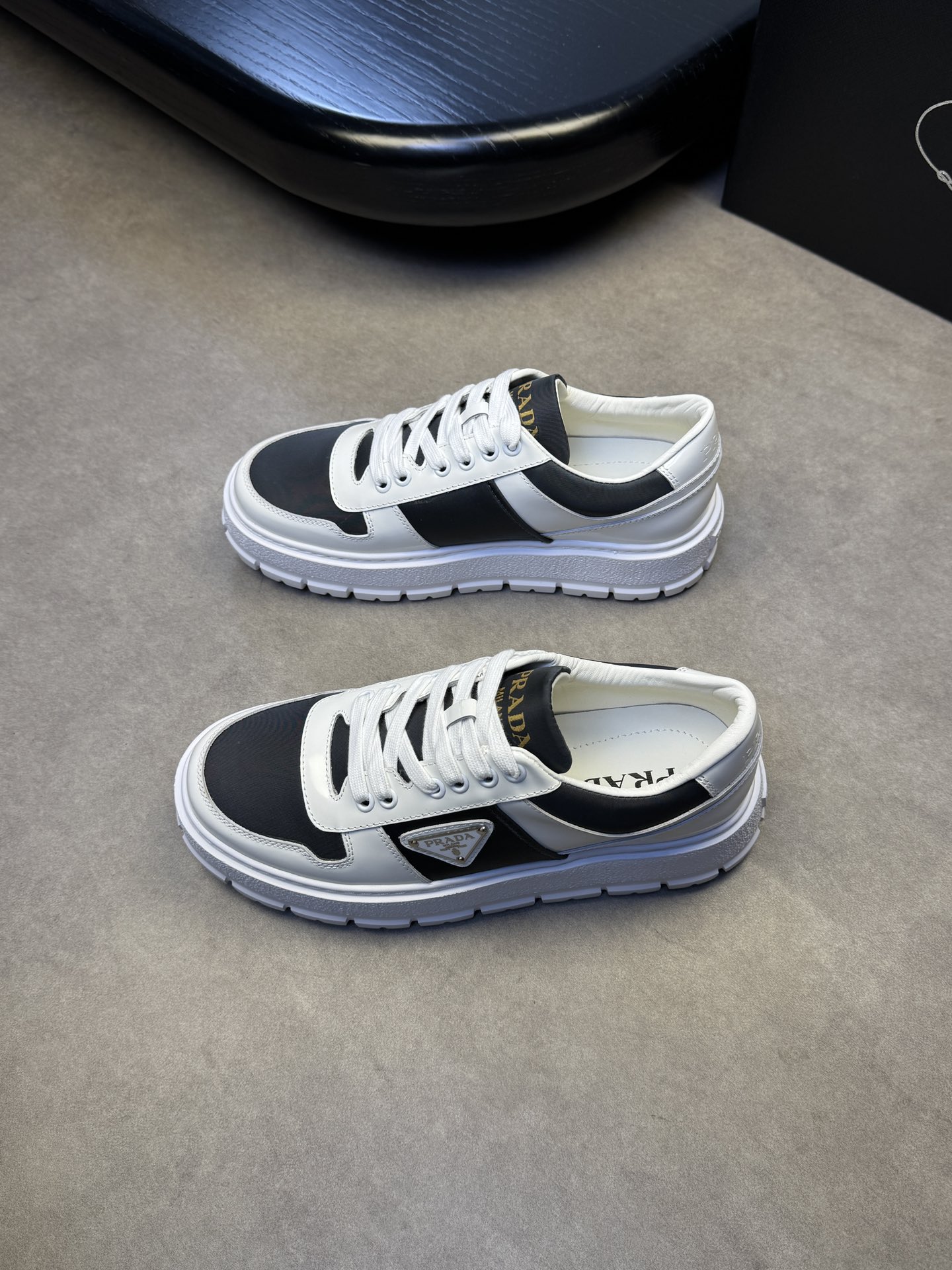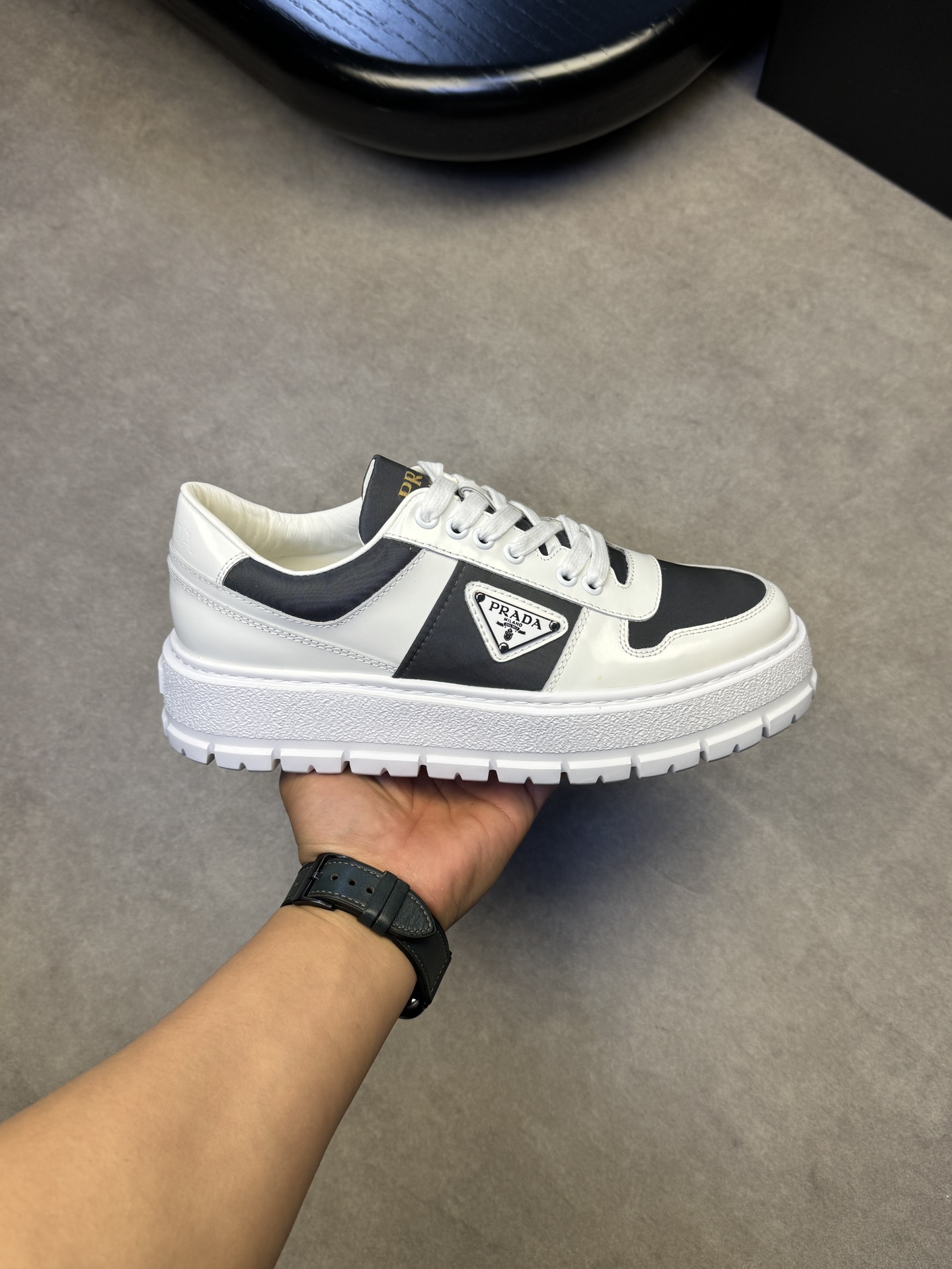 这款鞋子是AAAAA 1:1 质量 (非常棒). 使用了和原版一模一样的材料. 商标部分也保持了和普拉达/Prada一样. 图片拍摄是实物鞋子拍摄, 您所收到的实物保证和我们图片一模一样.