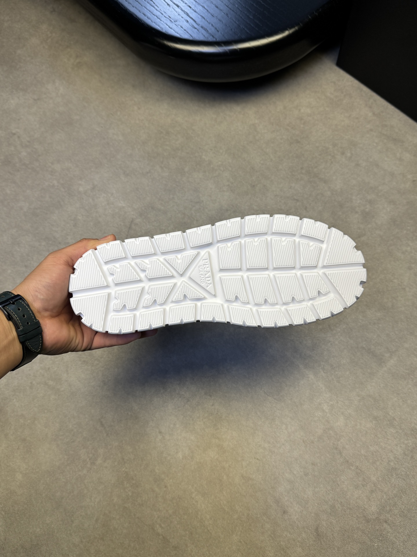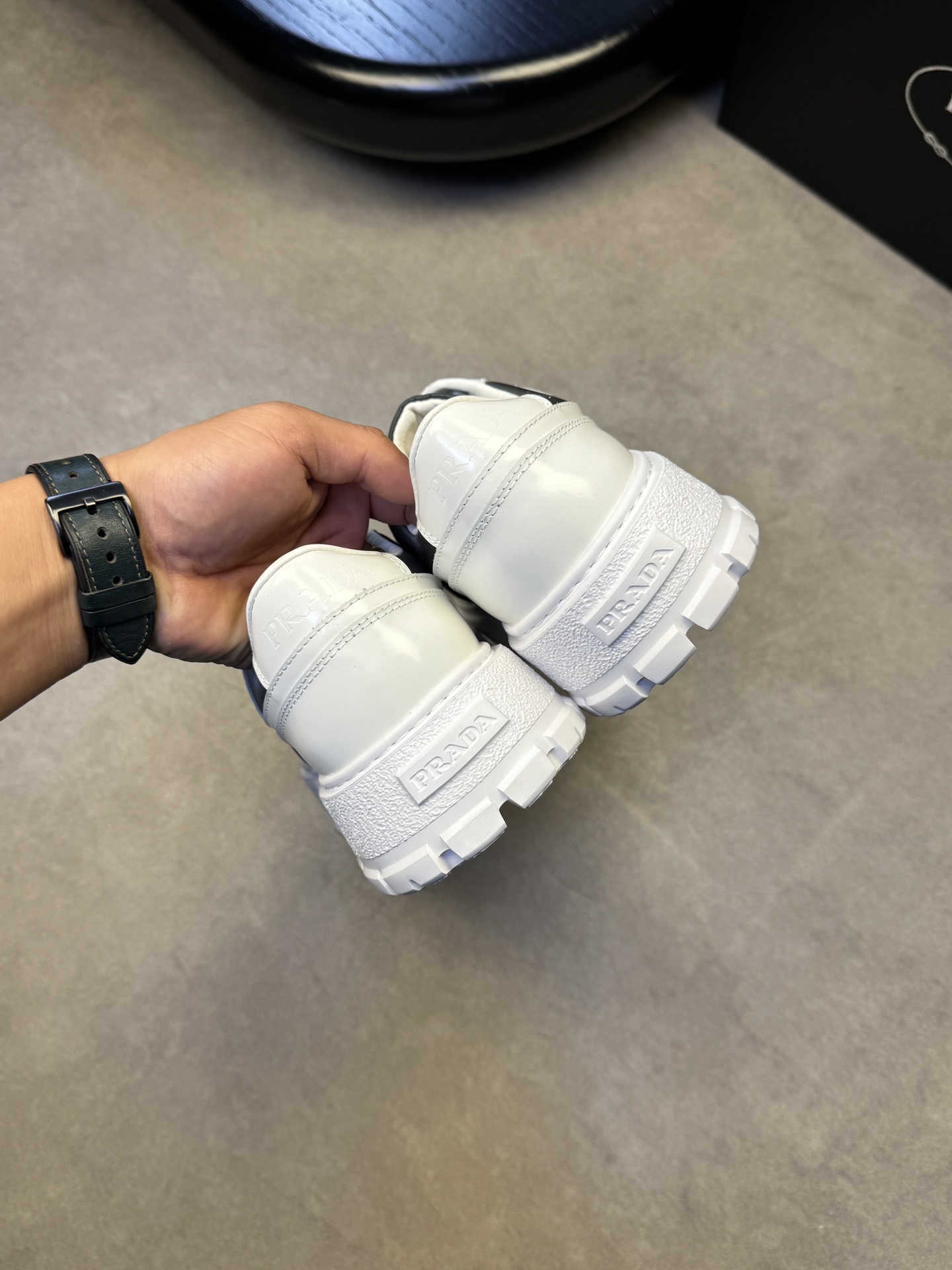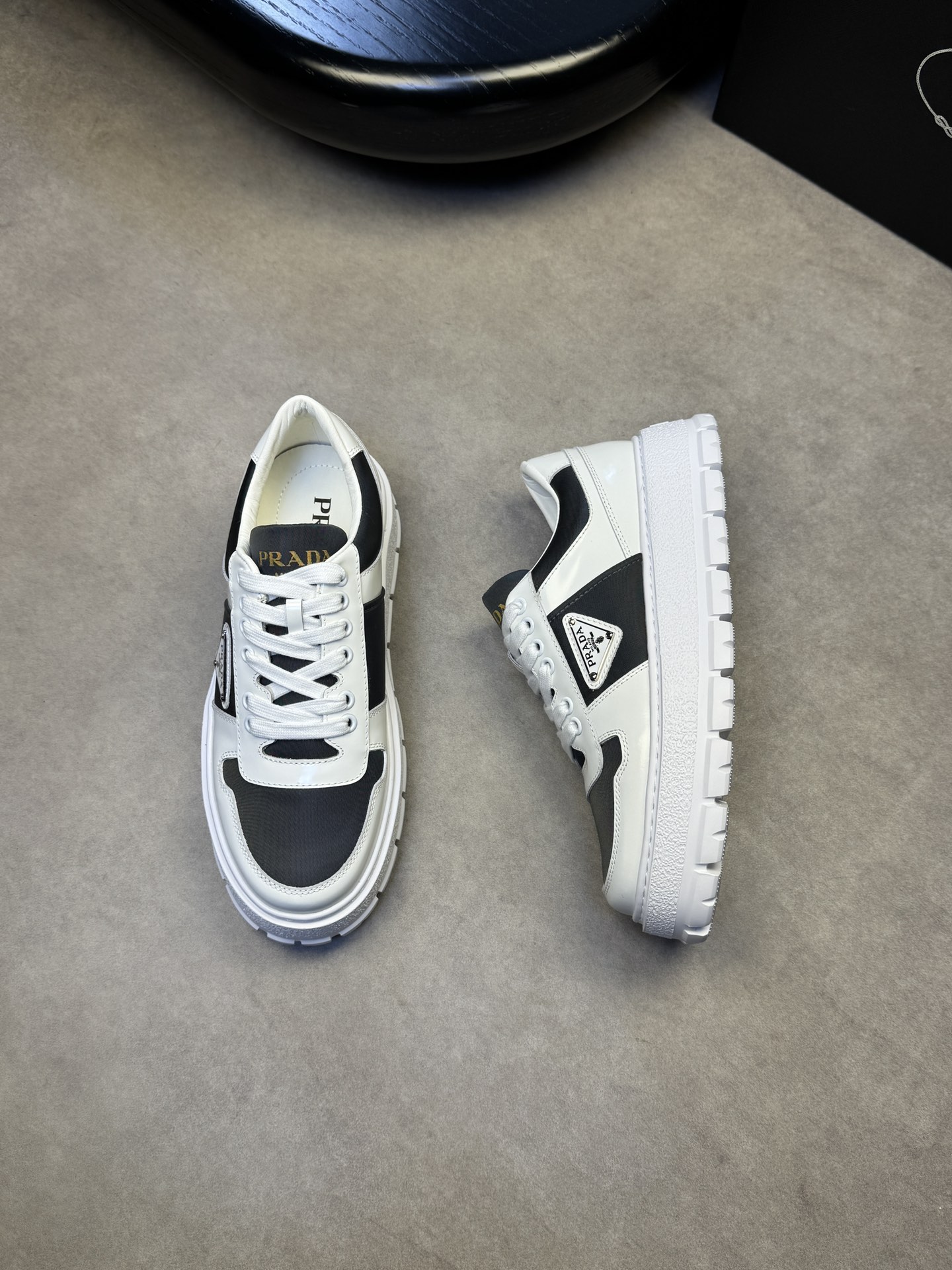 这款鞋子是AAAAA 1:1 质量 (非常棒). 使用了和原版一模一样的材料. 商标部分也保持了和普拉达/Prada一样. 图片拍摄是实物鞋子拍摄, 您所收到的实物保证和我们图片一模一样.