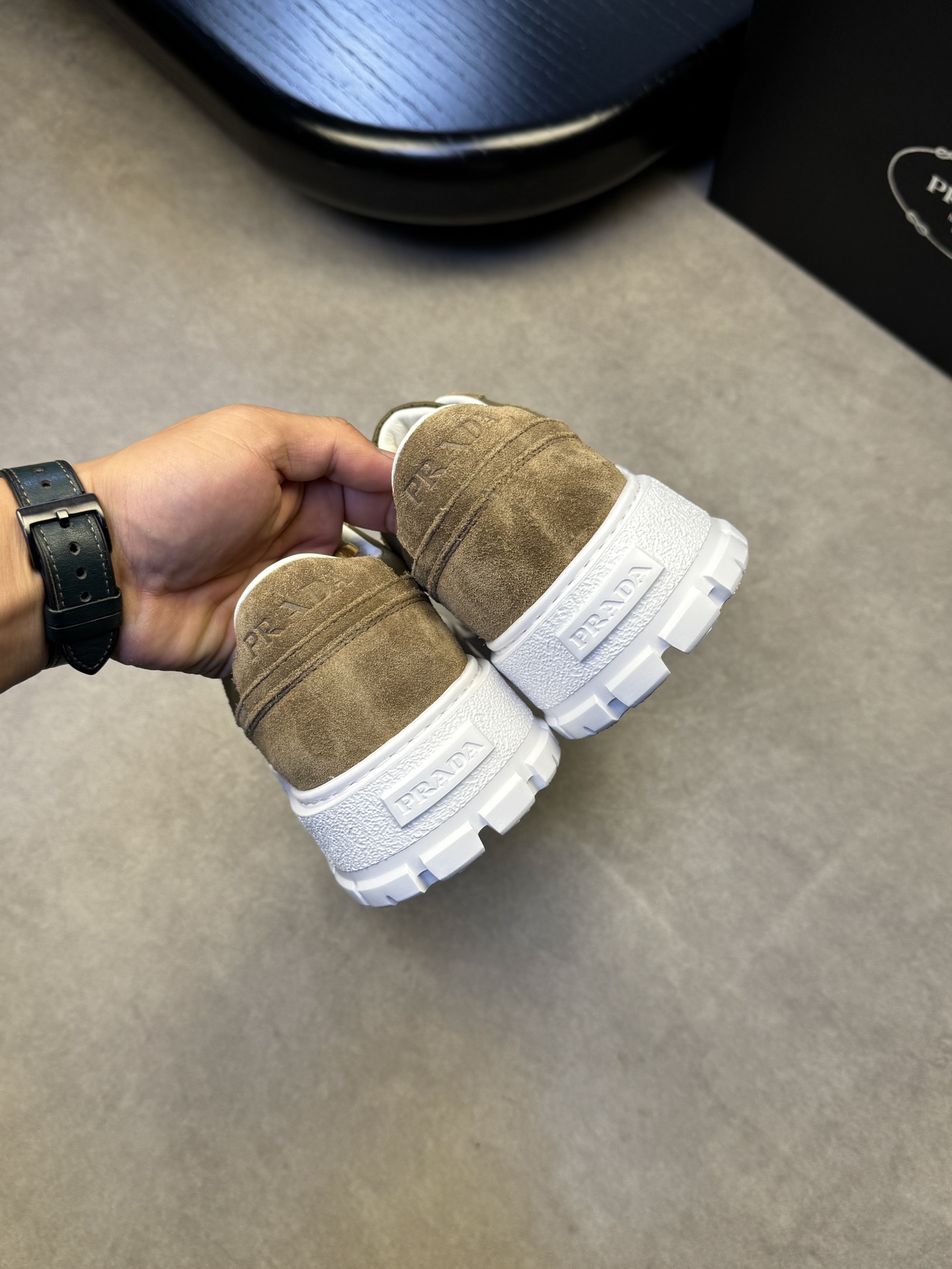 这款鞋子是AAAAA 1:1 质量 (非常棒). 使用了和原版一模一样的材料. 商标部分也保持了和普拉达/Prada一样. 图片拍摄是实物鞋子拍摄, 您所收到的实物保证和我们图片一模一样.