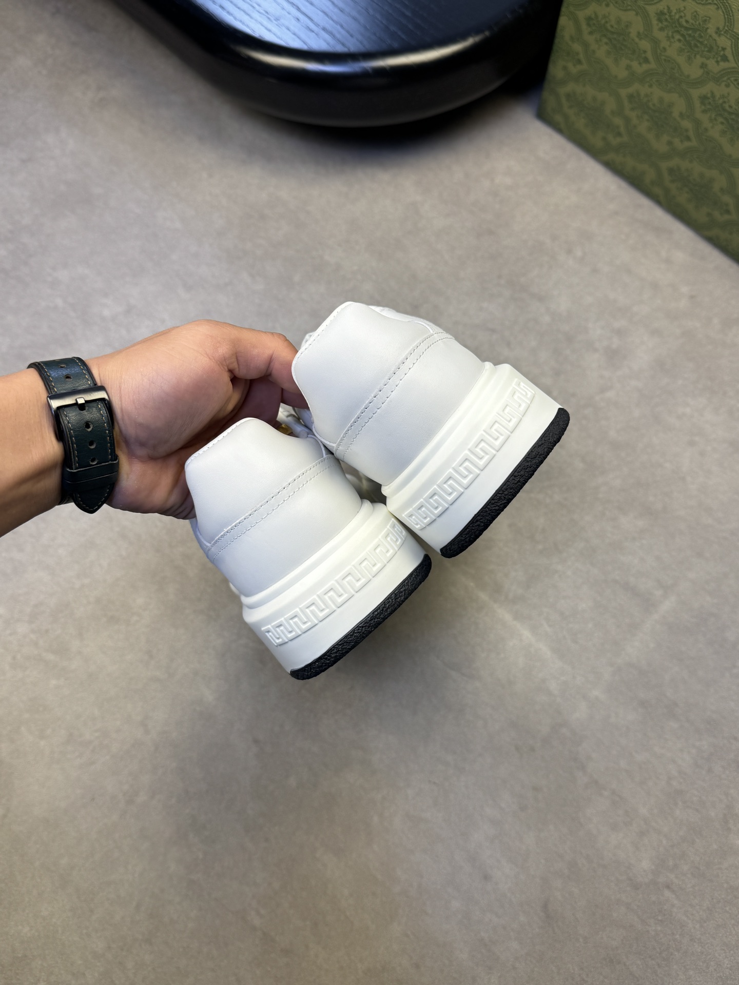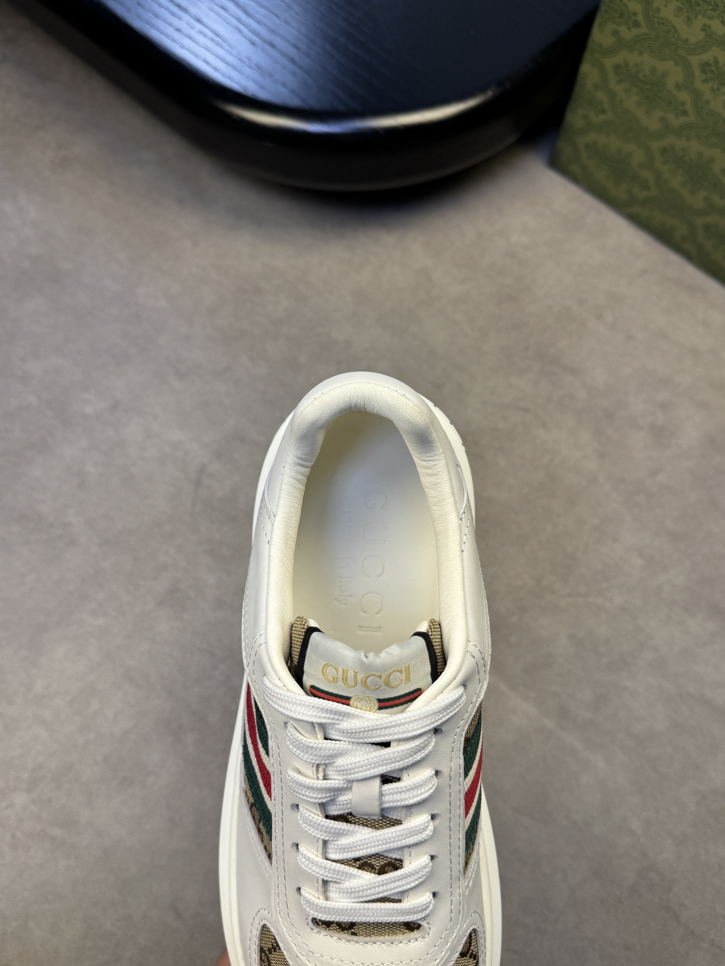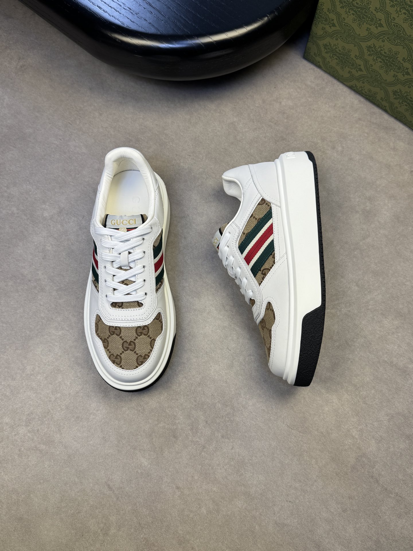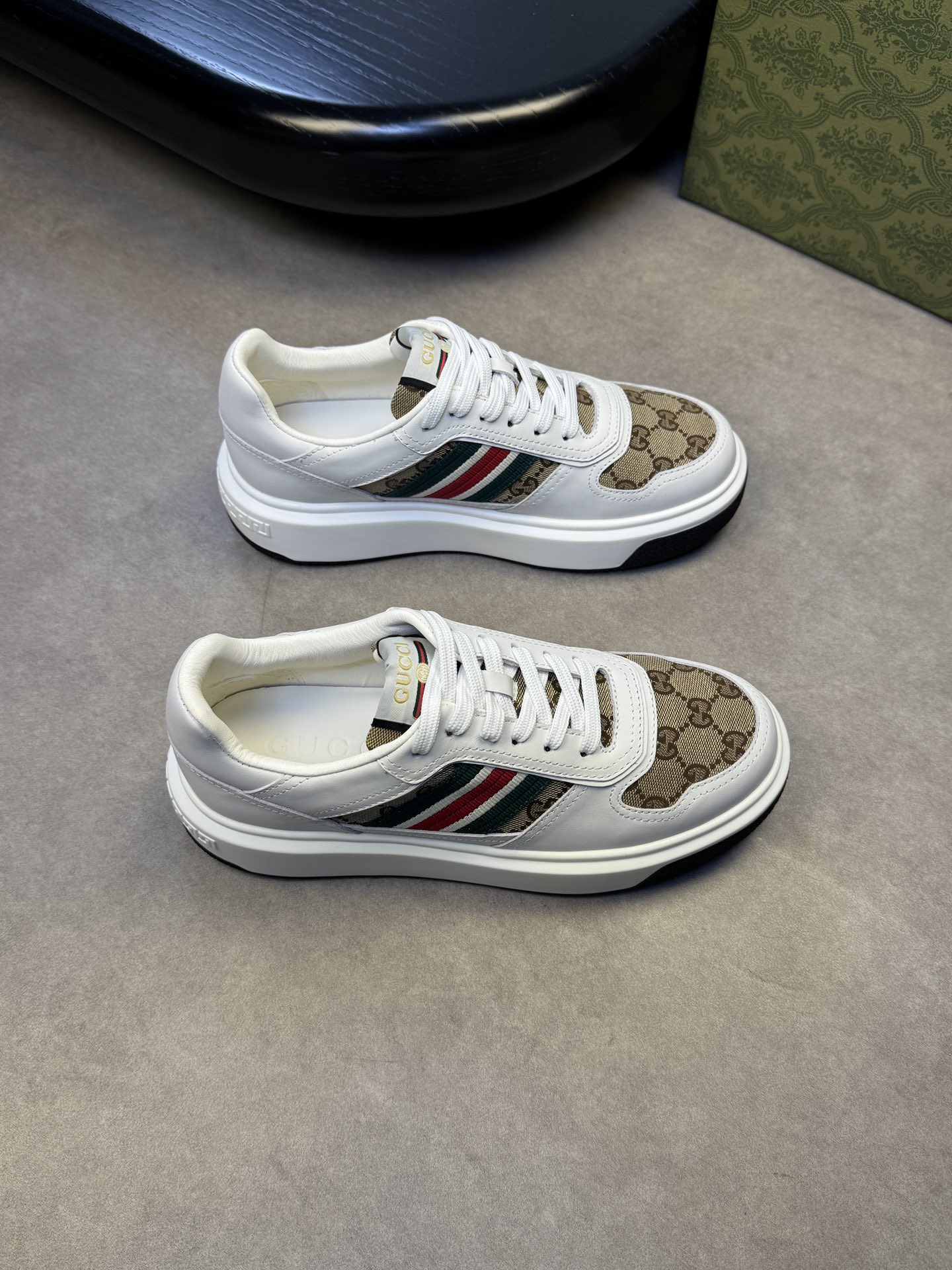 这款鞋子是AAAAA 1:1 质量 (非常棒). 使用了和原版一模一样的材料. 商标部分也保持了和古奇/Gucci一样. 图片拍摄是实物鞋子拍摄, 您所收到的实物保证和我们图片一模一样.