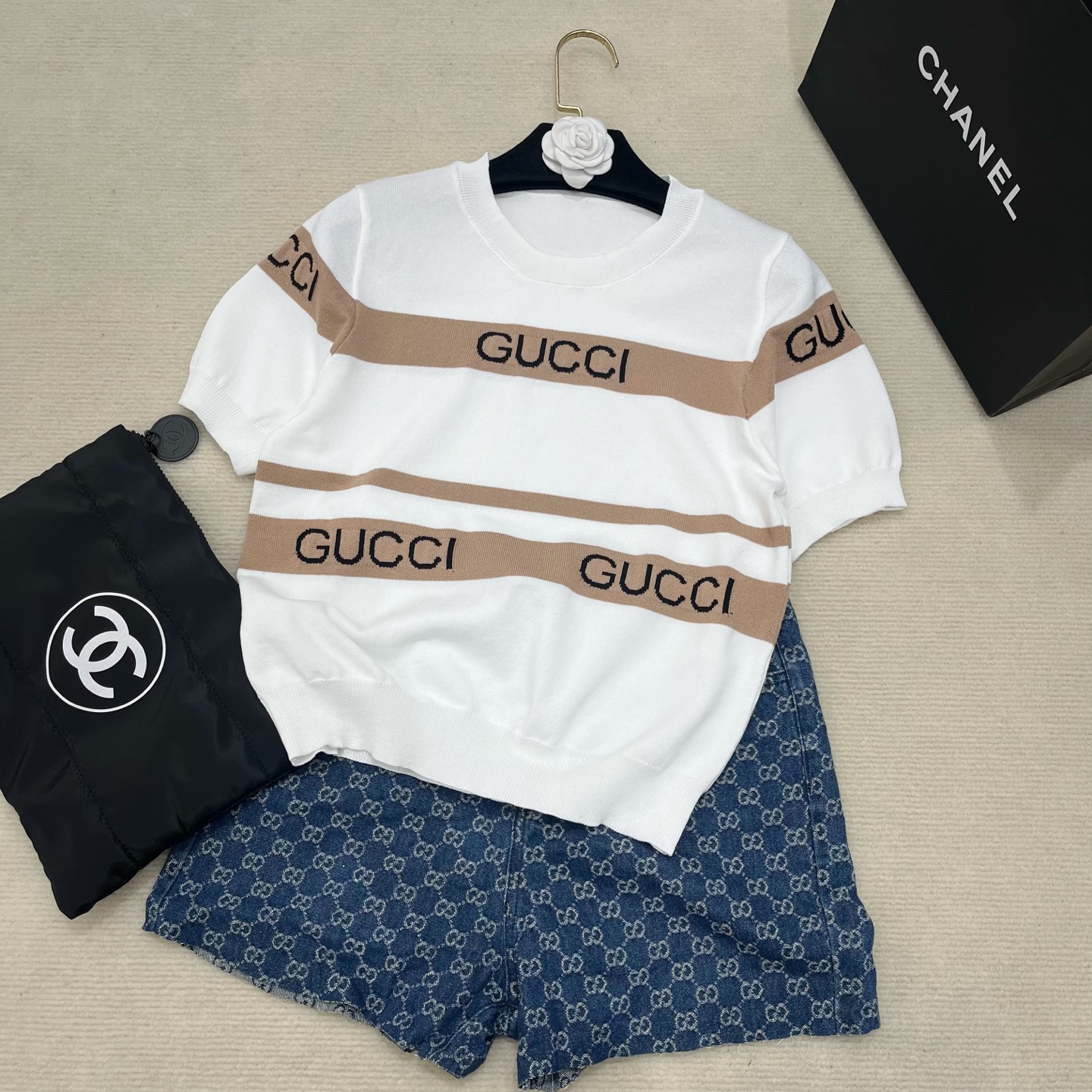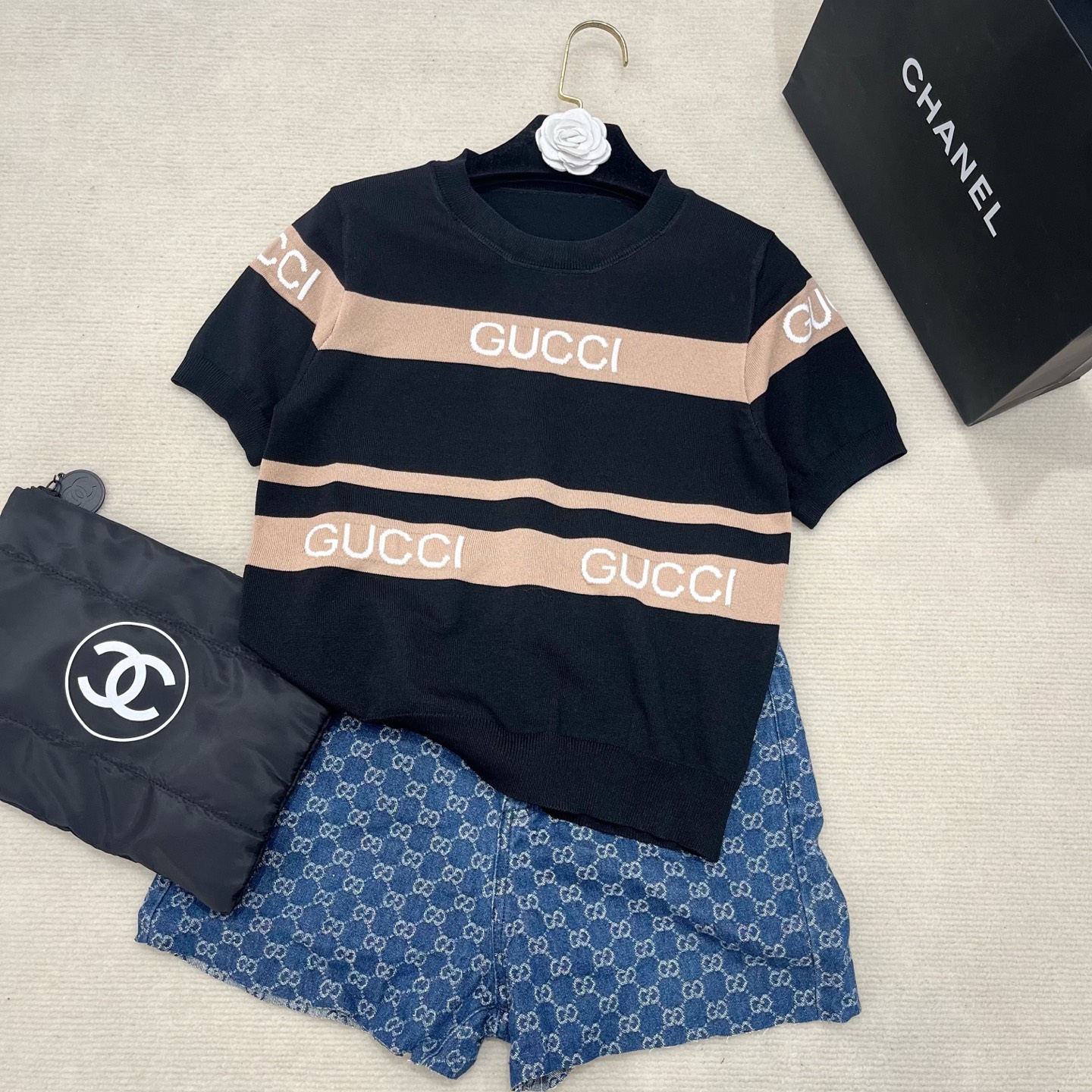 这款衣服是AAAAA 1:1 质量 (非常棒). 使用了和原版一模一样的材料. 商标部分也保持了和古奇/Gucci一样. 图片拍摄是实物衣服拍摄, 您所收到的实物保证和我们图片一模一样.