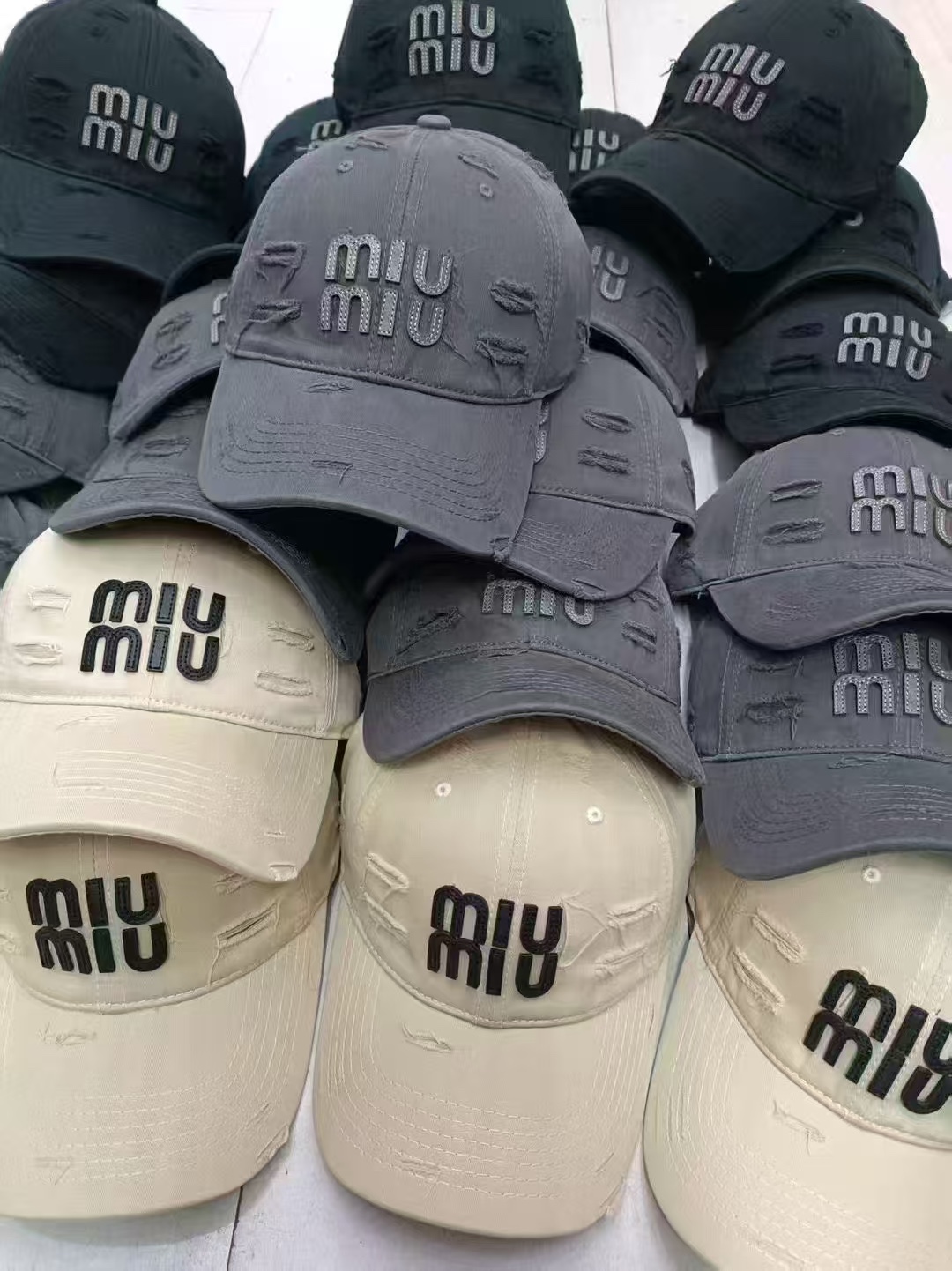 这款帽子是AAAAA 1:1 质量 (非常棒). 使用了和原版一模一样的材料. 商标部分也保持了和缪缪/Miu Miu一样. 图片拍摄是实物帽子拍摄, 您所收到的实物保证和我们图片一模一样.