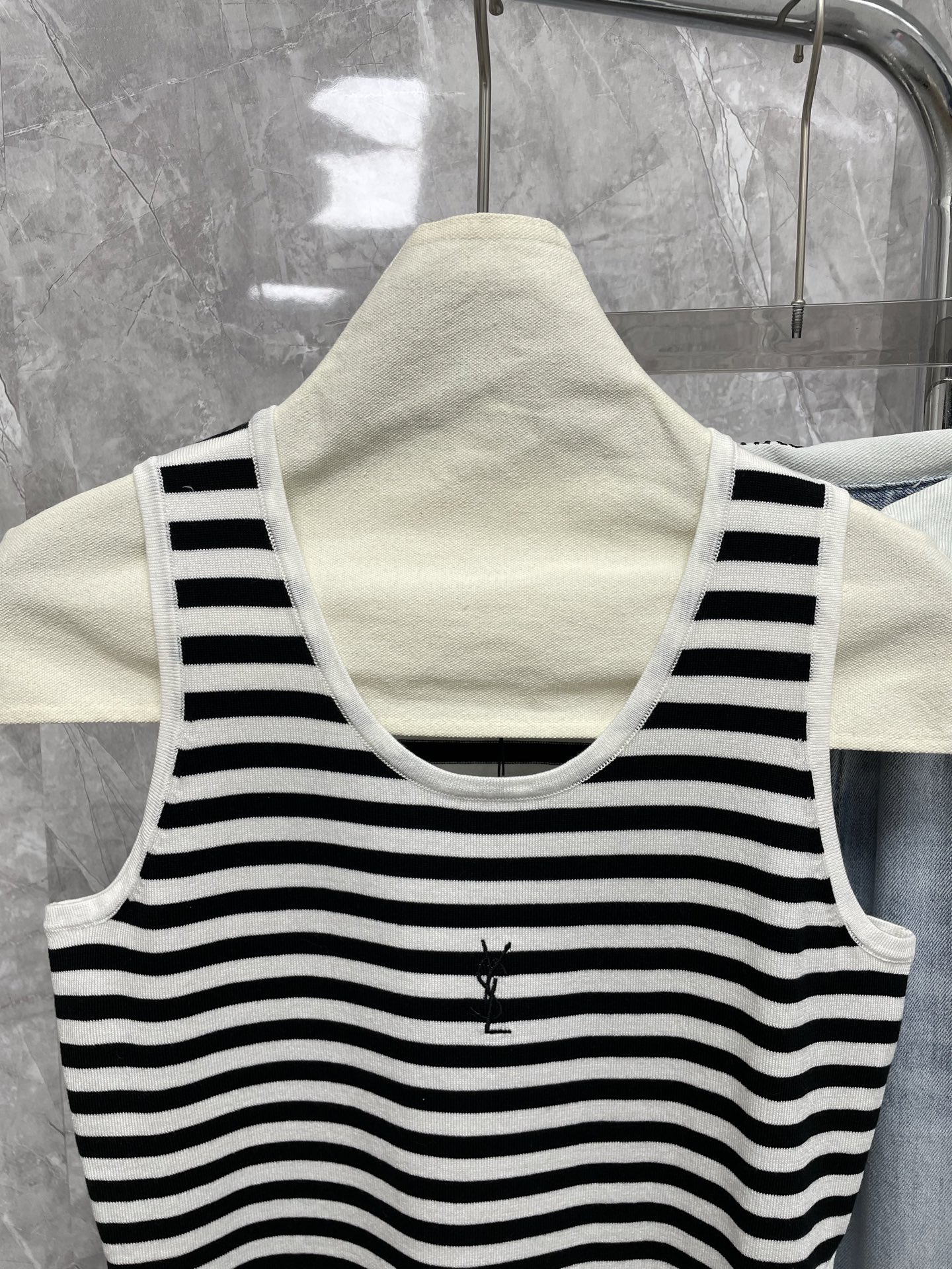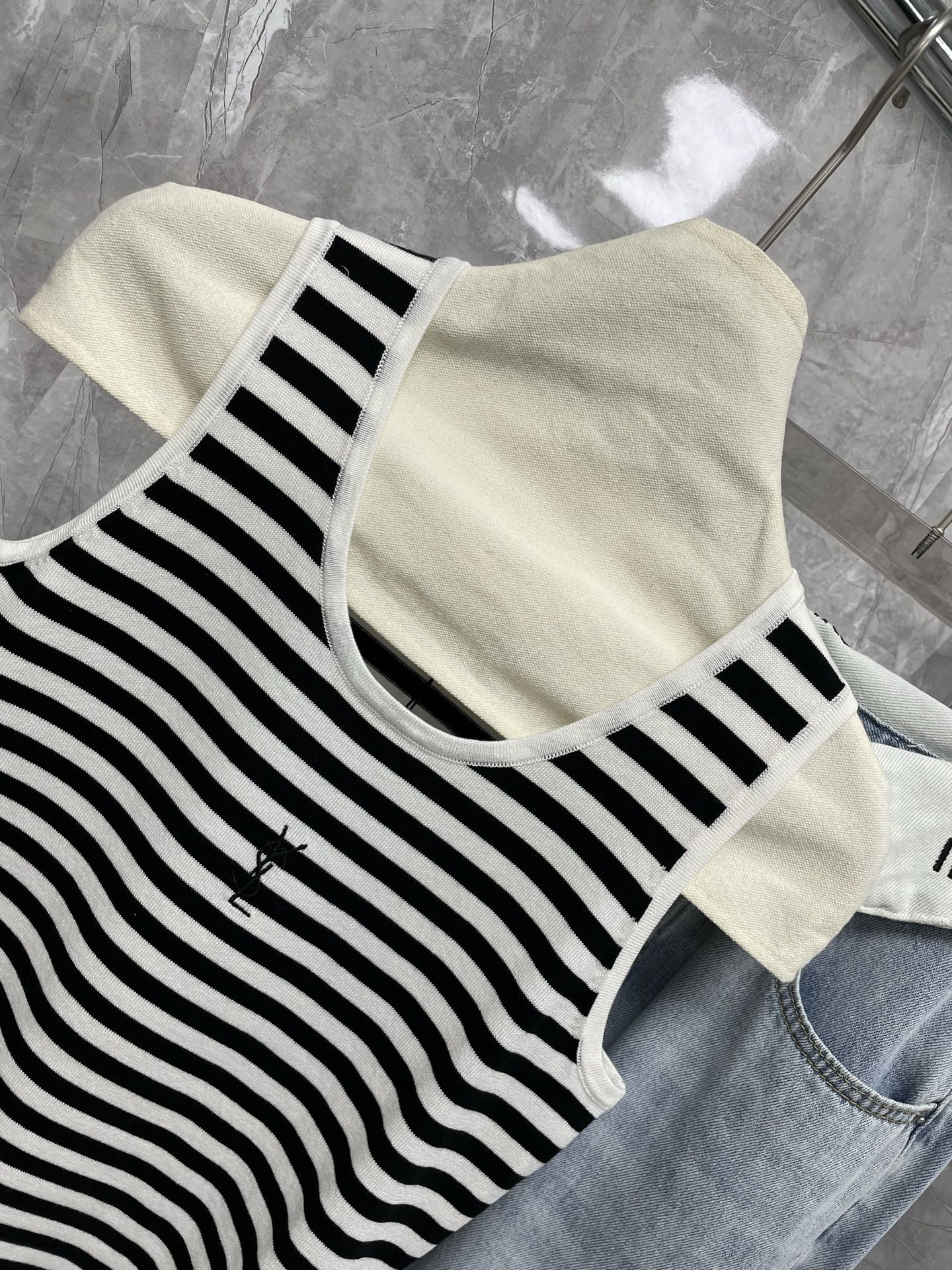 这款衣服是AAAAA 1:1 质量 (非常棒). 使用了和原版一模一样的材料. 商标部分也保持了和圣罗兰/Saint Laurent一样. 图片拍摄是实物衣服拍摄, 您所收到的实物保证和我们图片一模一样.