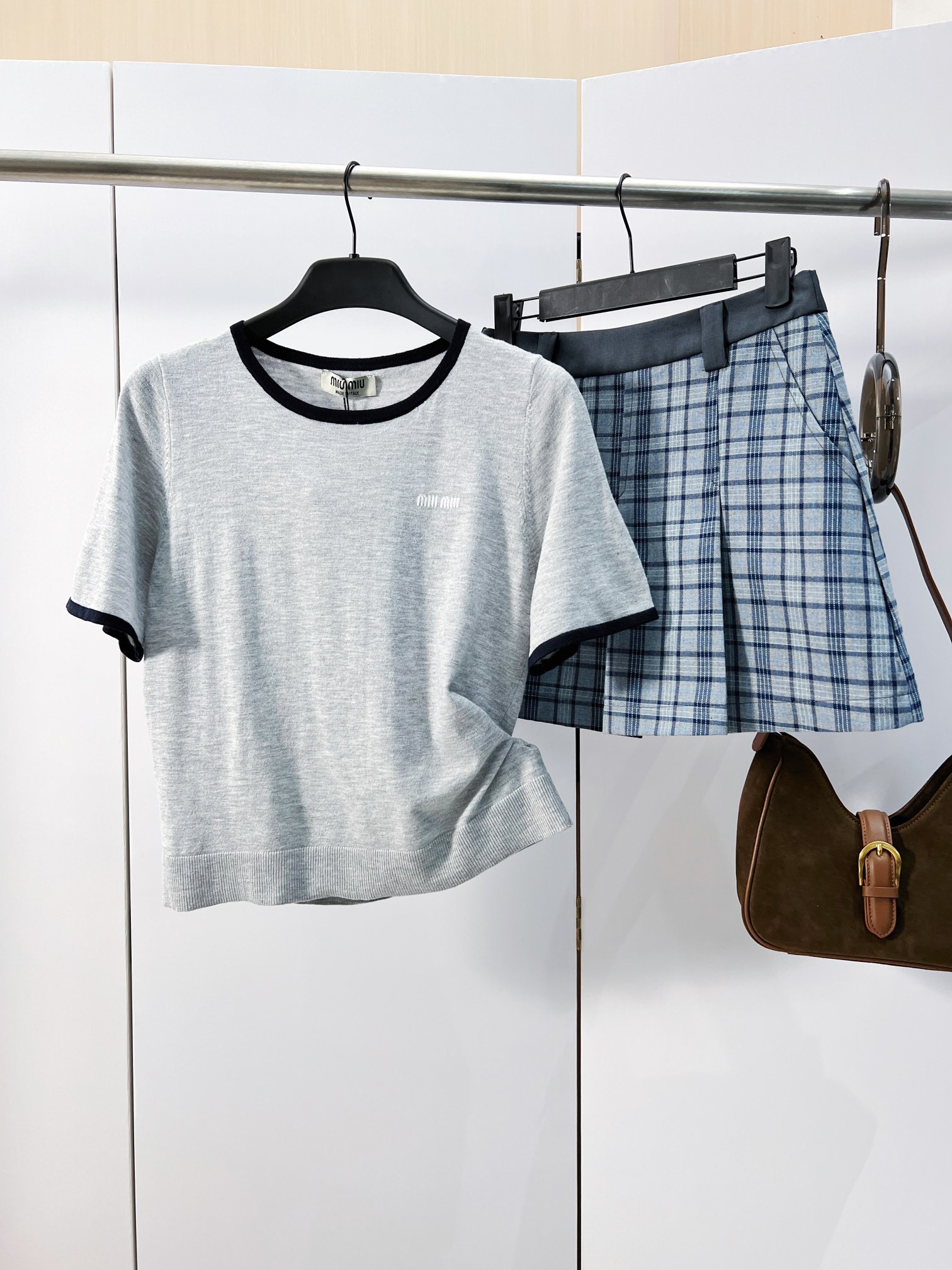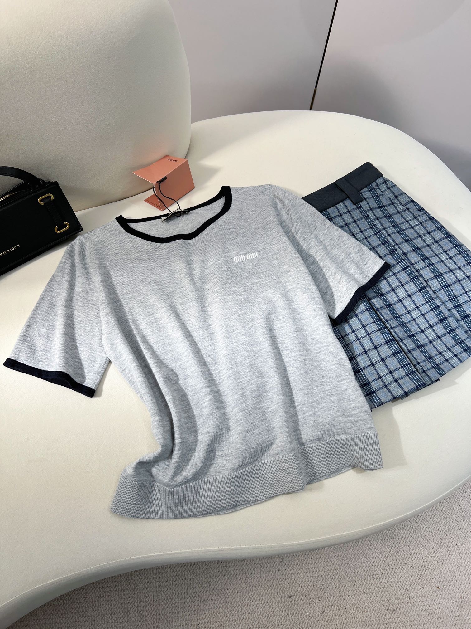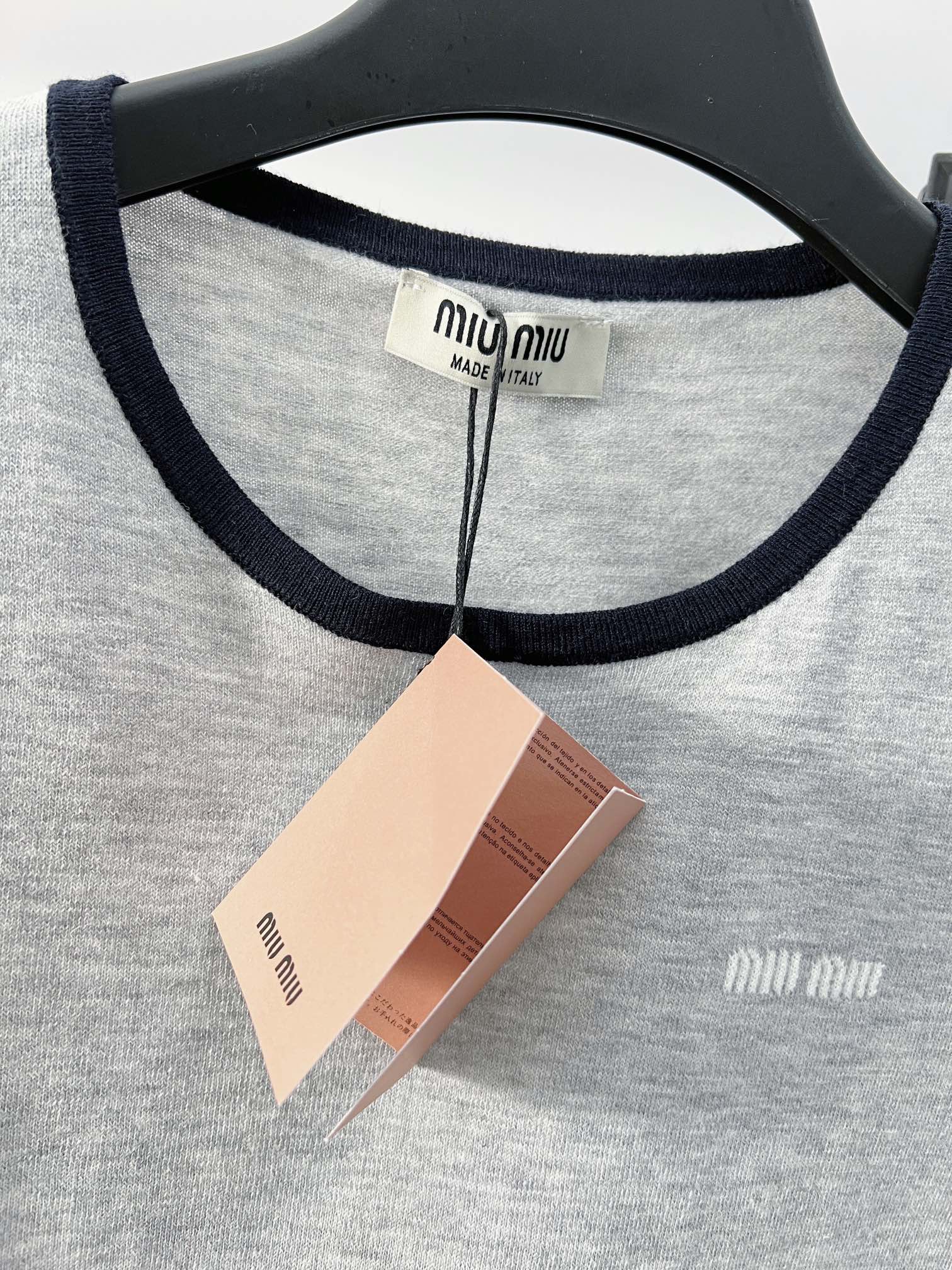 这款衣服是AAAAA 1:1 质量 (非常棒). 使用了和原版一模一样的材料. 商标部分也保持了和缪缪/Miu Miu一样. 图片拍摄是实物衣服拍摄, 您所收到的实物保证和我们图片一模一样.