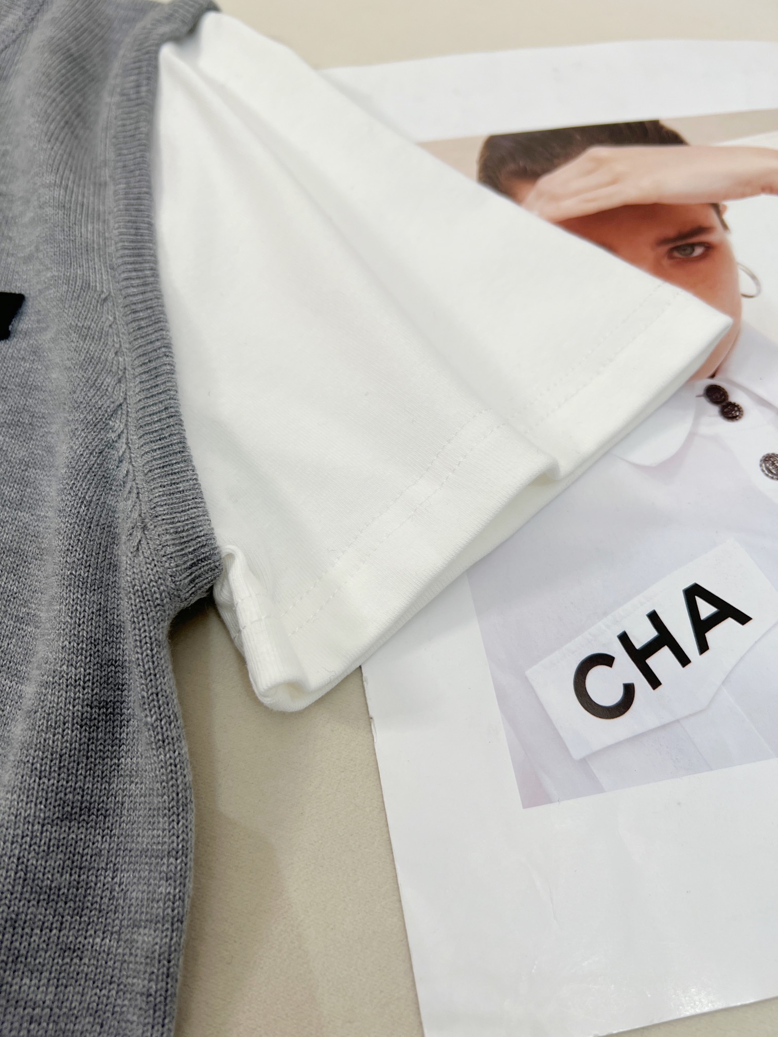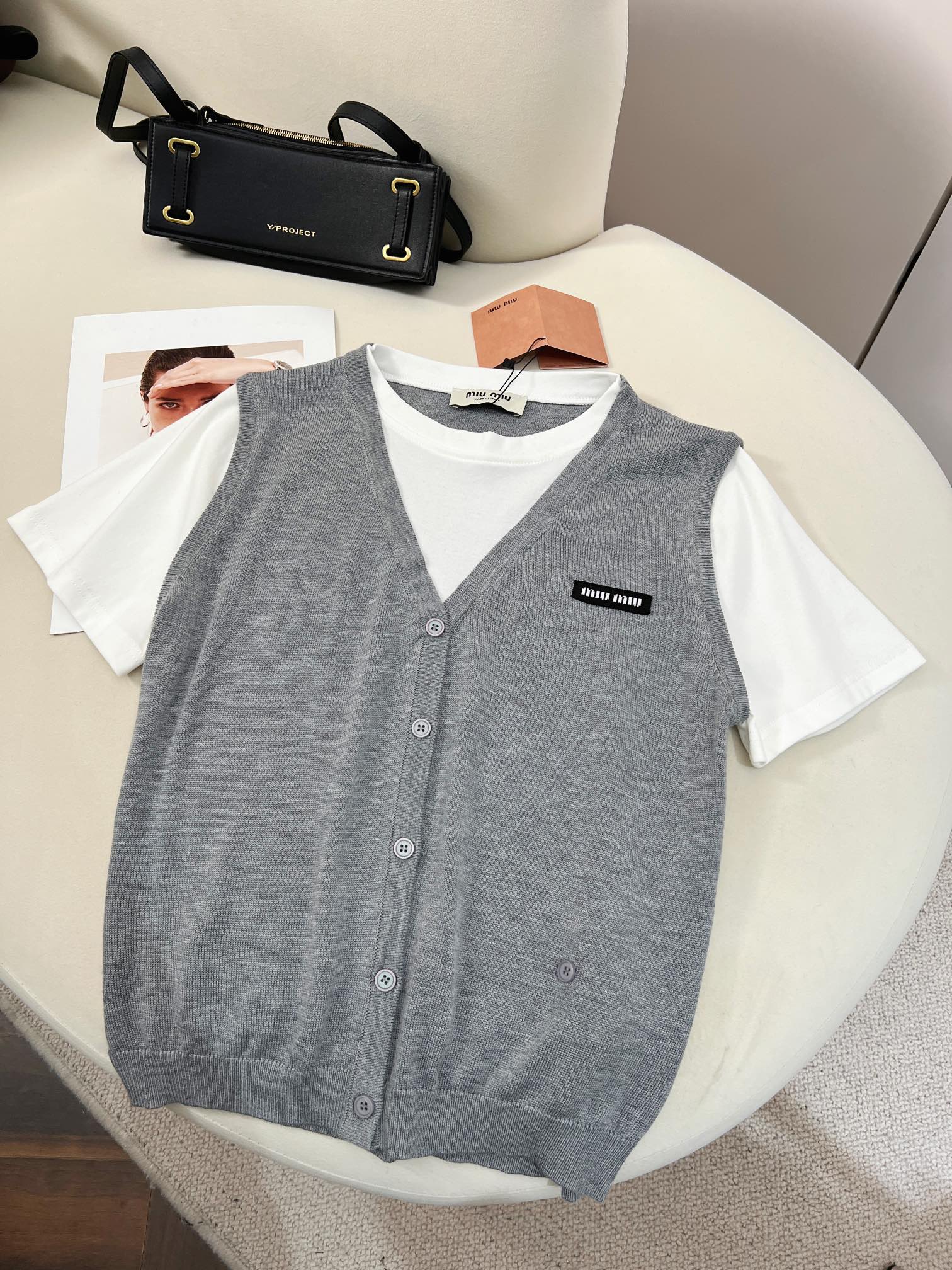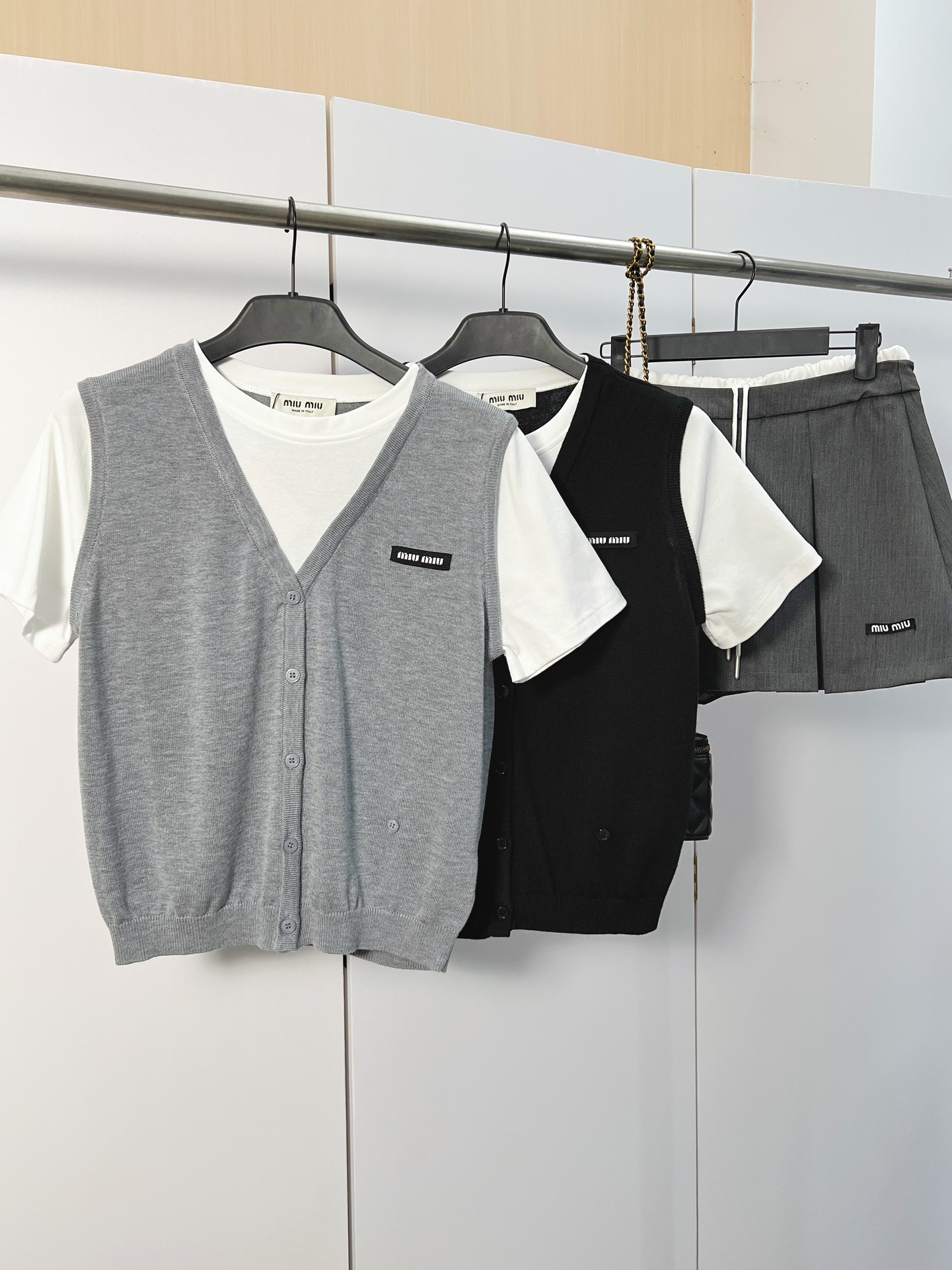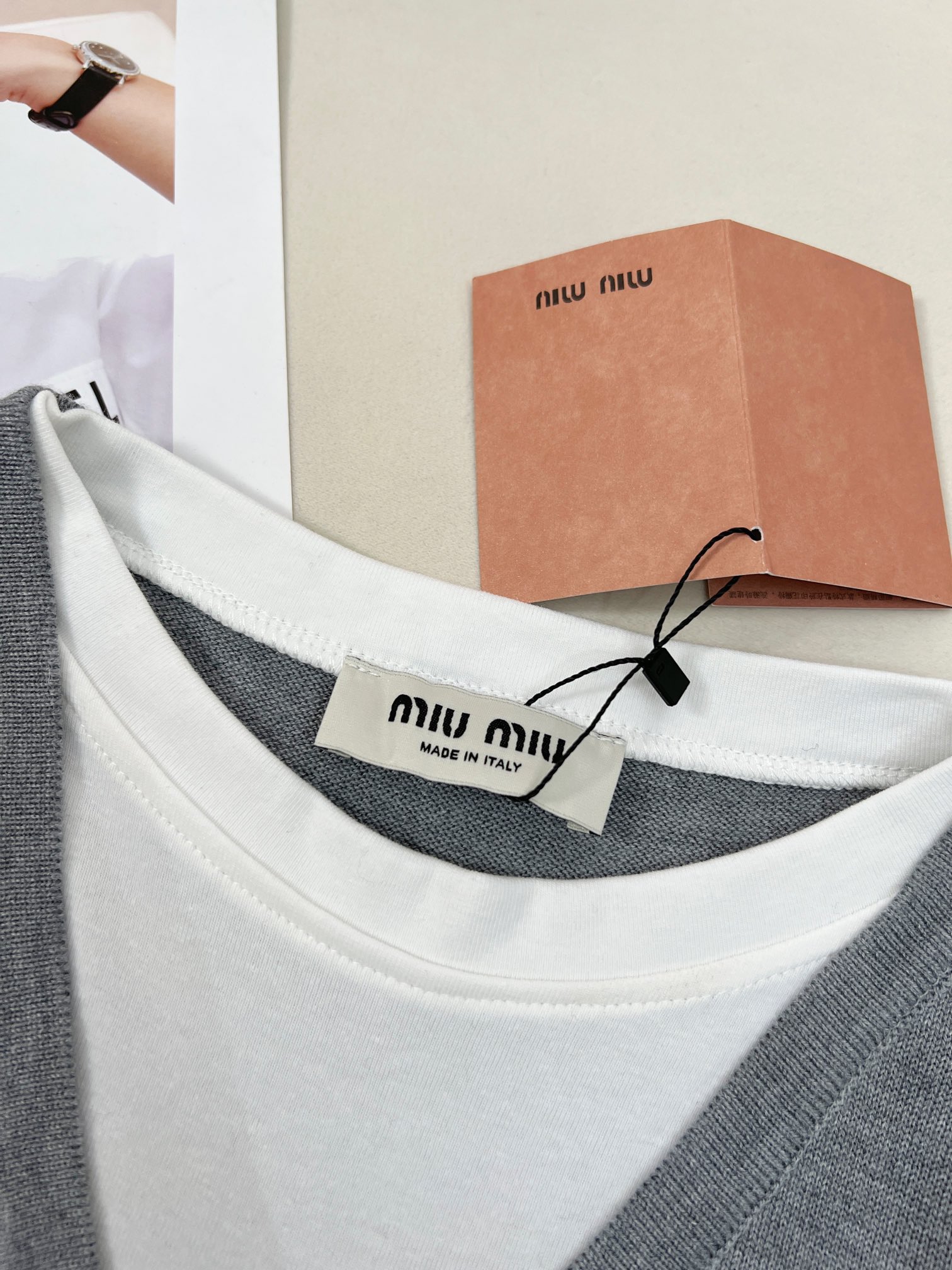 这款衣服是AAAAA 1:1 质量 (非常棒). 使用了和原版一模一样的材料. 商标部分也保持了和缪缪/Miu Miu一样. 图片拍摄是实物衣服拍摄, 您所收到的实物保证和我们图片一模一样.