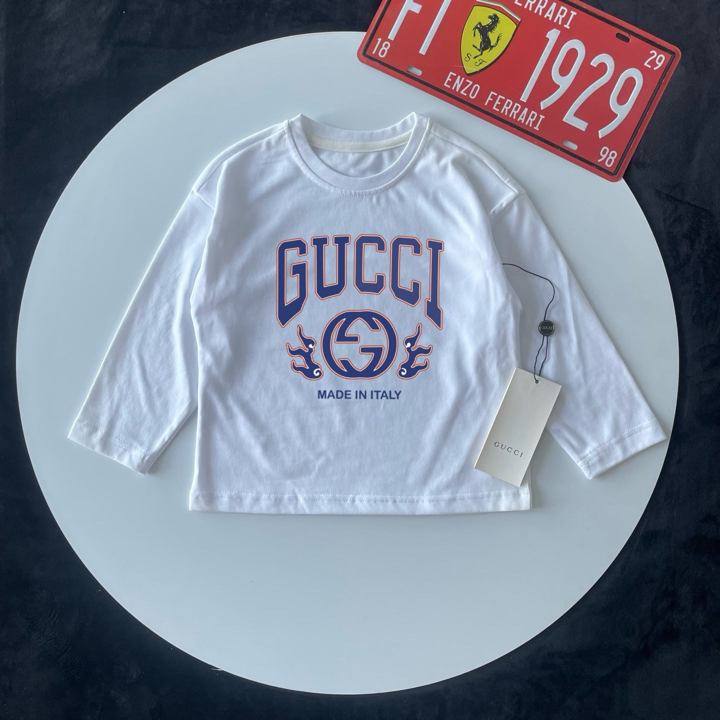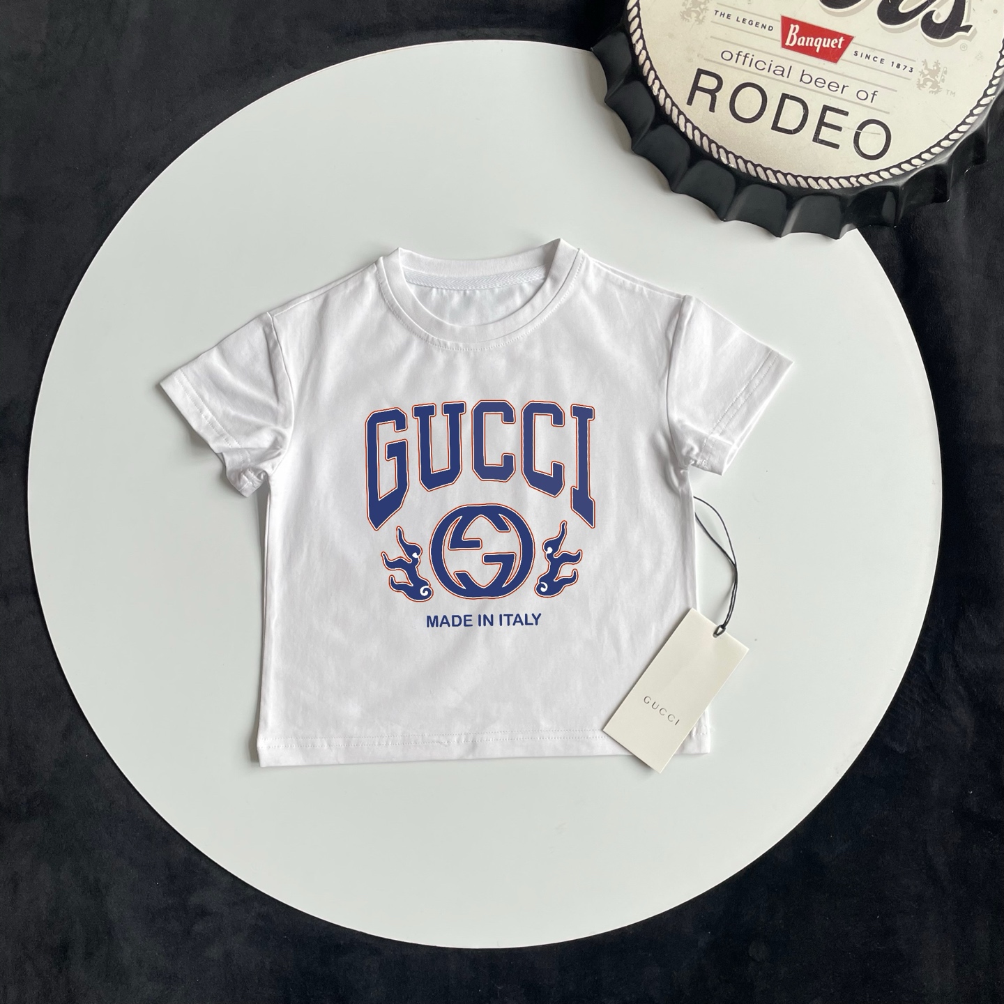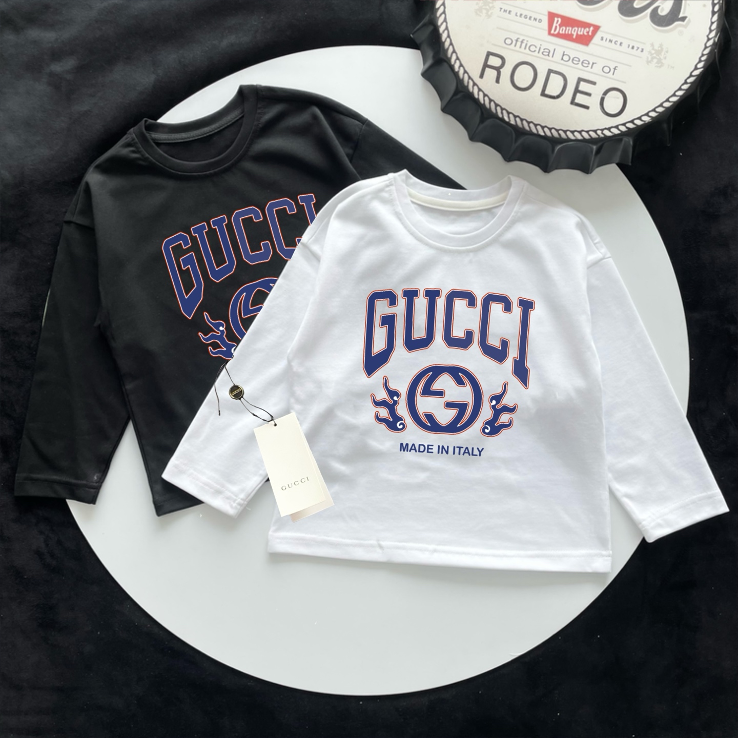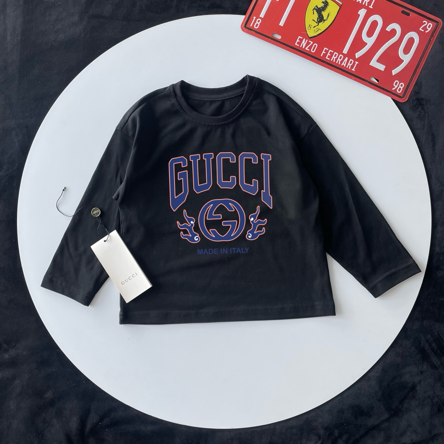 这款children's clothes是AAAAA 1:1 质量 (非常棒). 使用了和原版一模一样的材料. 商标部分也保持了和古奇/Gucci一样. 图片拍摄是实物children's clothes拍摄, 您所收到的实物保证和我们图片一模一样.
