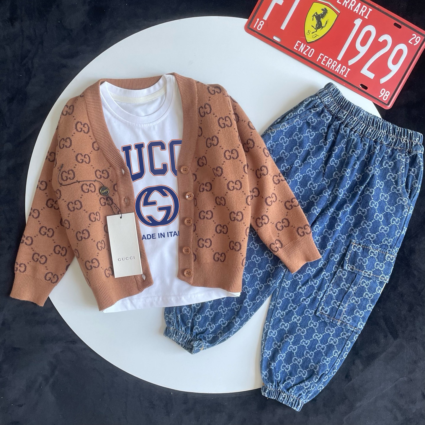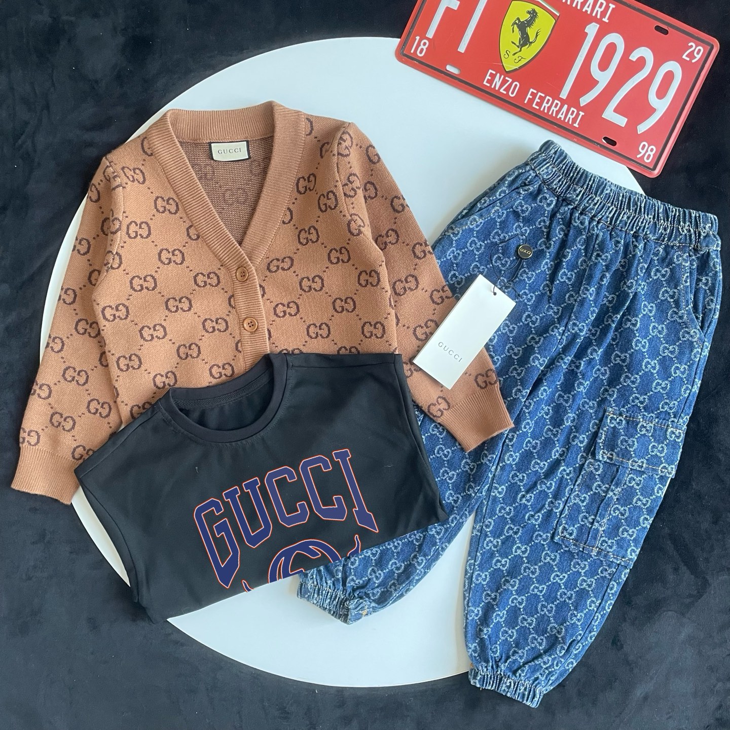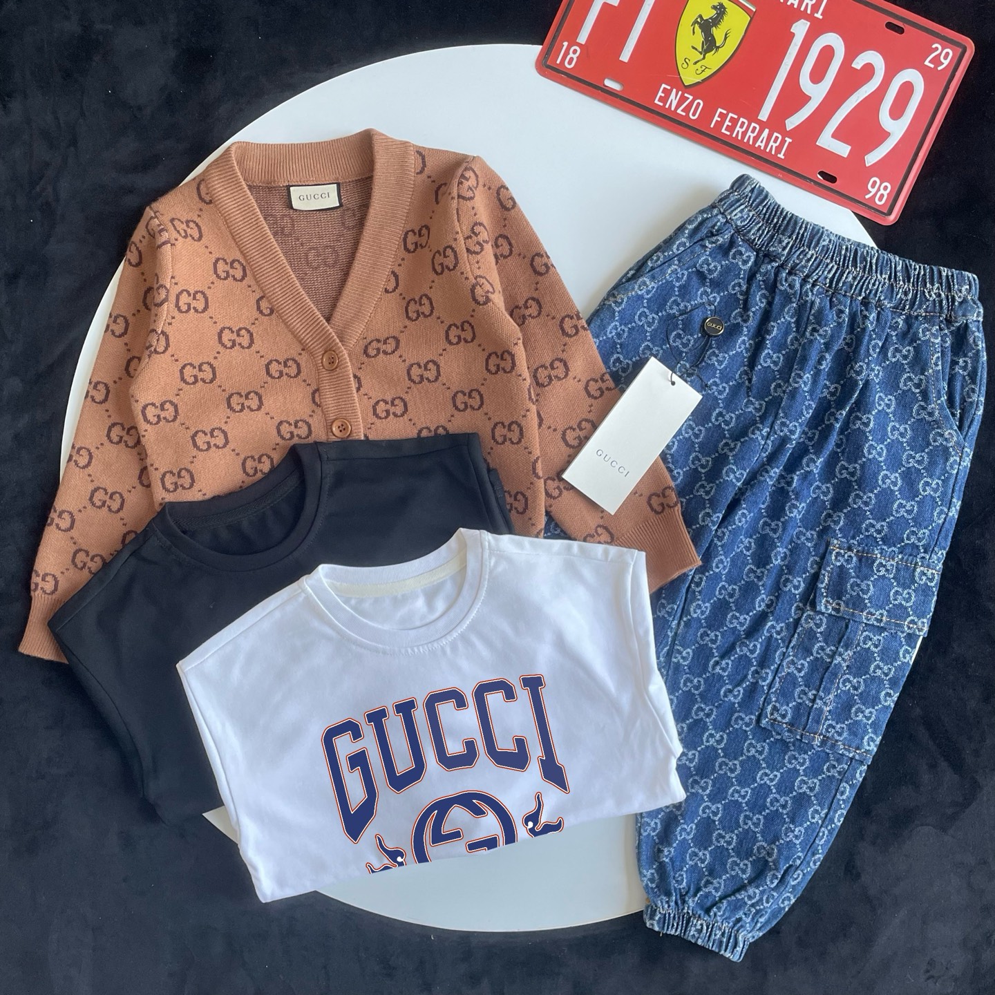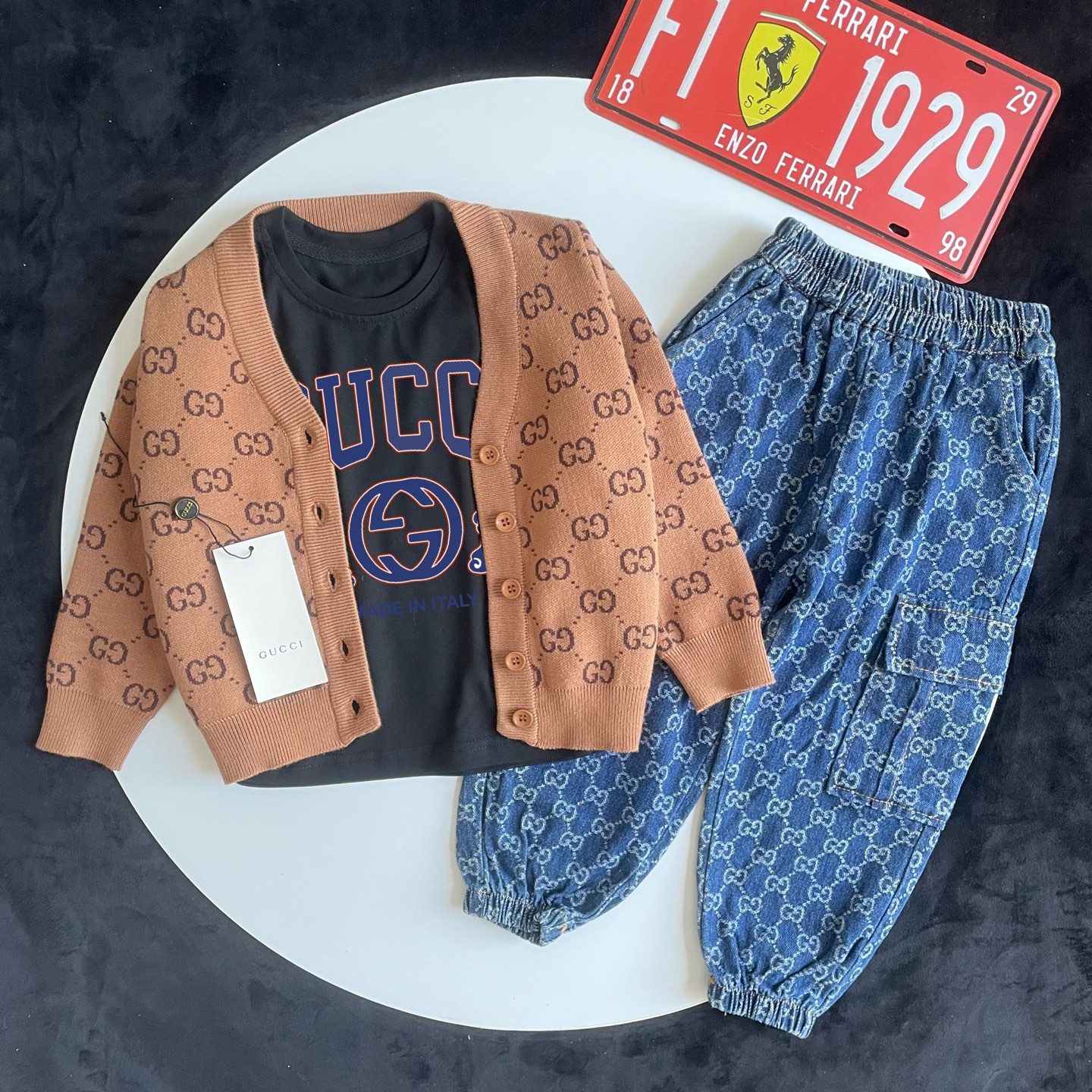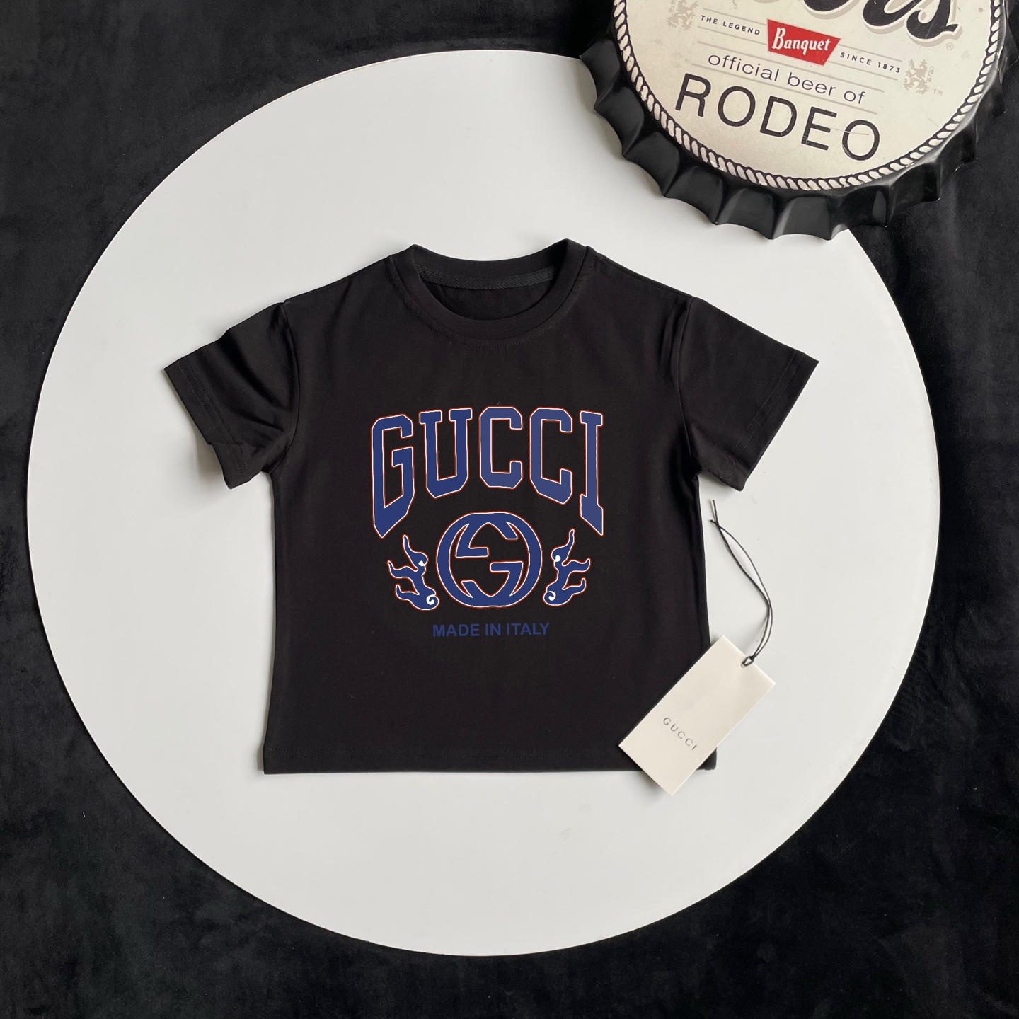 这款children's clothes是AAAAA 1:1 质量 (非常棒). 使用了和原版一模一样的材料. 商标部分也保持了和古奇/Gucci一样. 图片拍摄是实物children's clothes拍摄, 您所收到的实物保证和我们图片一模一样.