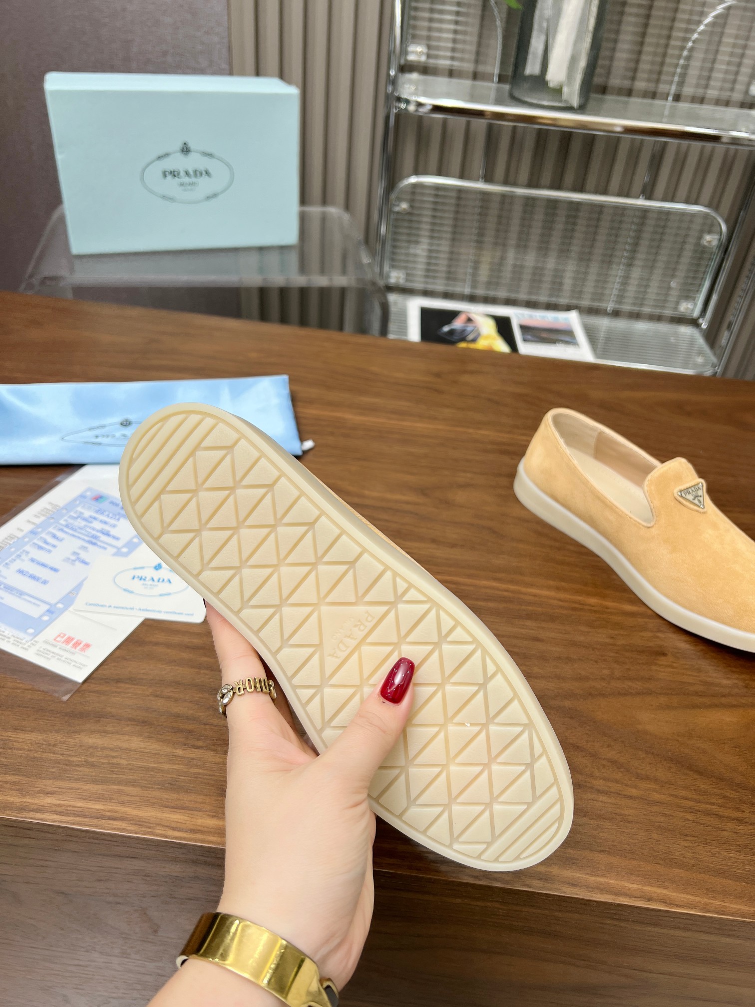 这款鞋子是AAAAA 1:1 质量 (非常棒). 使用了和原版一模一样的材料. 商标部分也保持了和普拉达/Prada一样. 图片拍摄是实物鞋子拍摄, 您所收到的实物保证和我们图片一模一样.