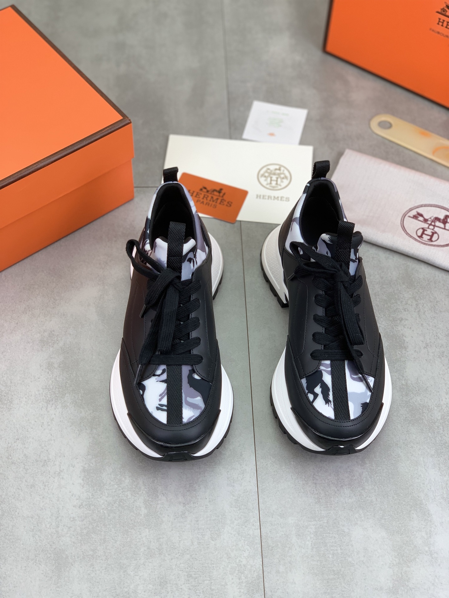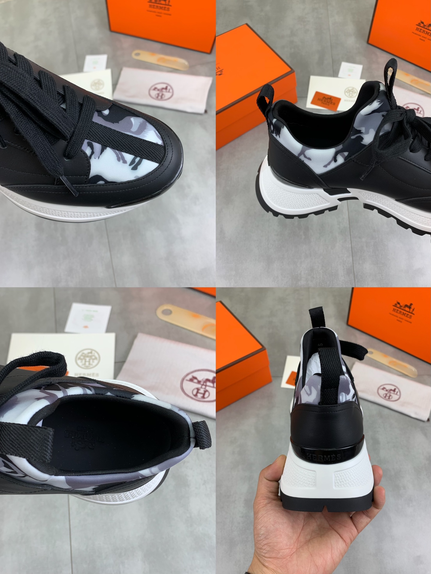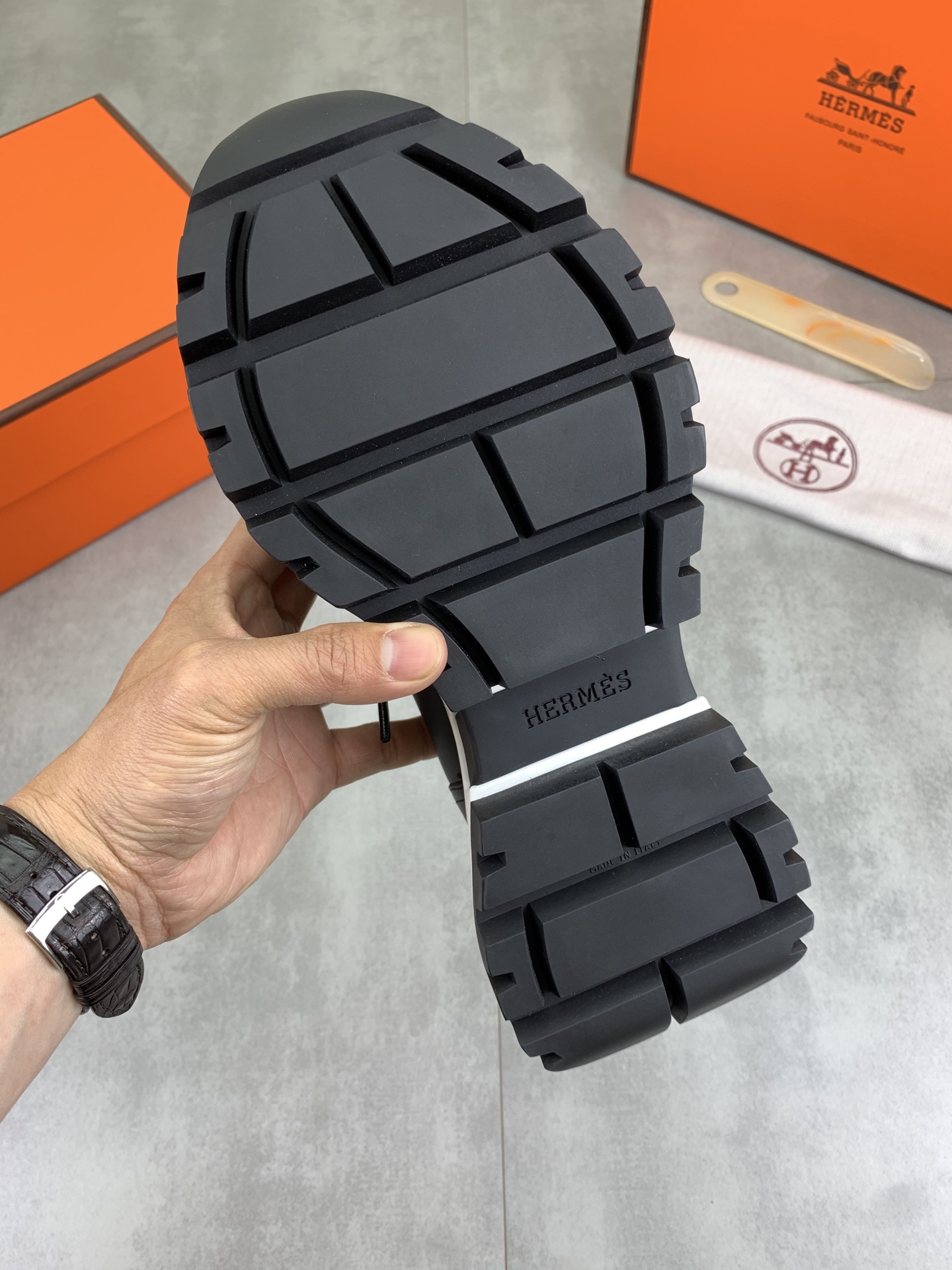 这款鞋子是AAAAA 1:1 质量 (非常棒). 使用了和原版一模一样的材料. 商标部分也保持了和爱马仕/Hermes一样. 图片拍摄是实物鞋子拍摄, 您所收到的实物保证和我们图片一模一样.