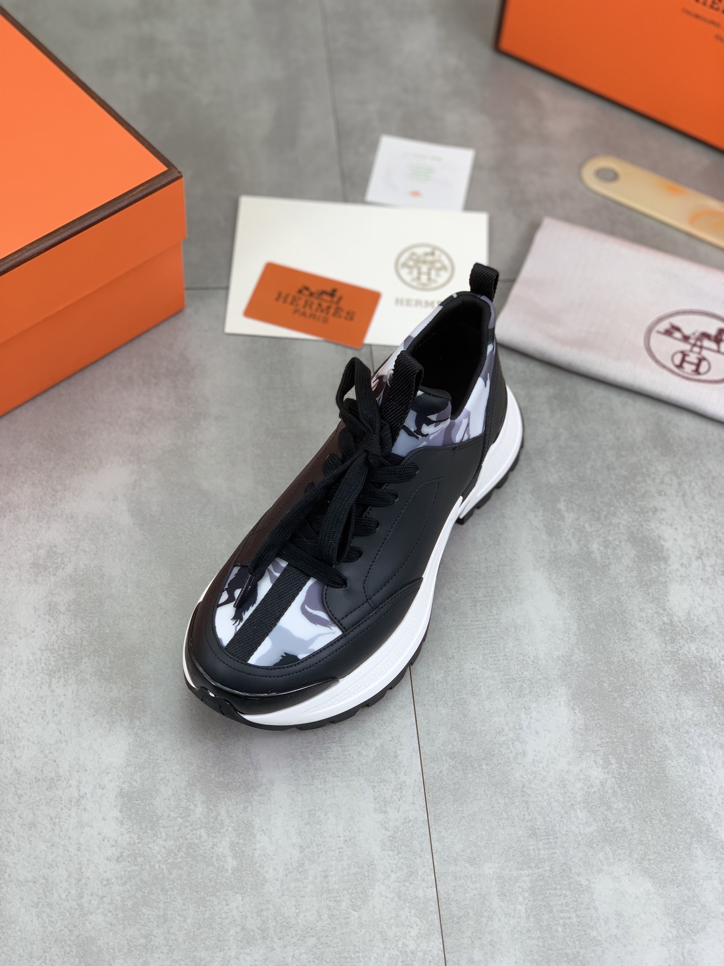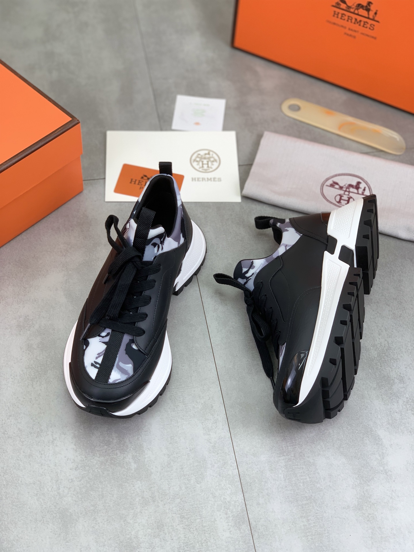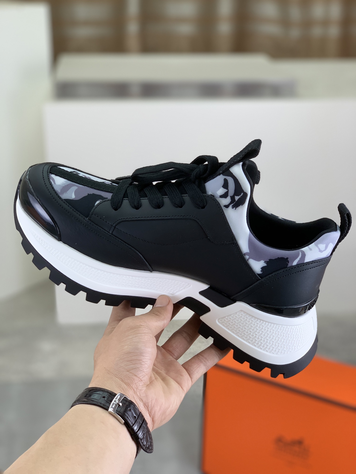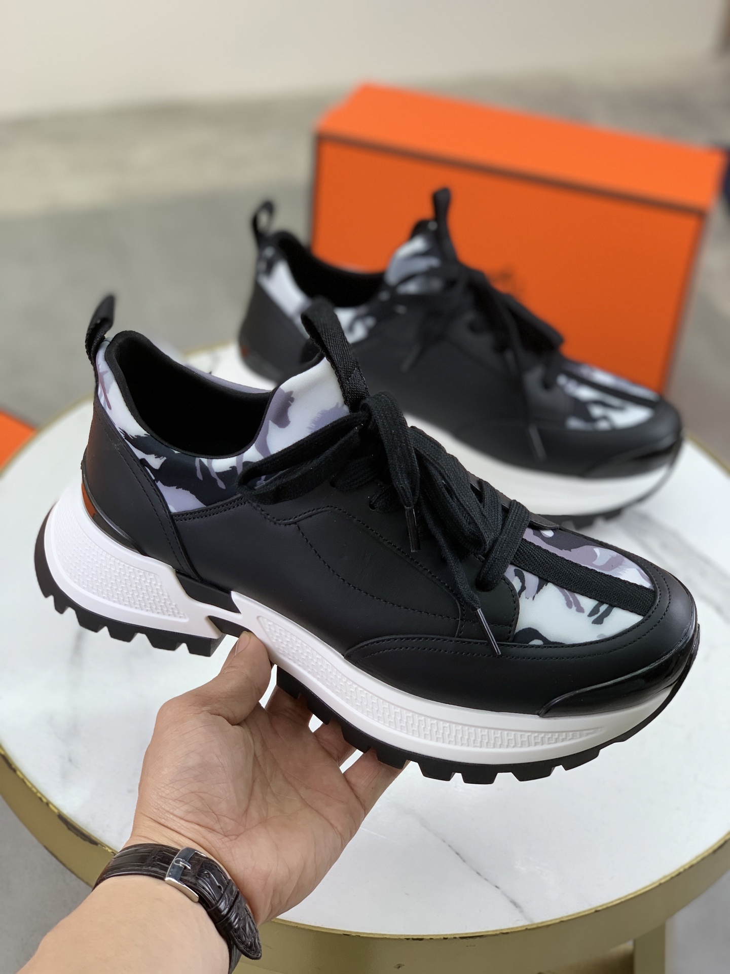 这款鞋子是AAAAA 1:1 质量 (非常棒). 使用了和原版一模一样的材料. 商标部分也保持了和爱马仕/Hermes一样. 图片拍摄是实物鞋子拍摄, 您所收到的实物保证和我们图片一模一样.