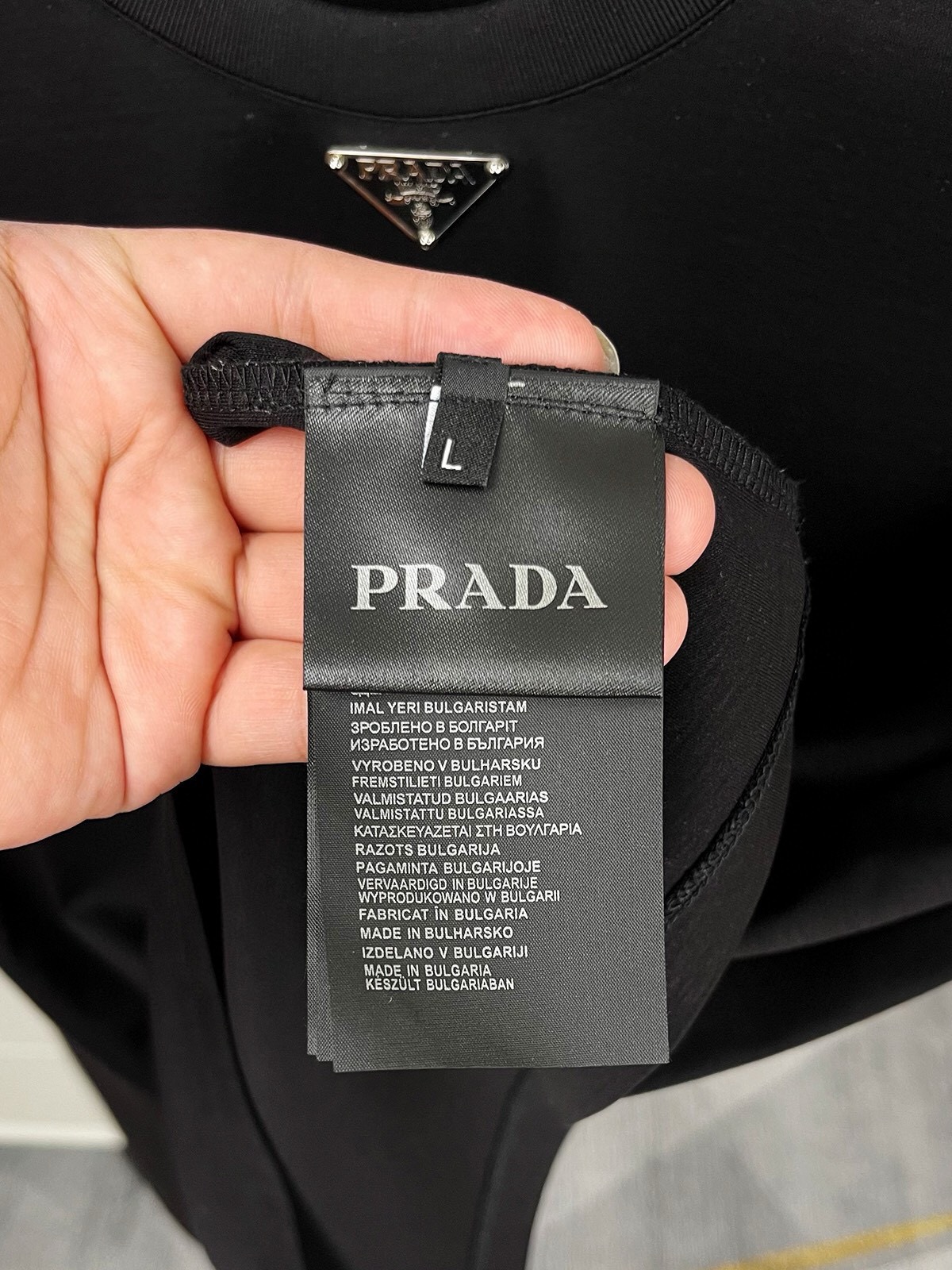 这款衣服是AAAAA 1:1 质量 (非常棒). 使用了和原版一模一样的材料. 商标部分也保持了和普拉达/Prada一样. 图片拍摄是实物衣服拍摄, 您所收到的实物保证和我们图片一模一样.