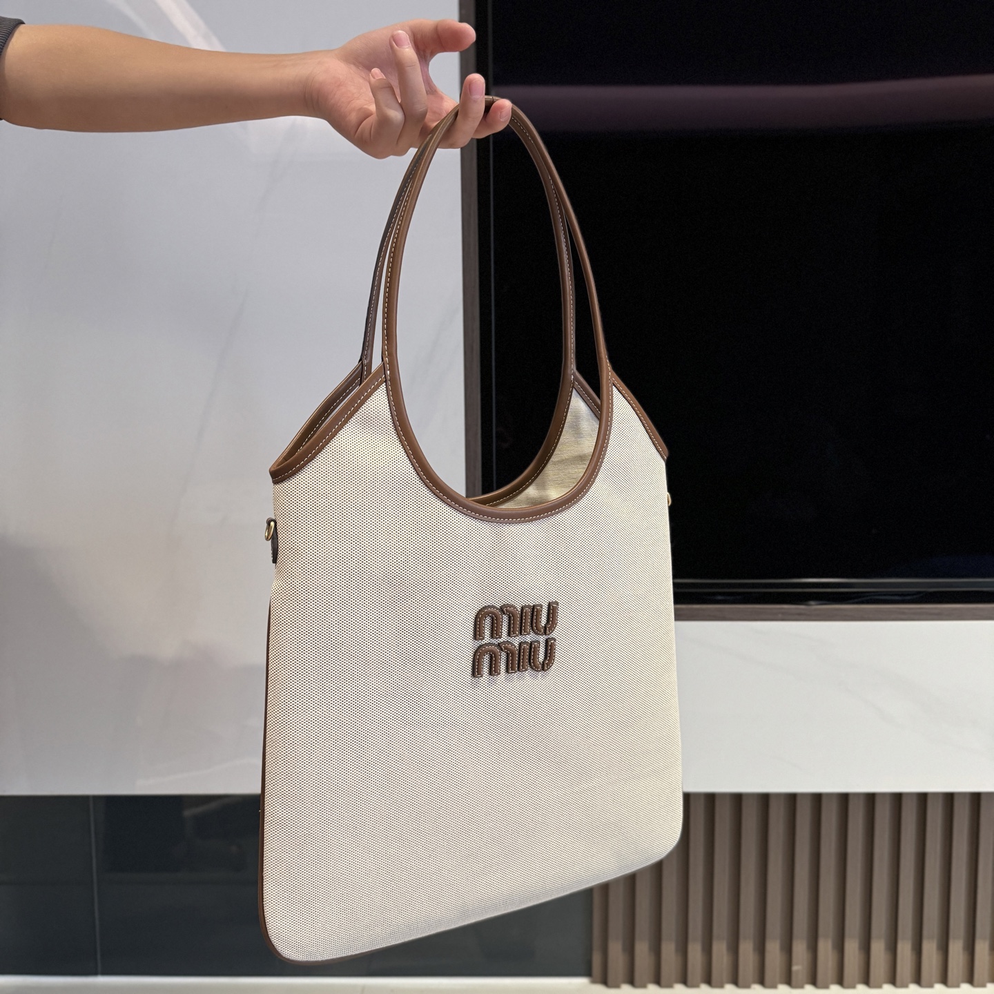 这款包包是AAAAA 1:1 质量 (非常棒). 使用了和原版一模一样的材料. 商标部分也保持了和缪缪/Miu Miu一样. 图片拍摄是实物包包拍摄, 您所收到的实物保证和我们图片一模一样.
