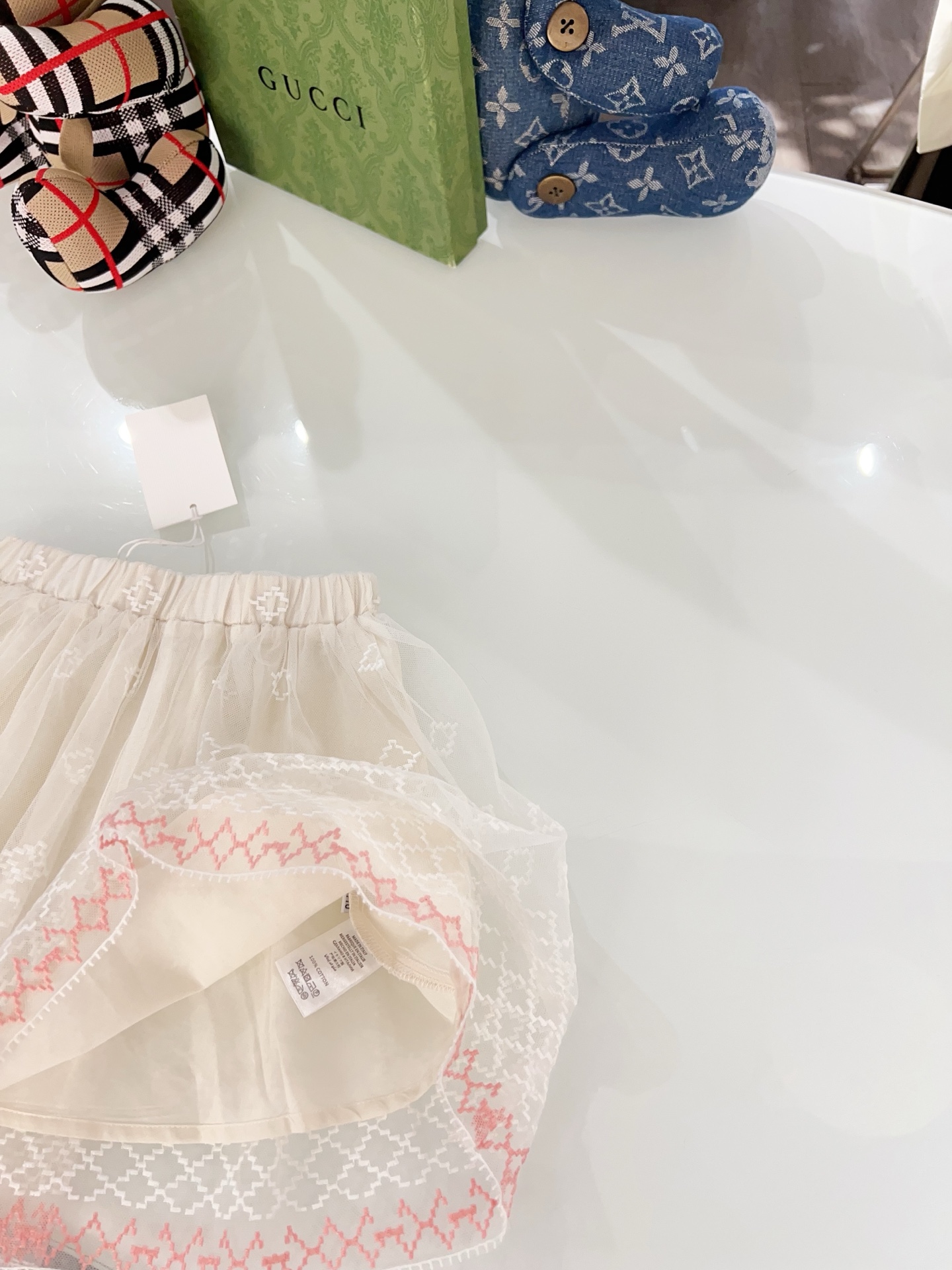 这款children's clothes是AAAAA 1:1 质量 (非常棒). 使用了和原版一模一样的材料. 商标部分也保持了和古奇/Gucci一样. 图片拍摄是实物children's clothes拍摄, 您所收到的实物保证和我们图片一模一样.