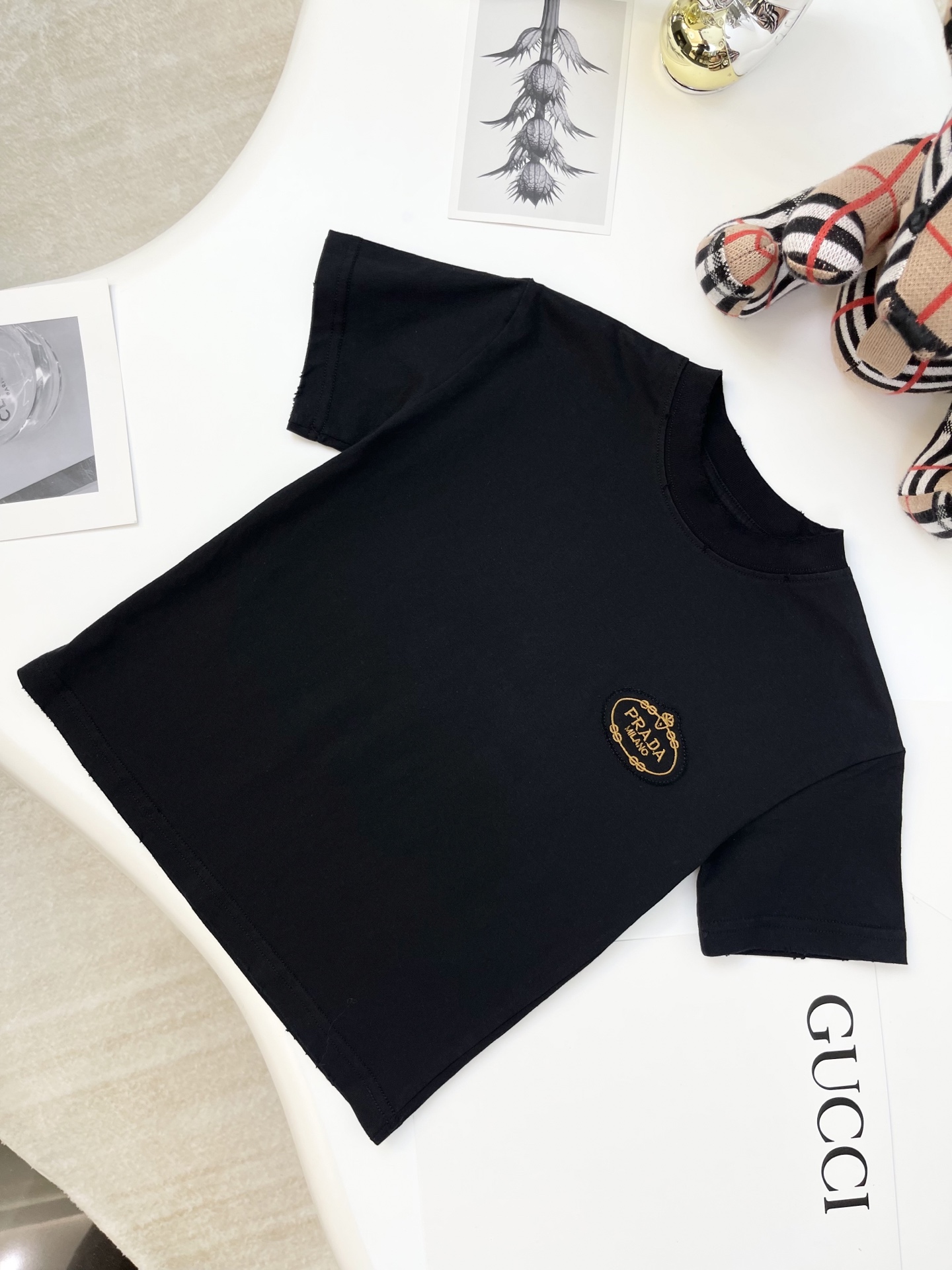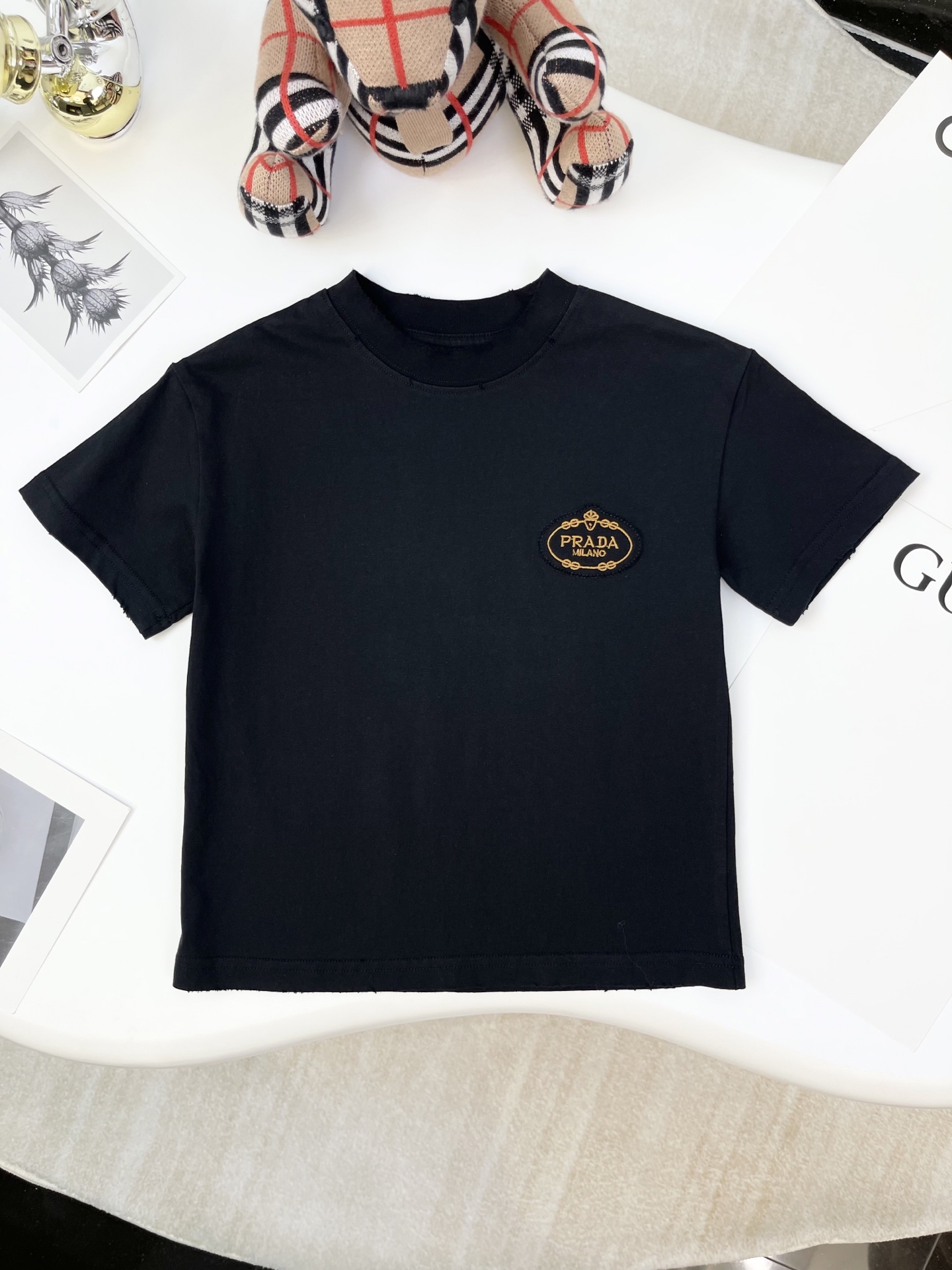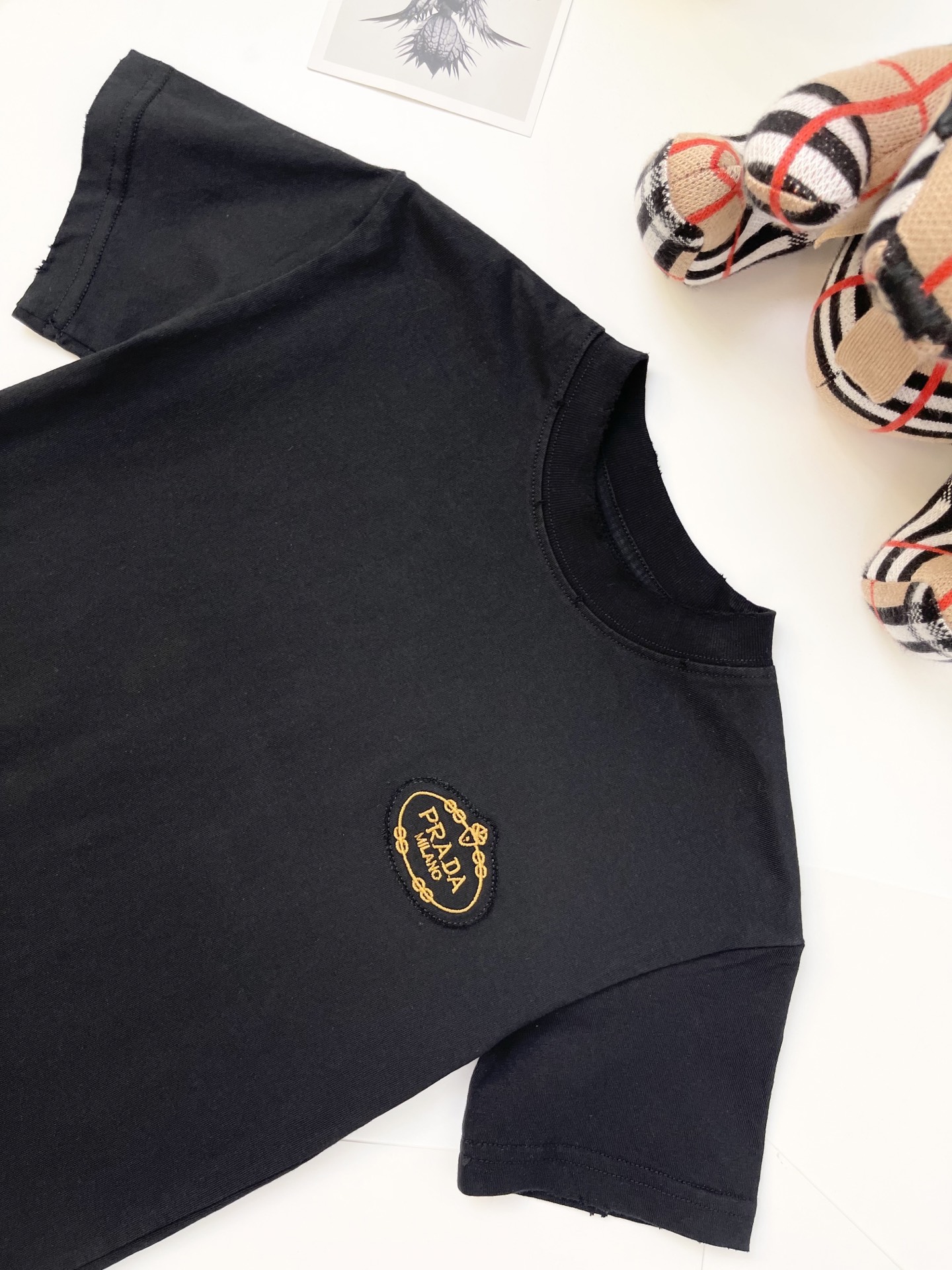 这款children's clothes是AAAAA 1:1 质量 (非常棒). 使用了和原版一模一样的材料. 商标部分也保持了和普拉达/Prada一样. 图片拍摄是实物children's clothes拍摄, 您所收到的实物保证和我们图片一模一样.