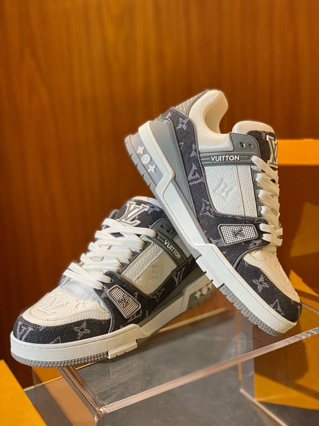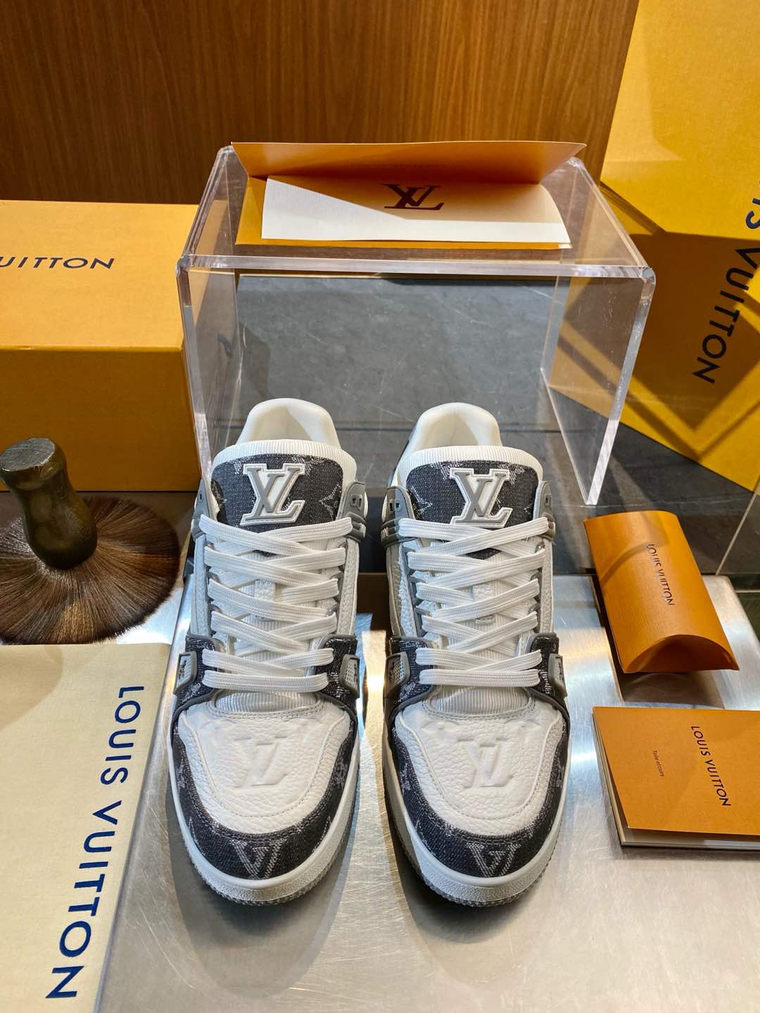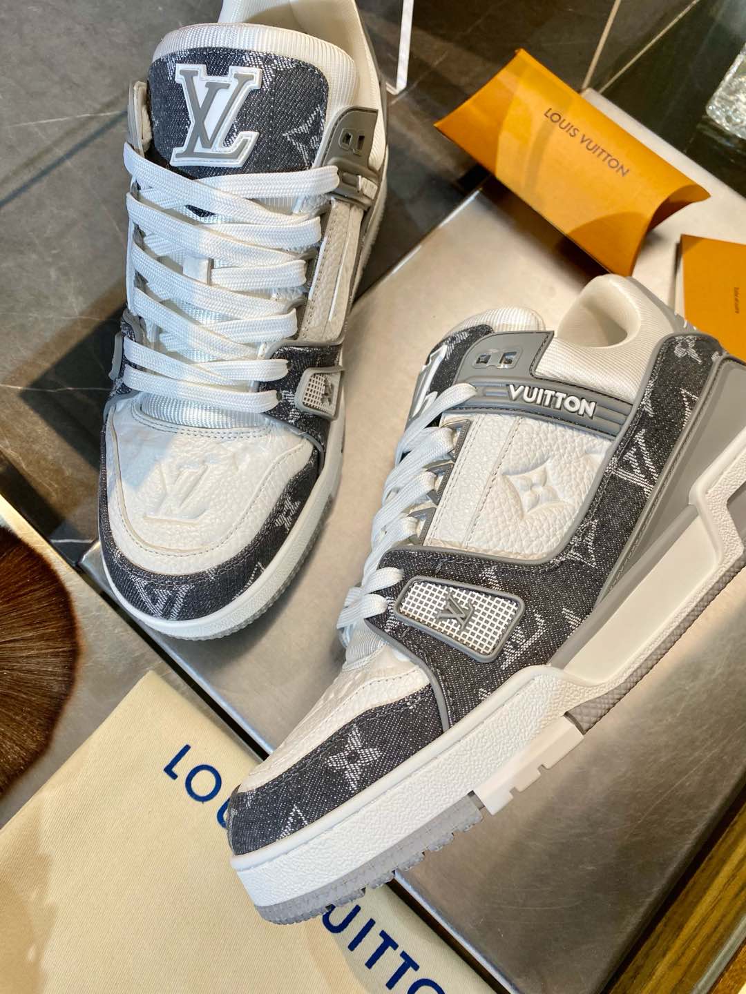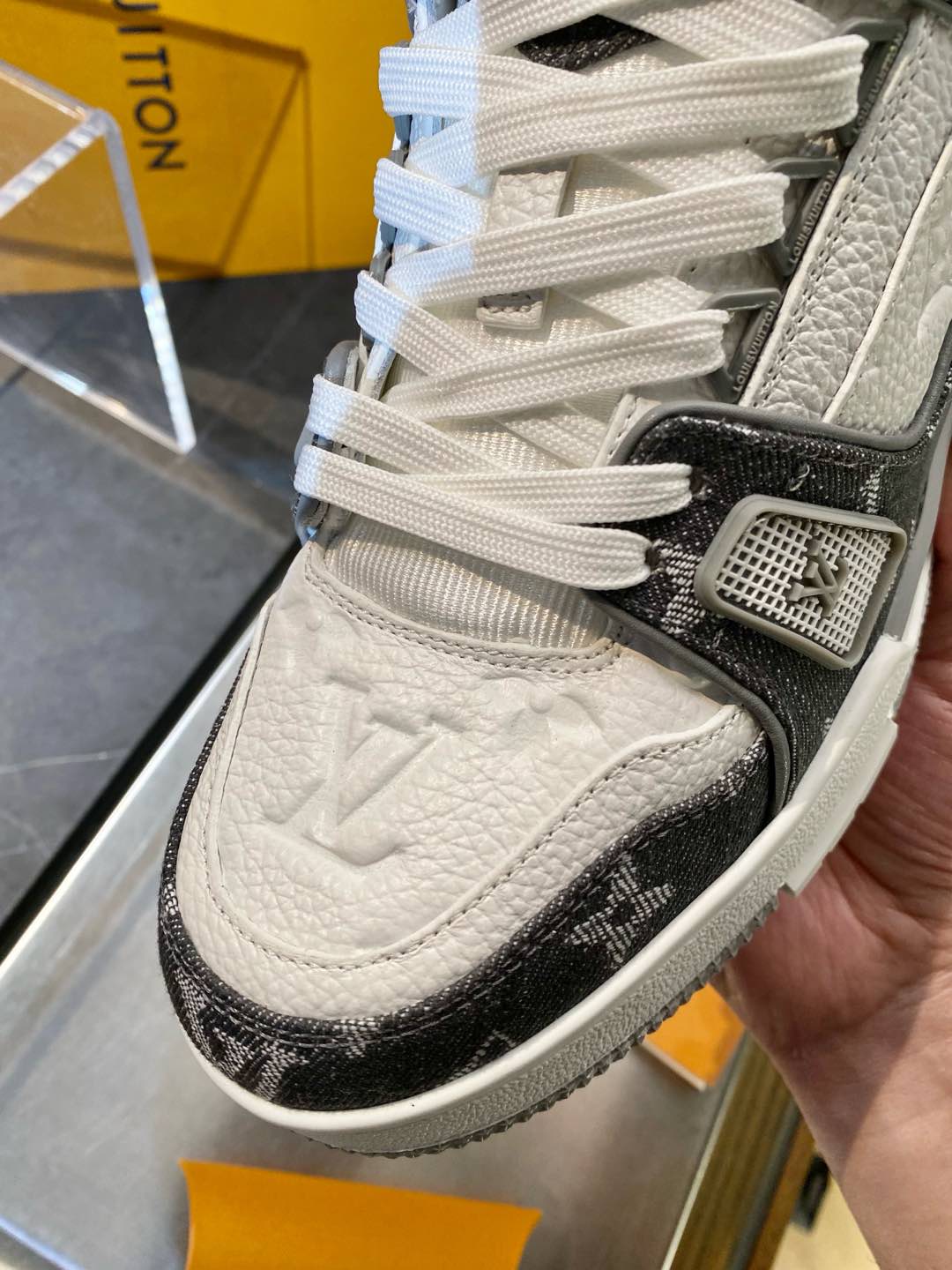 这款鞋子是AAAAA 1:1 质量 (非常棒). 使用了和原版一模一样的材料. 商标部分也保持了和路易威登/Louis Vuitton一样. 图片拍摄是实物鞋子拍摄, 您所收到的实物保证和我们图片一模一样.