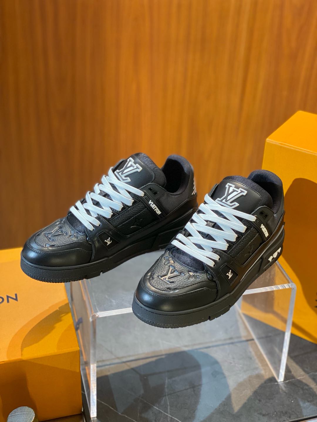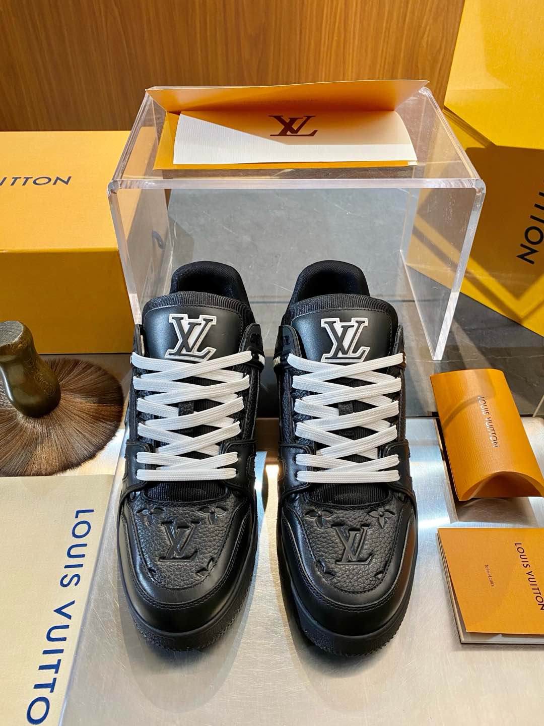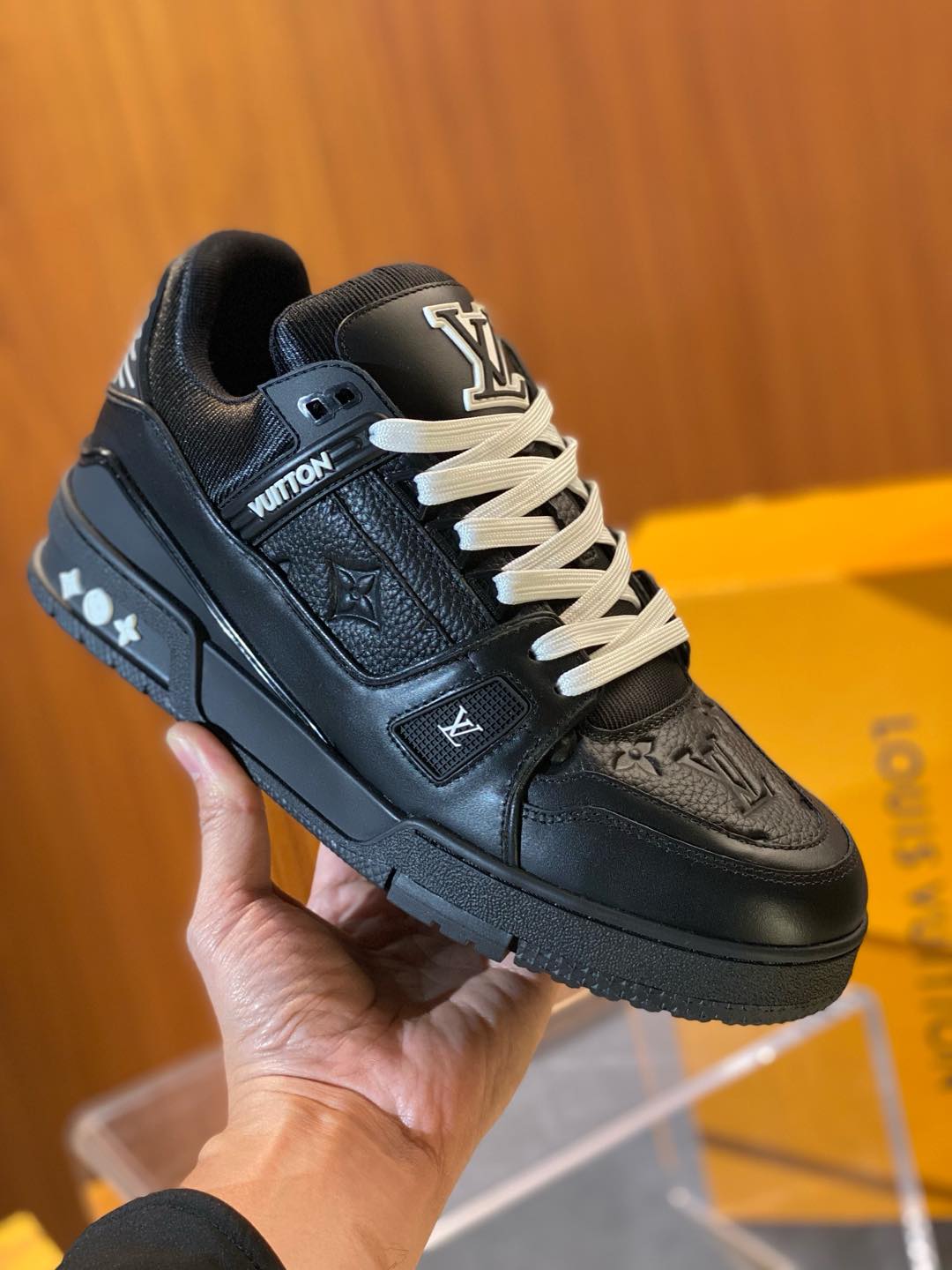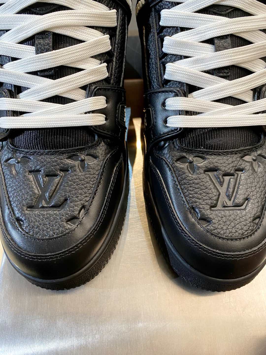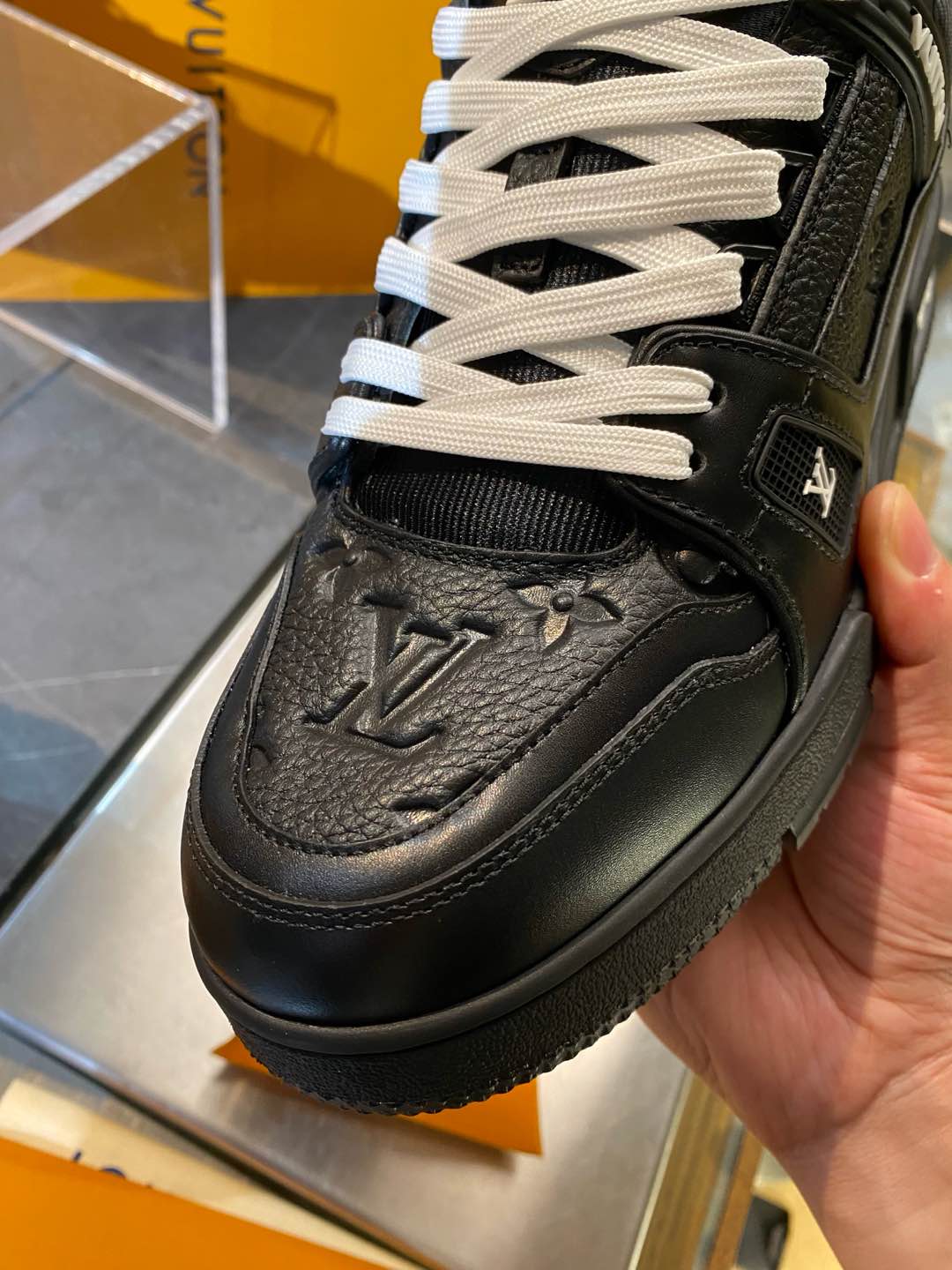 这款鞋子是AAAAA 1:1 质量 (非常棒). 使用了和原版一模一样的材料. 商标部分也保持了和路易威登/Louis Vuitton一样. 图片拍摄是实物鞋子拍摄, 您所收到的实物保证和我们图片一模一样.
