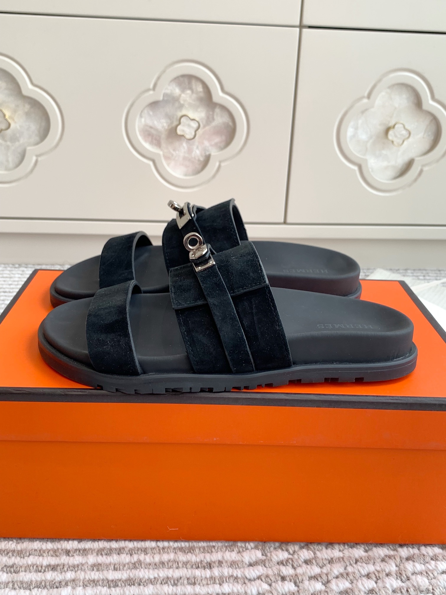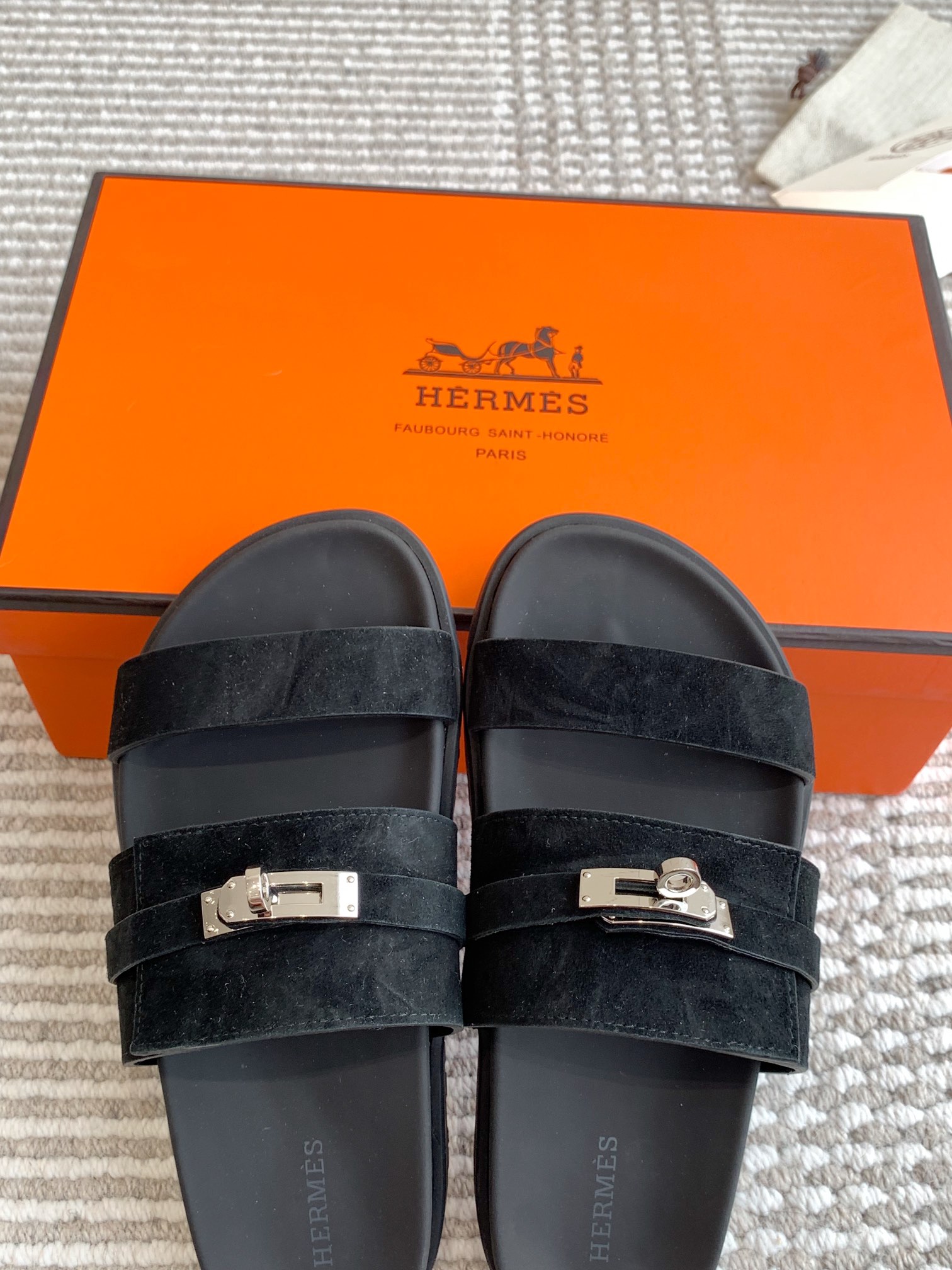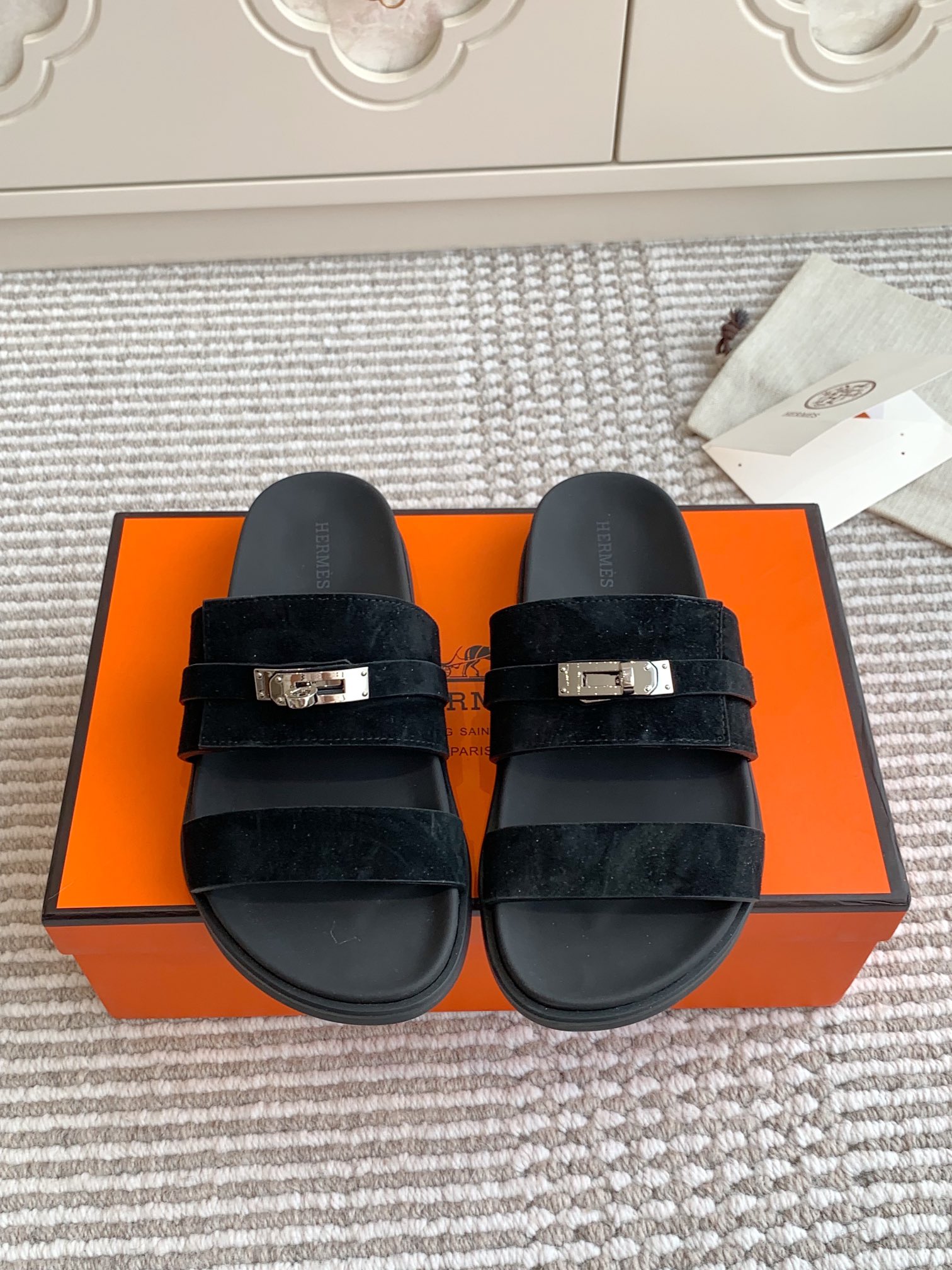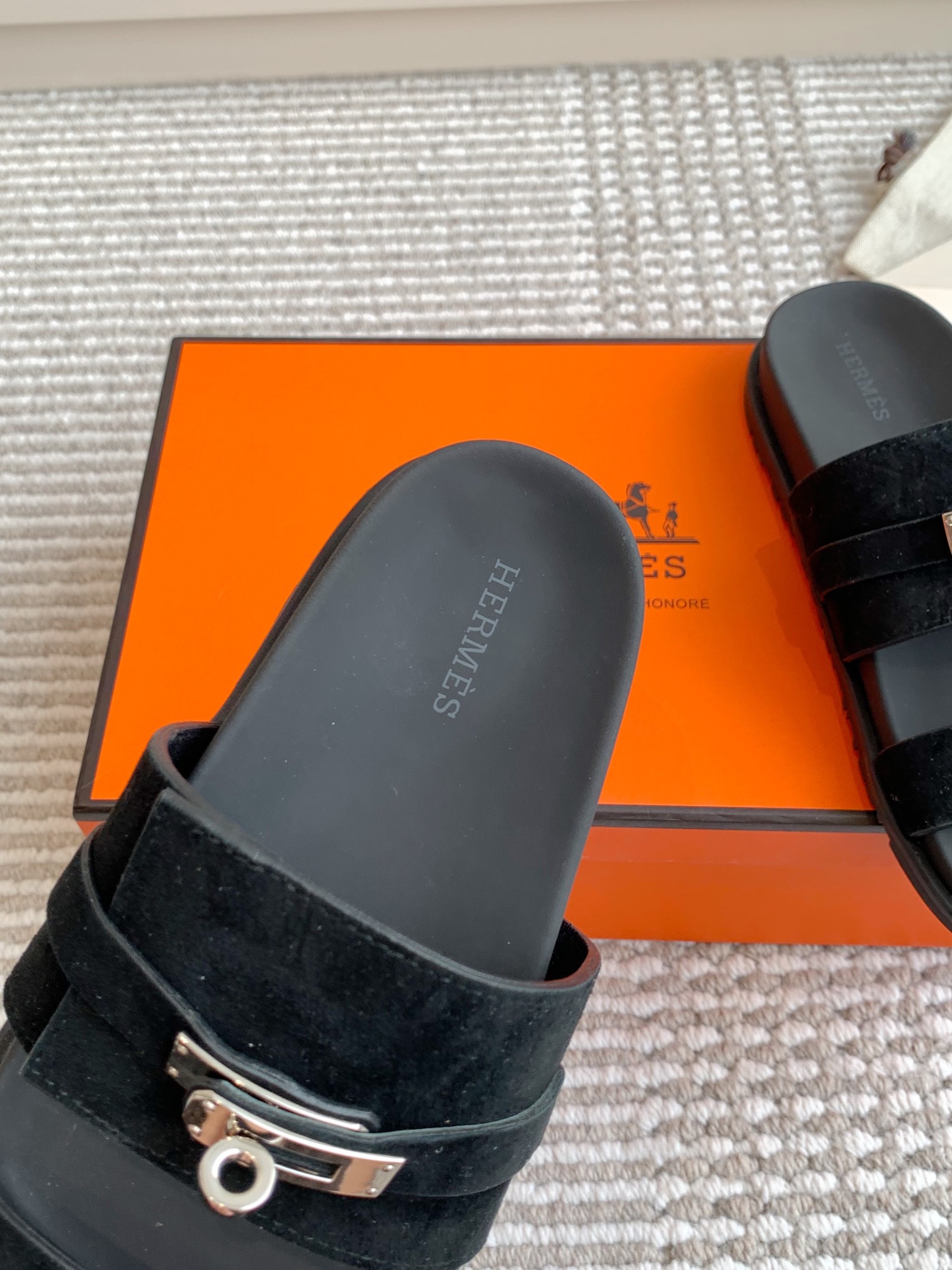 这款鞋子是AAAAA 1:1 质量 (非常棒). 使用了和原版一模一样的材料. 商标部分也保持了和爱马仕/Hermes一样. 图片拍摄是实物鞋子拍摄, 您所收到的实物保证和我们图片一模一样.