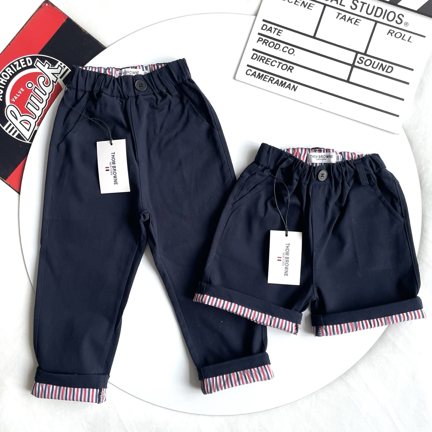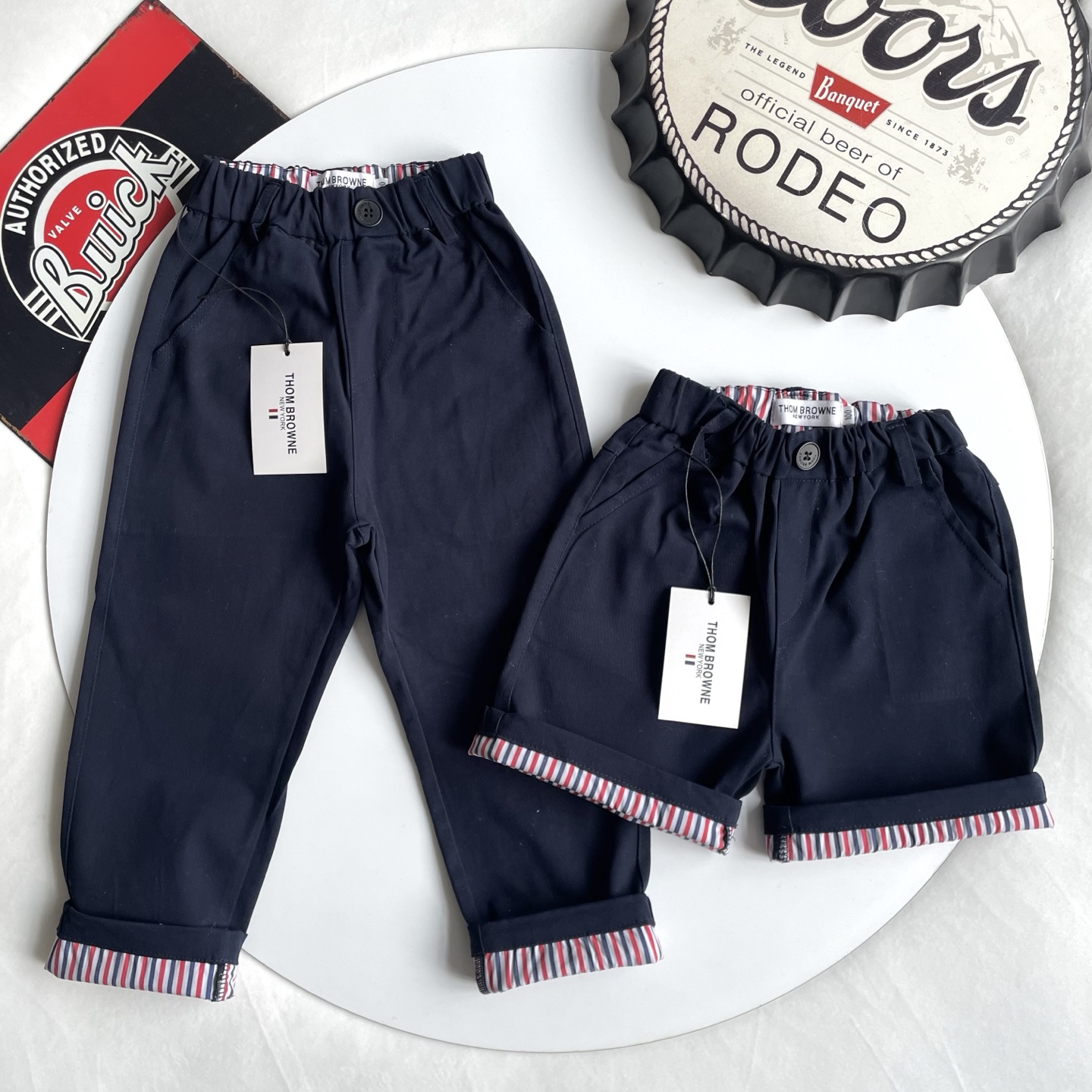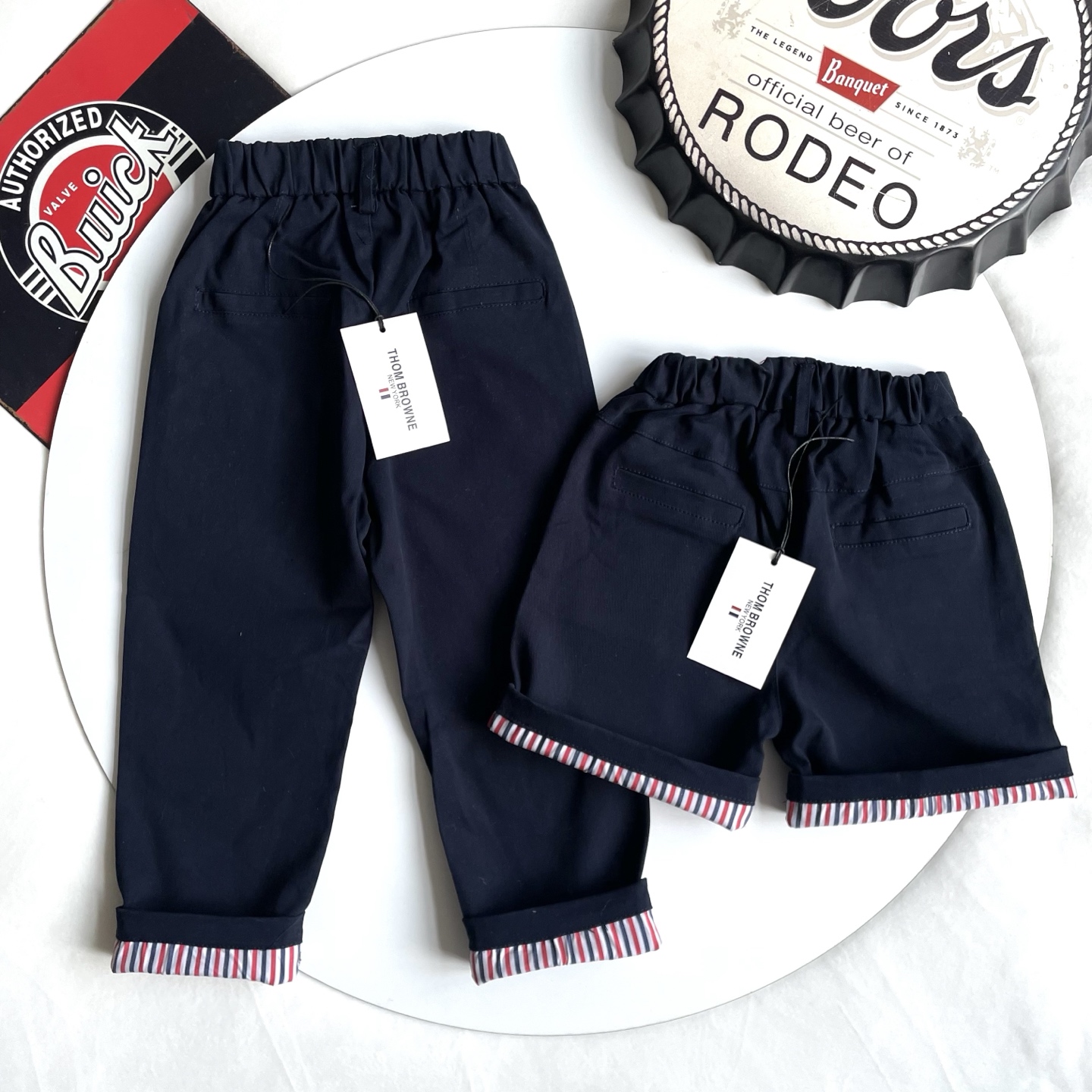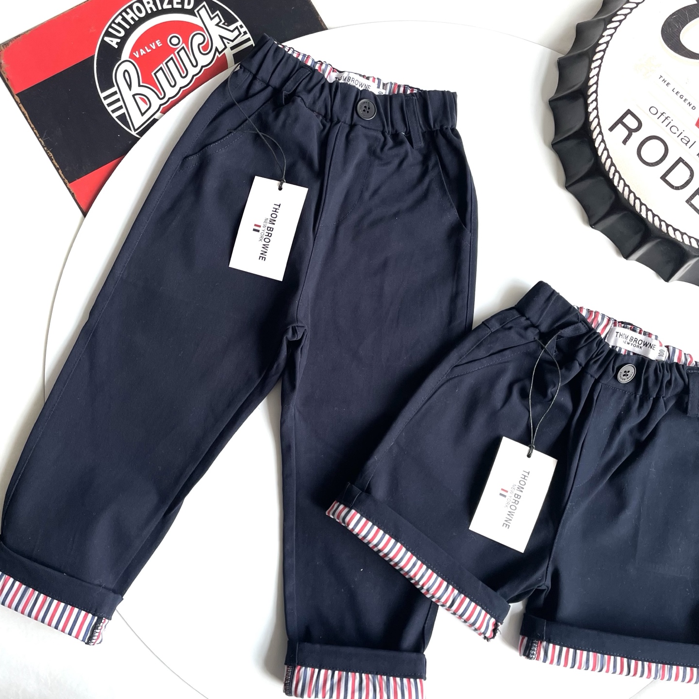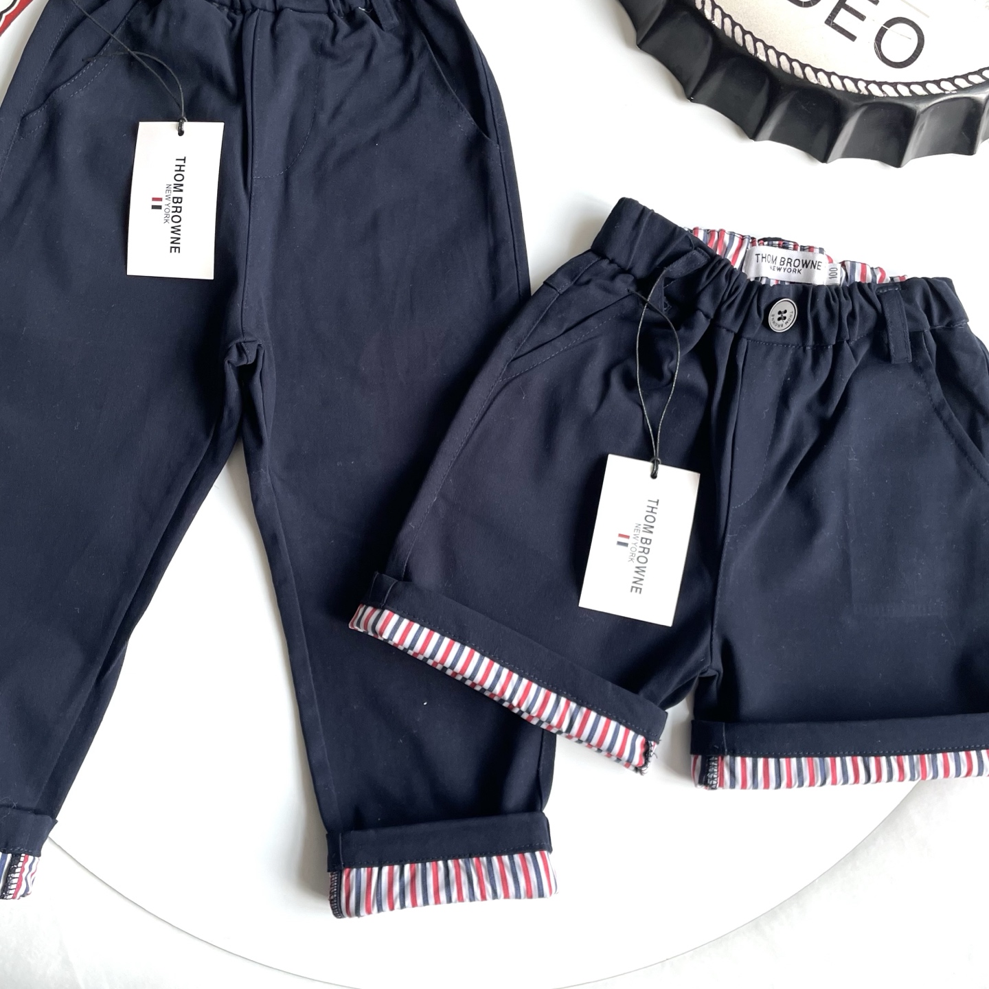 这款children's clothes是AAAAA 1:1 质量 (非常棒). 使用了和原版一模一样的材料. 商标部分也保持了和汤姆布朗/Thom Browne一样. 图片拍摄是实物children's clothes拍摄, 您所收到的实物保证和我们图片一模一样.