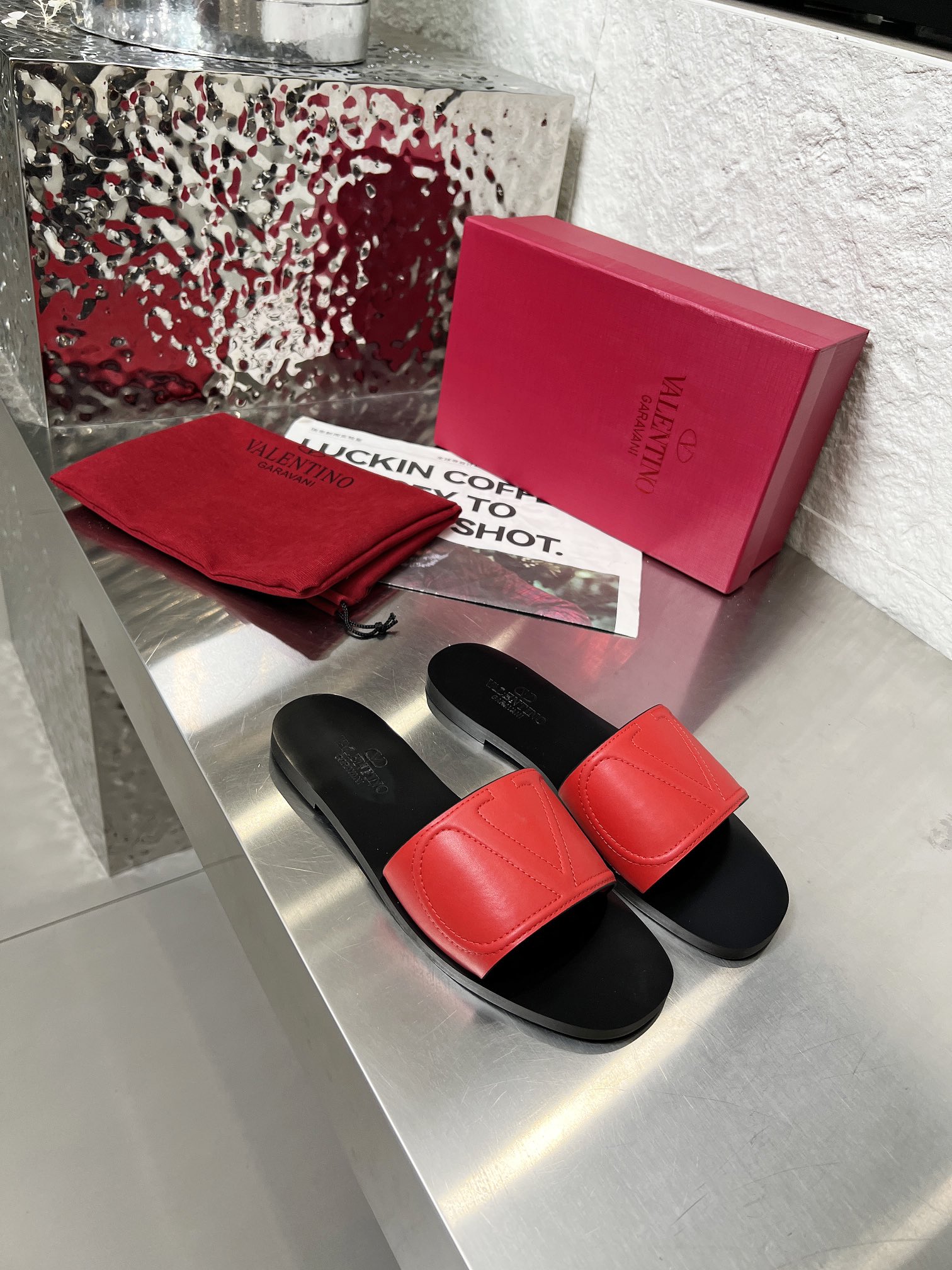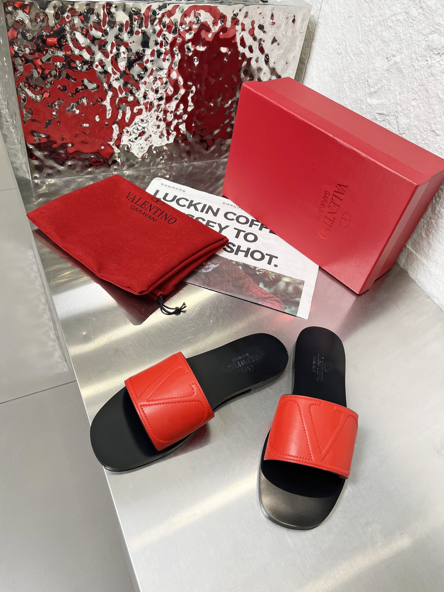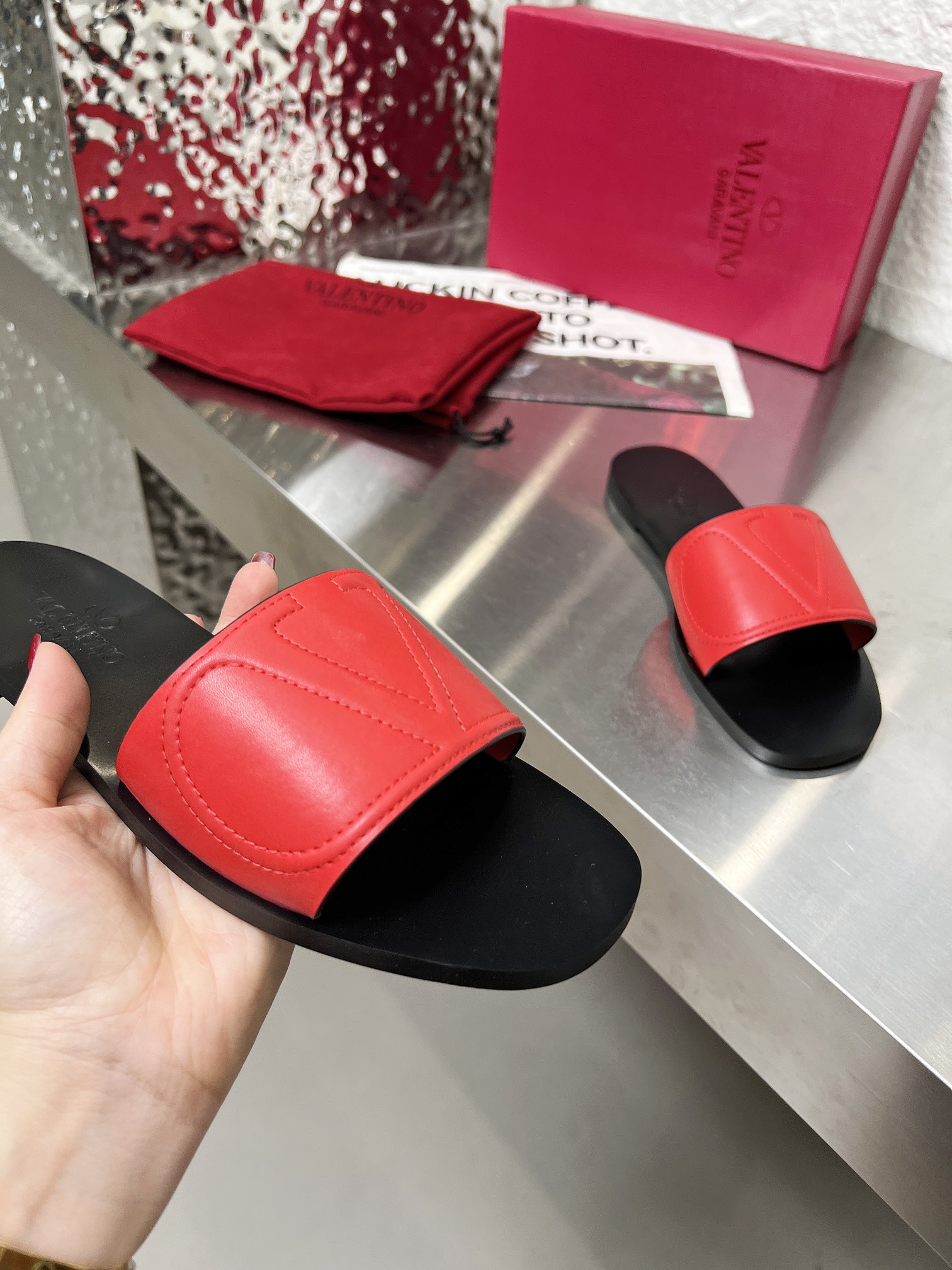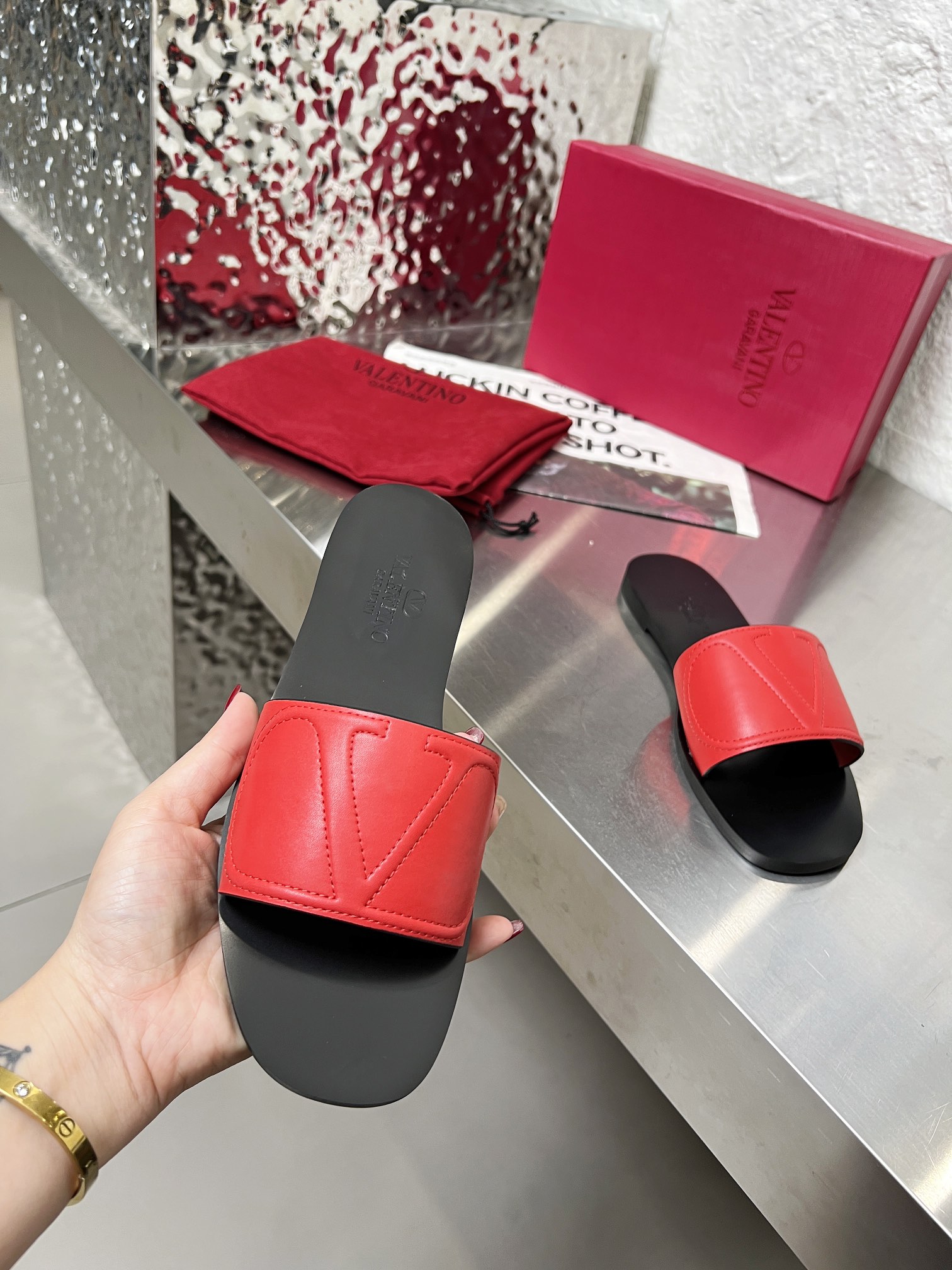 这款鞋子是AAAAA 1:1 质量 (非常棒). 使用了和原版一模一样的材料. 商标部分也保持了和华伦天奴/Valentino一样. 图片拍摄是实物鞋子拍摄, 您所收到的实物保证和我们图片一模一样.