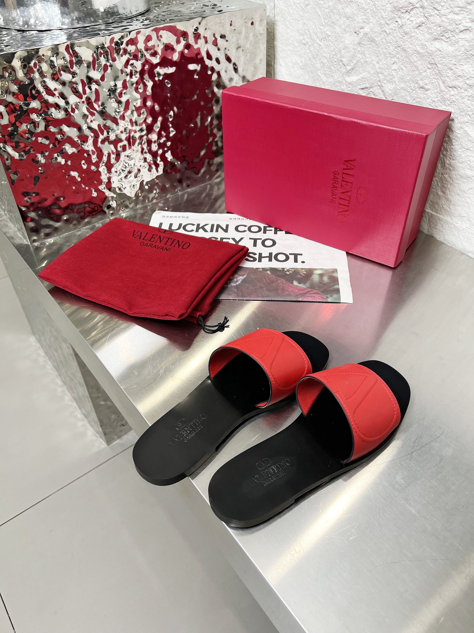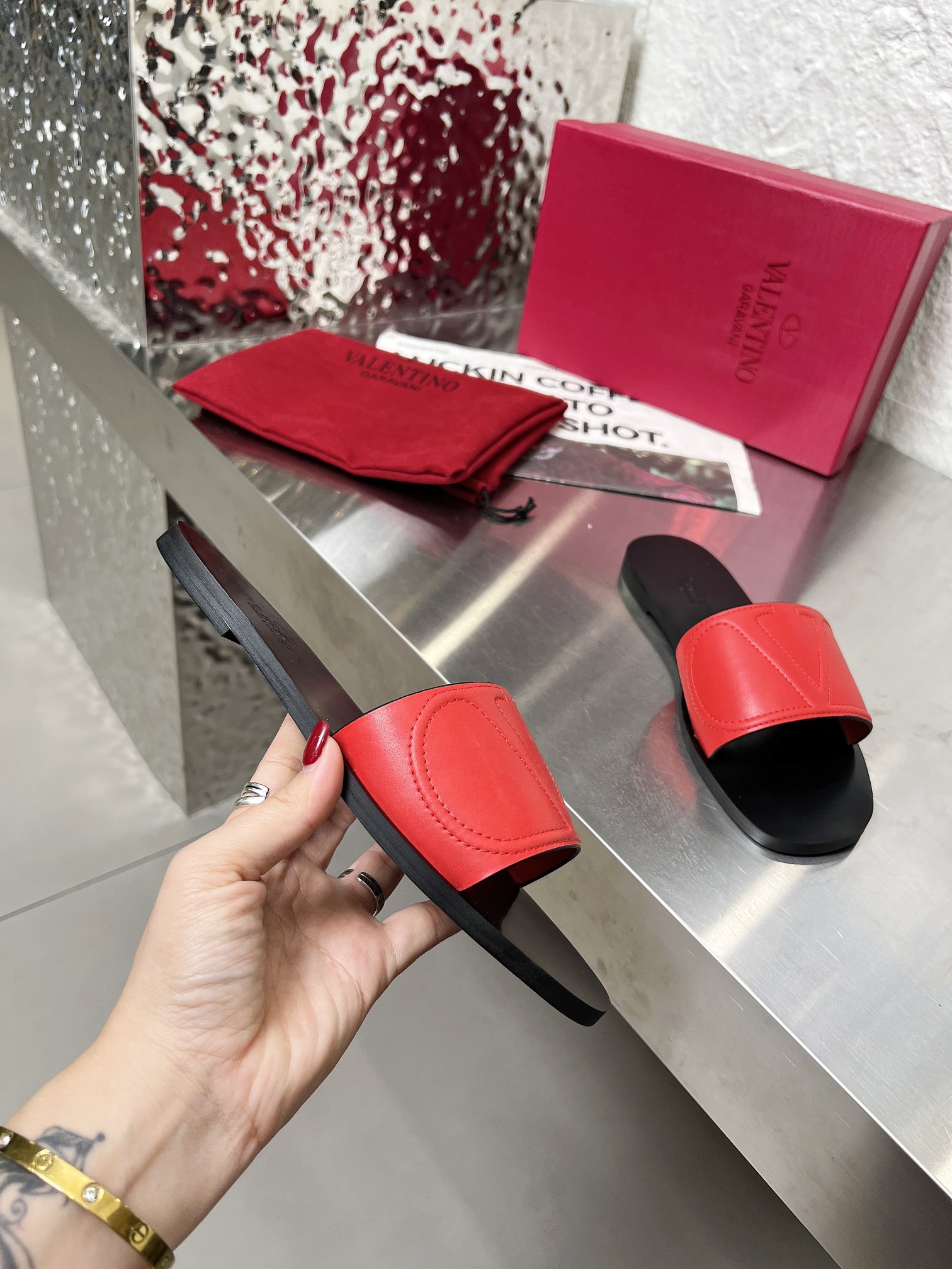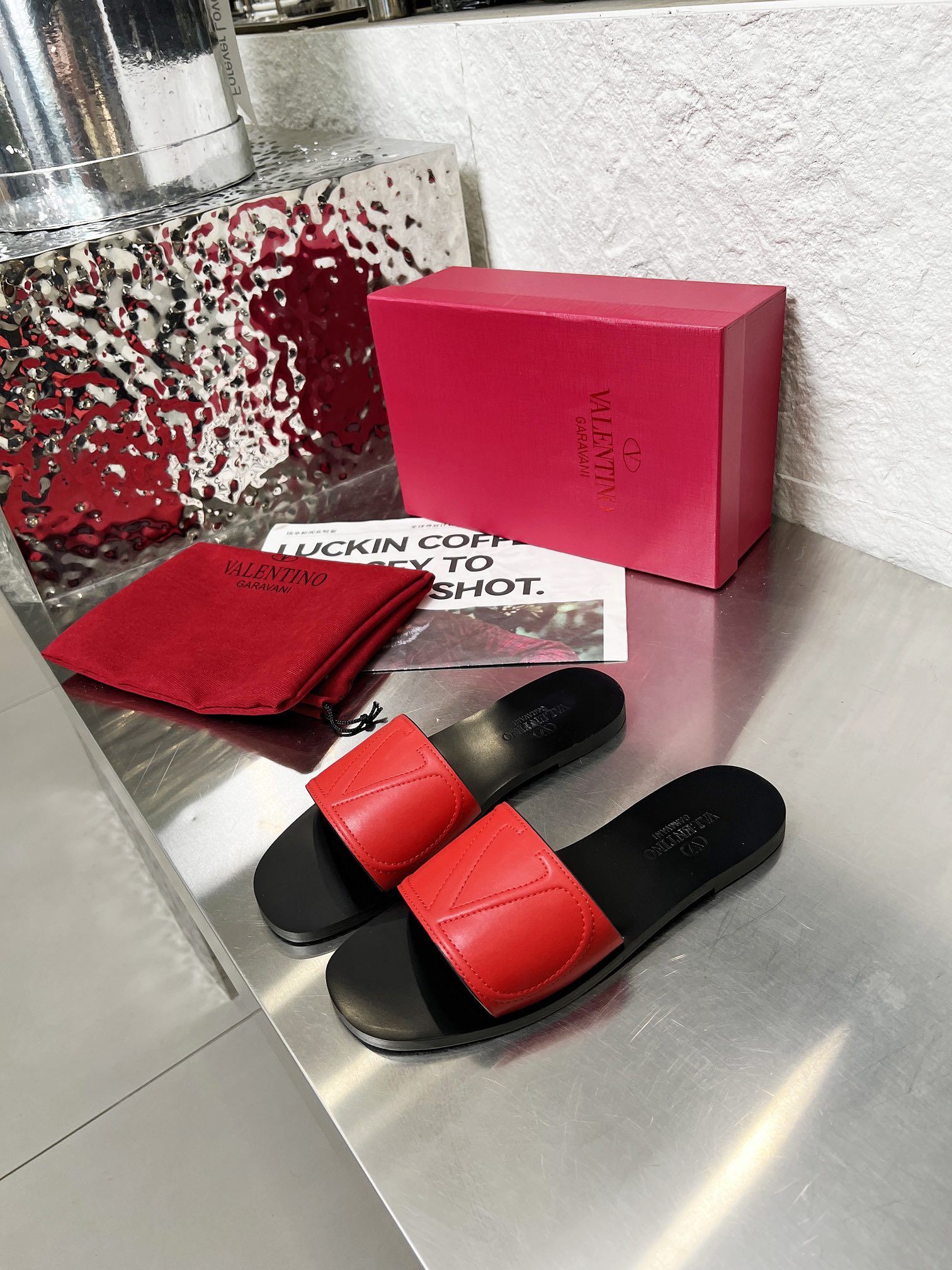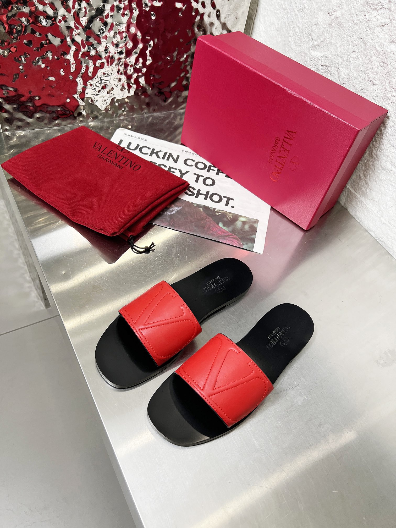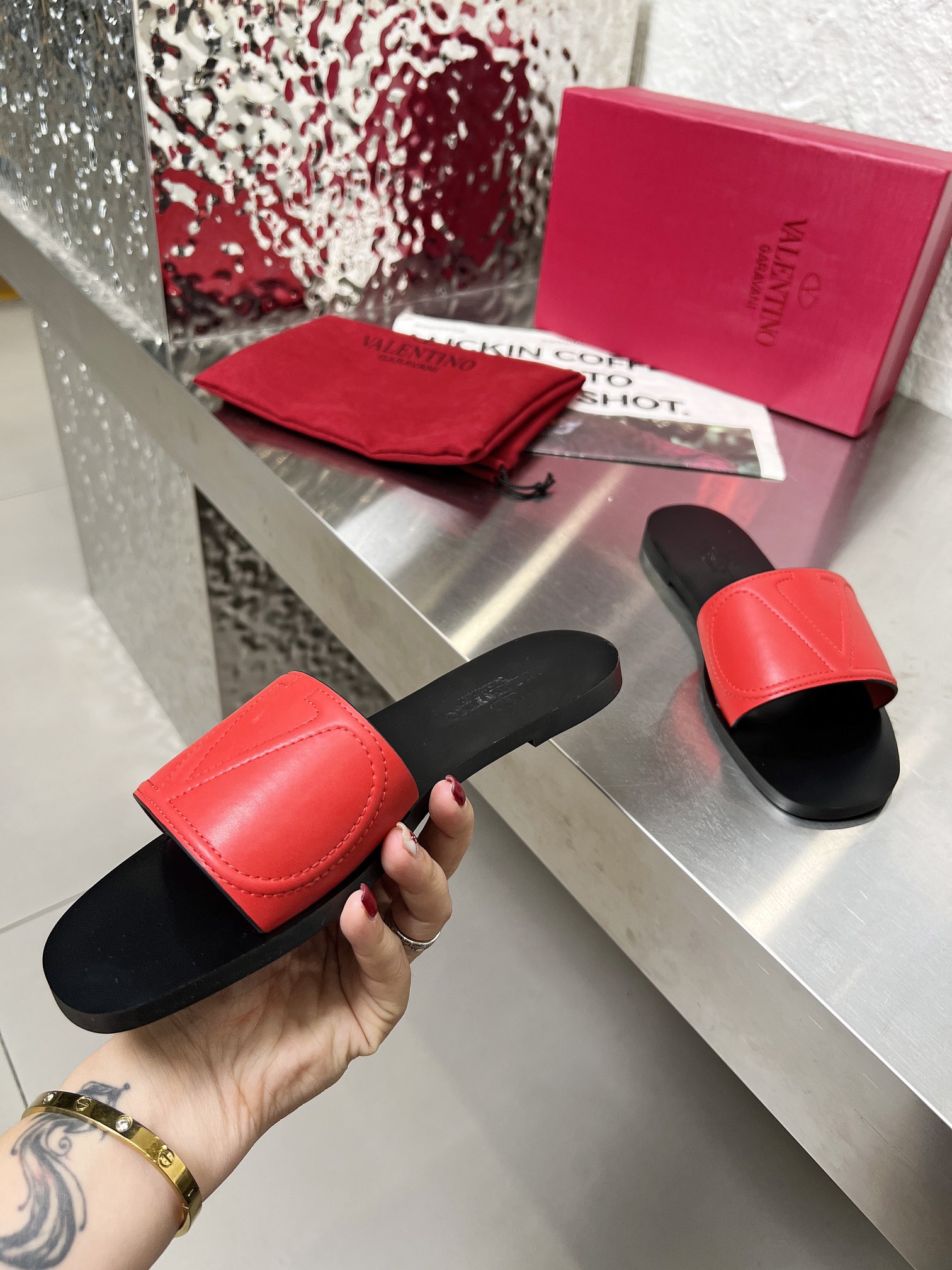 这款鞋子是AAAAA 1:1 质量 (非常棒). 使用了和原版一模一样的材料. 商标部分也保持了和华伦天奴/Valentino一样. 图片拍摄是实物鞋子拍摄, 您所收到的实物保证和我们图片一模一样.