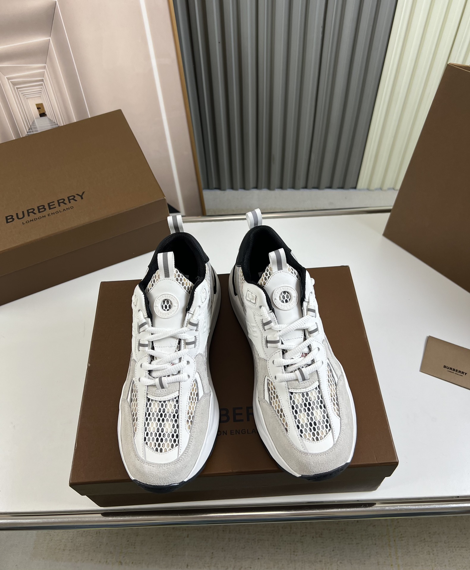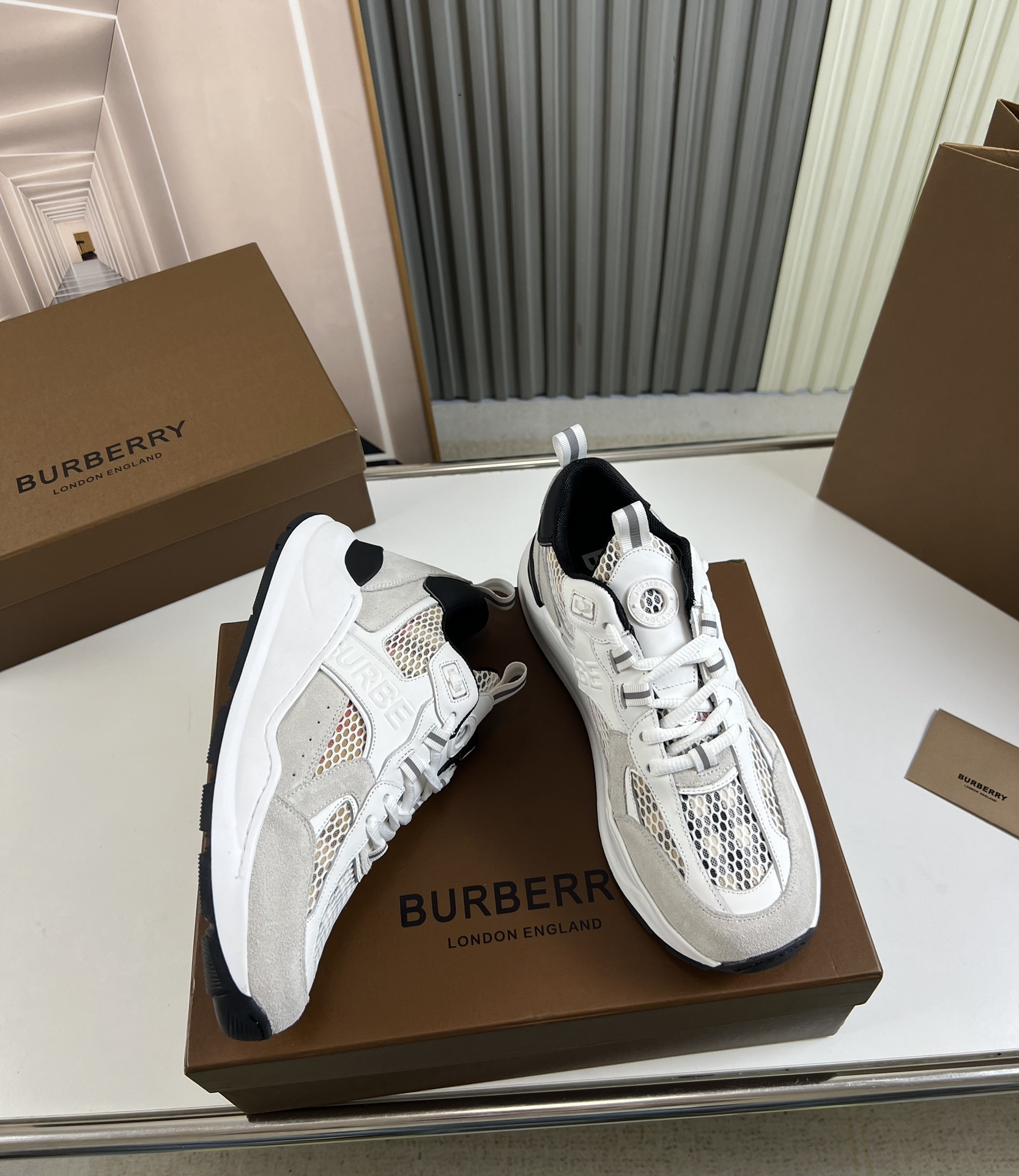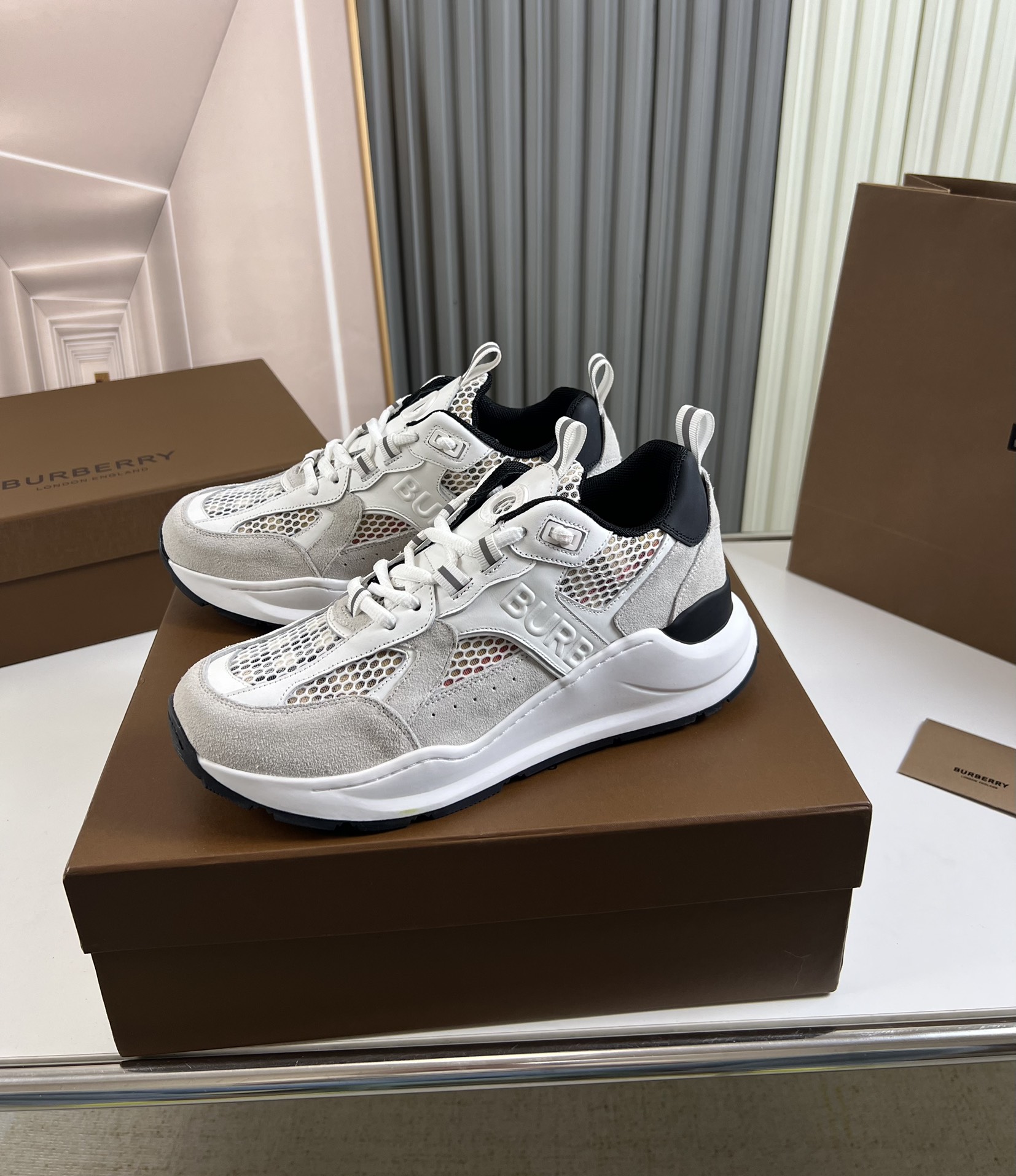 这款鞋子是AAAAA 1:1 质量 (非常棒). 使用了和原版一模一样的材料. 商标部分也保持了和巴宝莉/Burberry一样. 图片拍摄是实物鞋子拍摄, 您所收到的实物保证和我们图片一模一样.