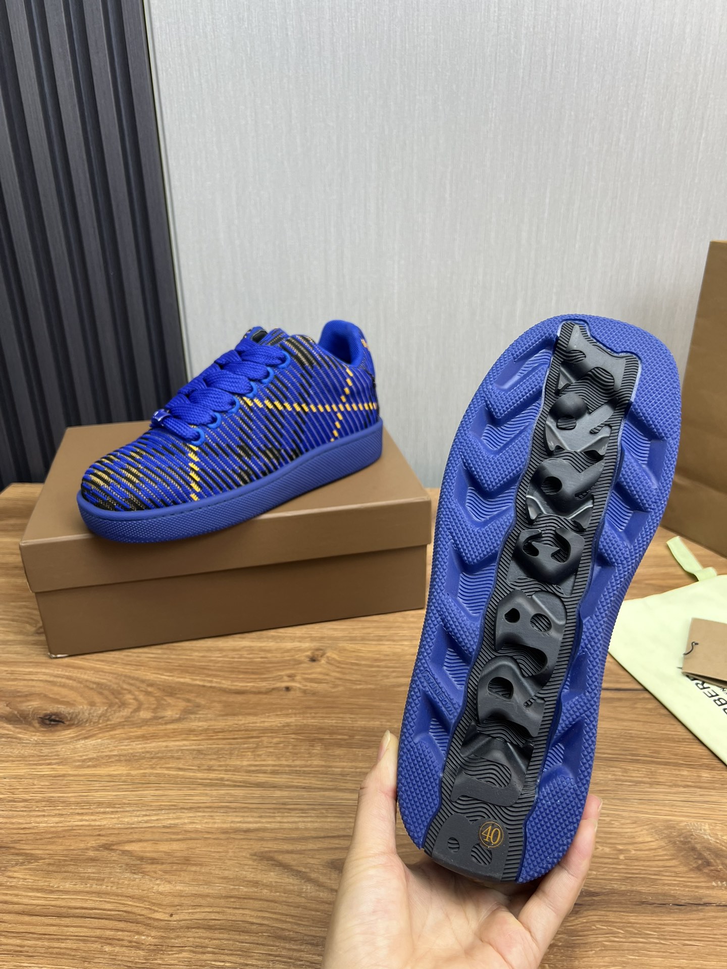 这款鞋子是AAAAA 1:1 质量 (非常棒). 使用了和原版一模一样的材料. 商标部分也保持了和巴宝莉/Burberry一样. 图片拍摄是实物鞋子拍摄, 您所收到的实物保证和我们图片一模一样.