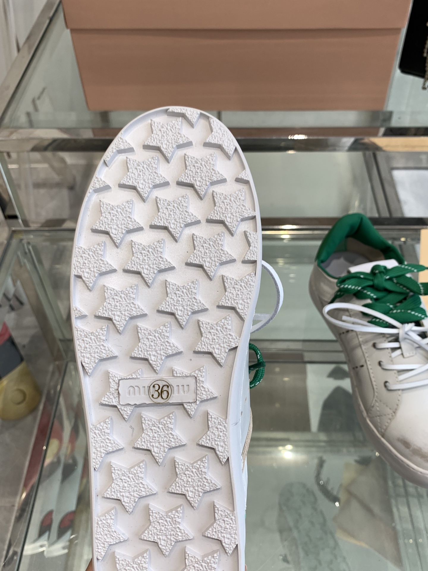 这款鞋子是AAAAA 1:1 质量 (非常棒). 使用了和原版一模一样的材料. 商标部分也保持了和缪缪/Miu Miu一样. 图片拍摄是实物鞋子拍摄, 您所收到的实物保证和我们图片一模一样.