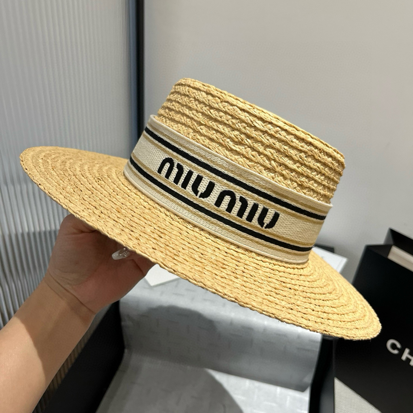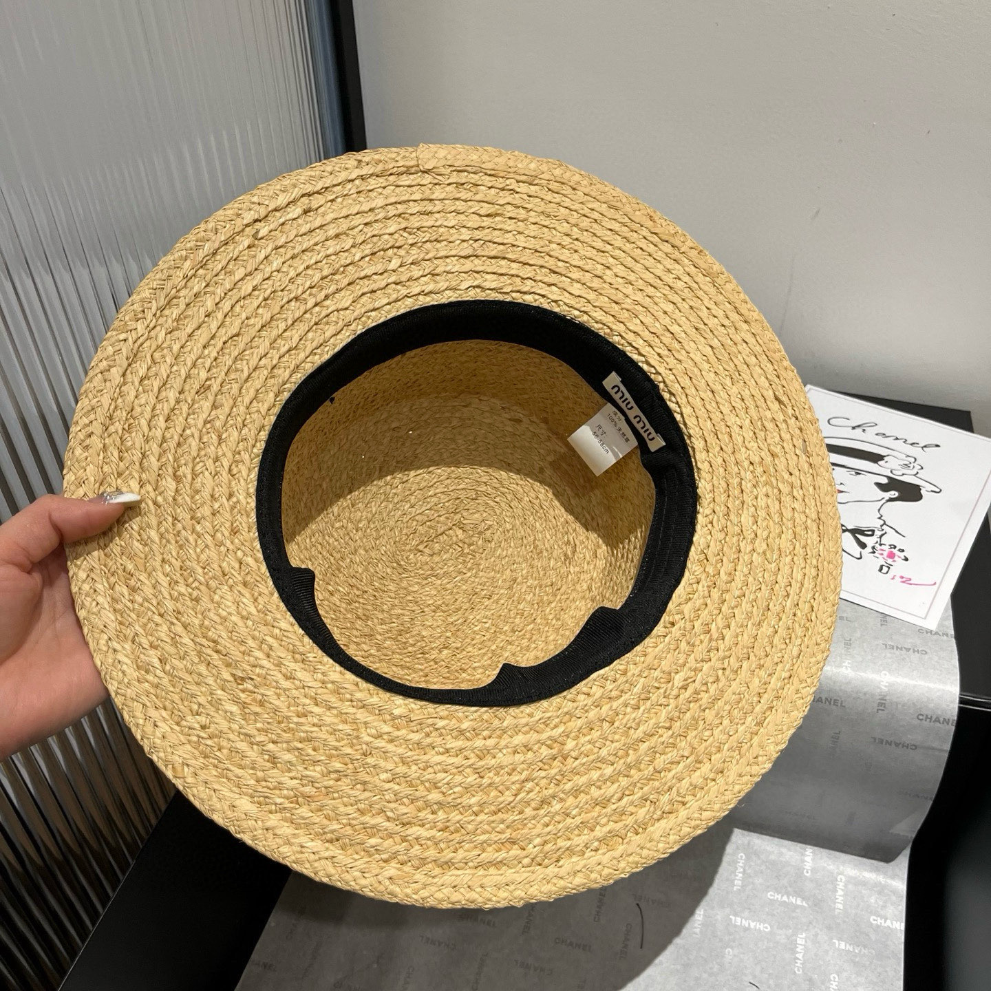 这款帽子是AAAAA 1:1 质量 (非常棒). 使用了和原版一模一样的材料. 商标部分也保持了和缪缪/Miu Miu一样. 图片拍摄是实物帽子拍摄, 您所收到的实物保证和我们图片一模一样.