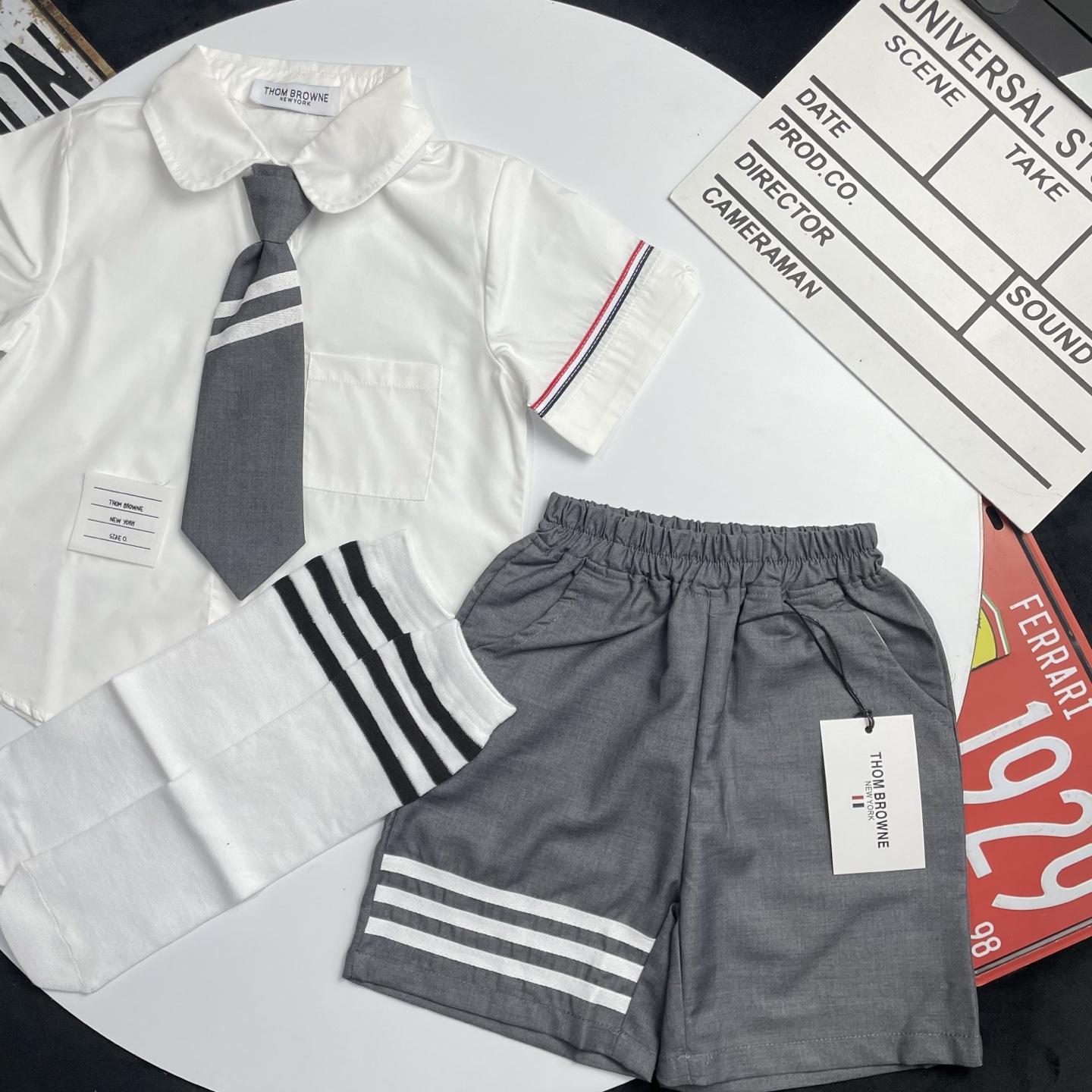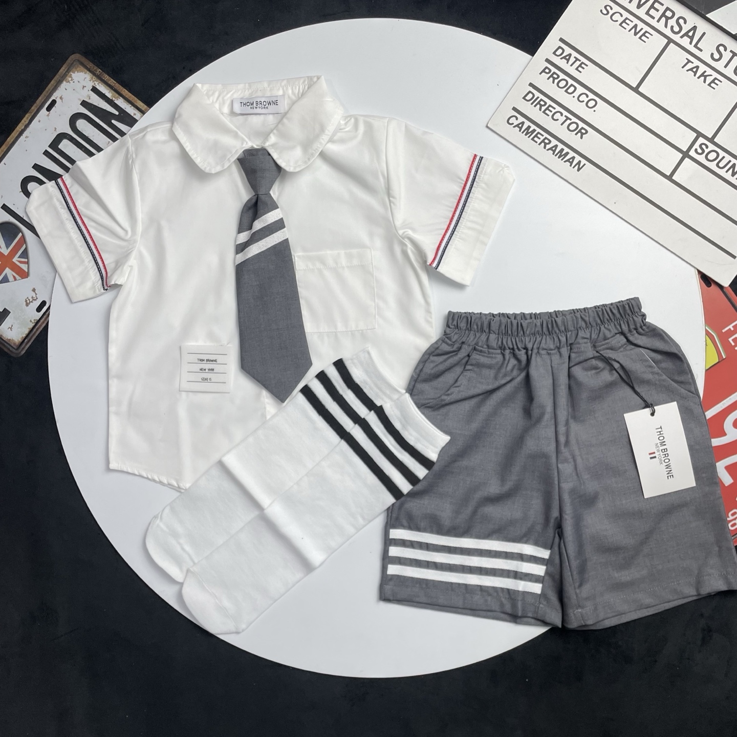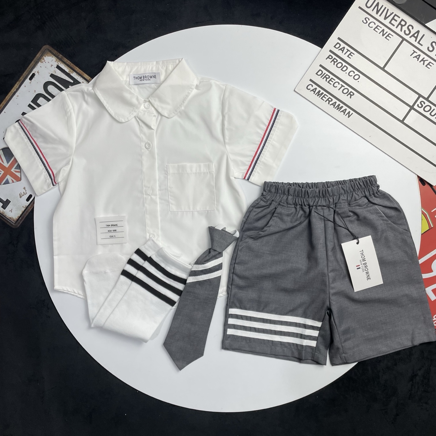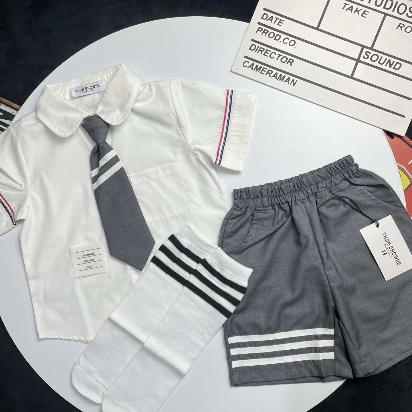 这款children's clothes是AAAAA 1:1 质量 (非常棒). 使用了和原版一模一样的材料. 商标部分也保持了和汤姆布朗/Thom Browne一样. 图片拍摄是实物children's clothes拍摄, 您所收到的实物保证和我们图片一模一样.