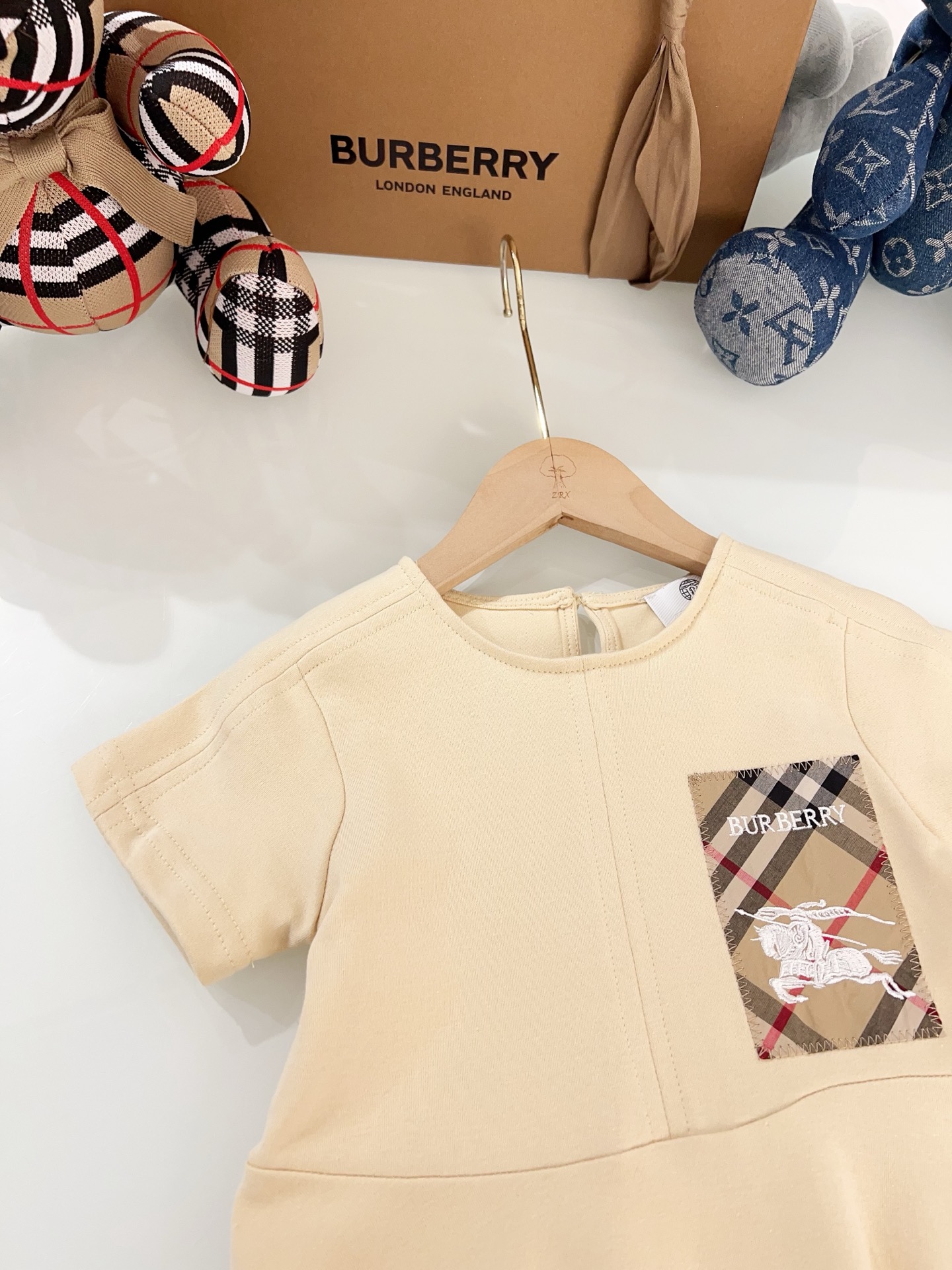 这款children's clothes是AAAAA 1:1 质量 (非常棒). 使用了和原版一模一样的材料. 商标部分也保持了和巴宝莉/Burberry一样. 图片拍摄是实物children's clothes拍摄, 您所收到的实物保证和我们图片一模一样.
