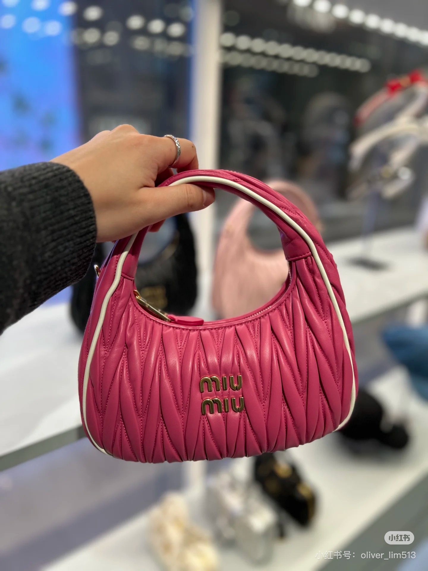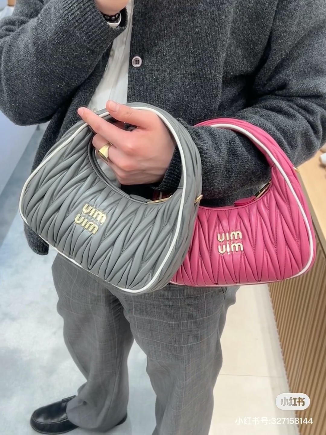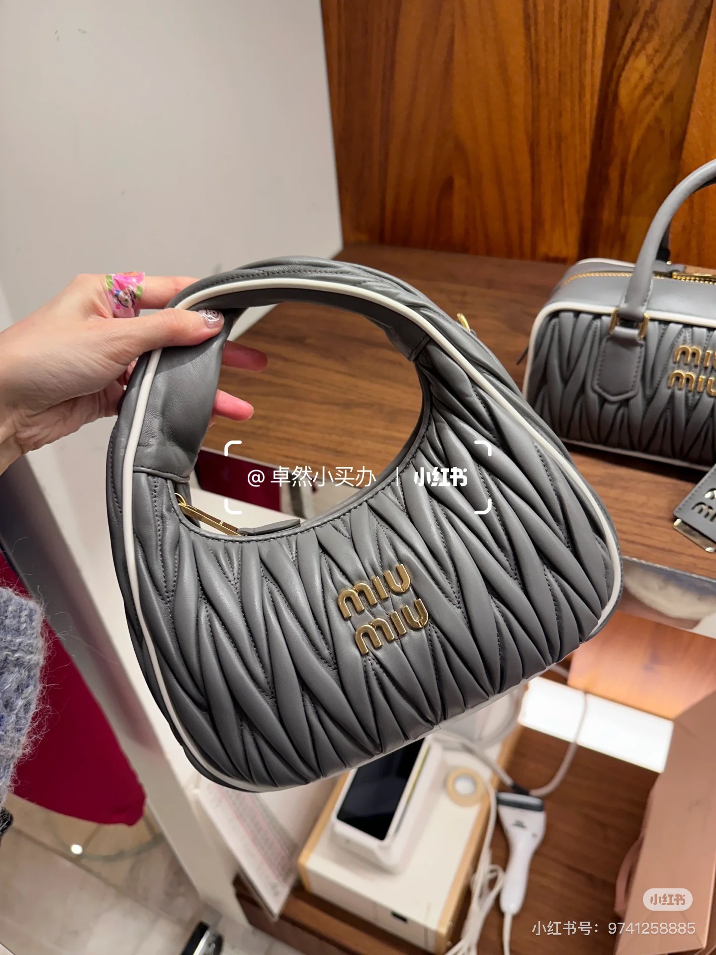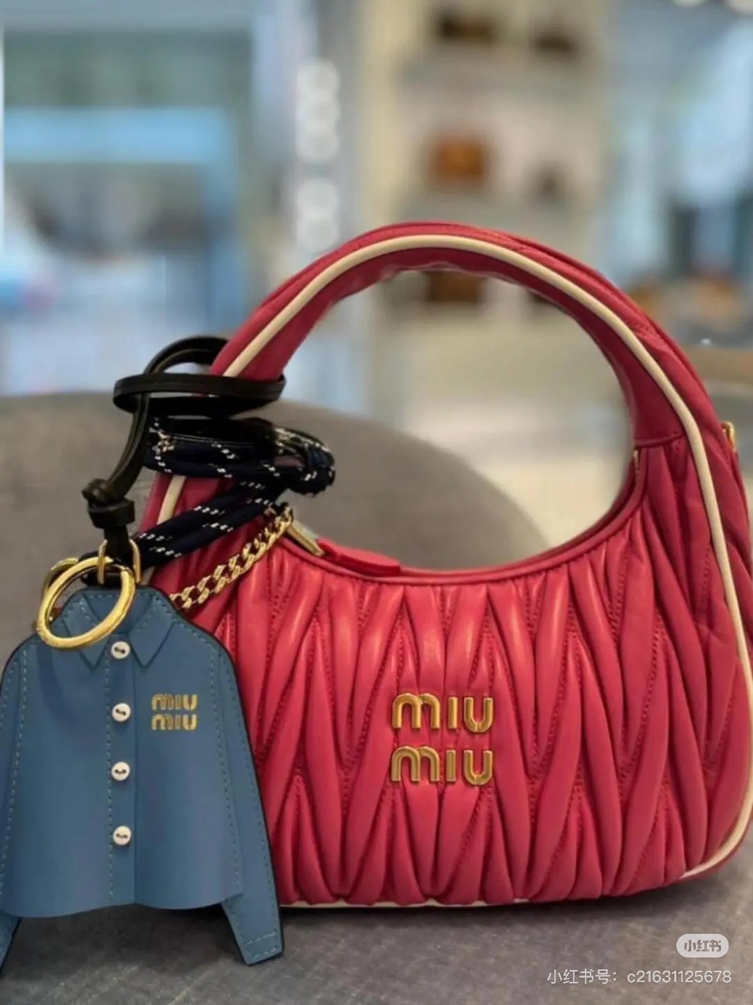 这款包包是AAAAA 1:1 质量 (非常棒). 使用了和原版一模一样的材料. 商标部分也保持了和缪缪/Miu Miu一样. 图片拍摄是实物包包拍摄, 您所收到的实物保证和我们图片一模一样.