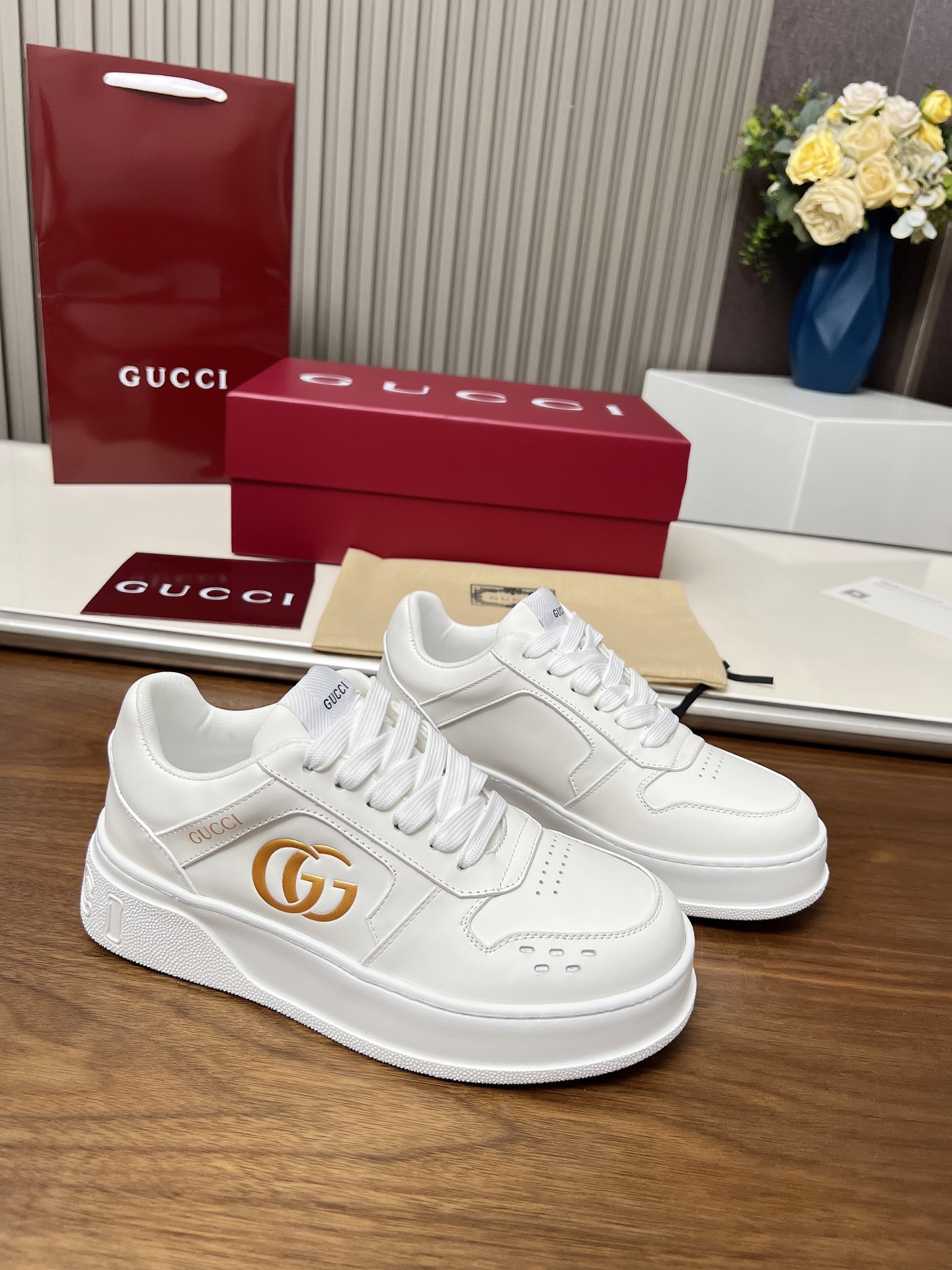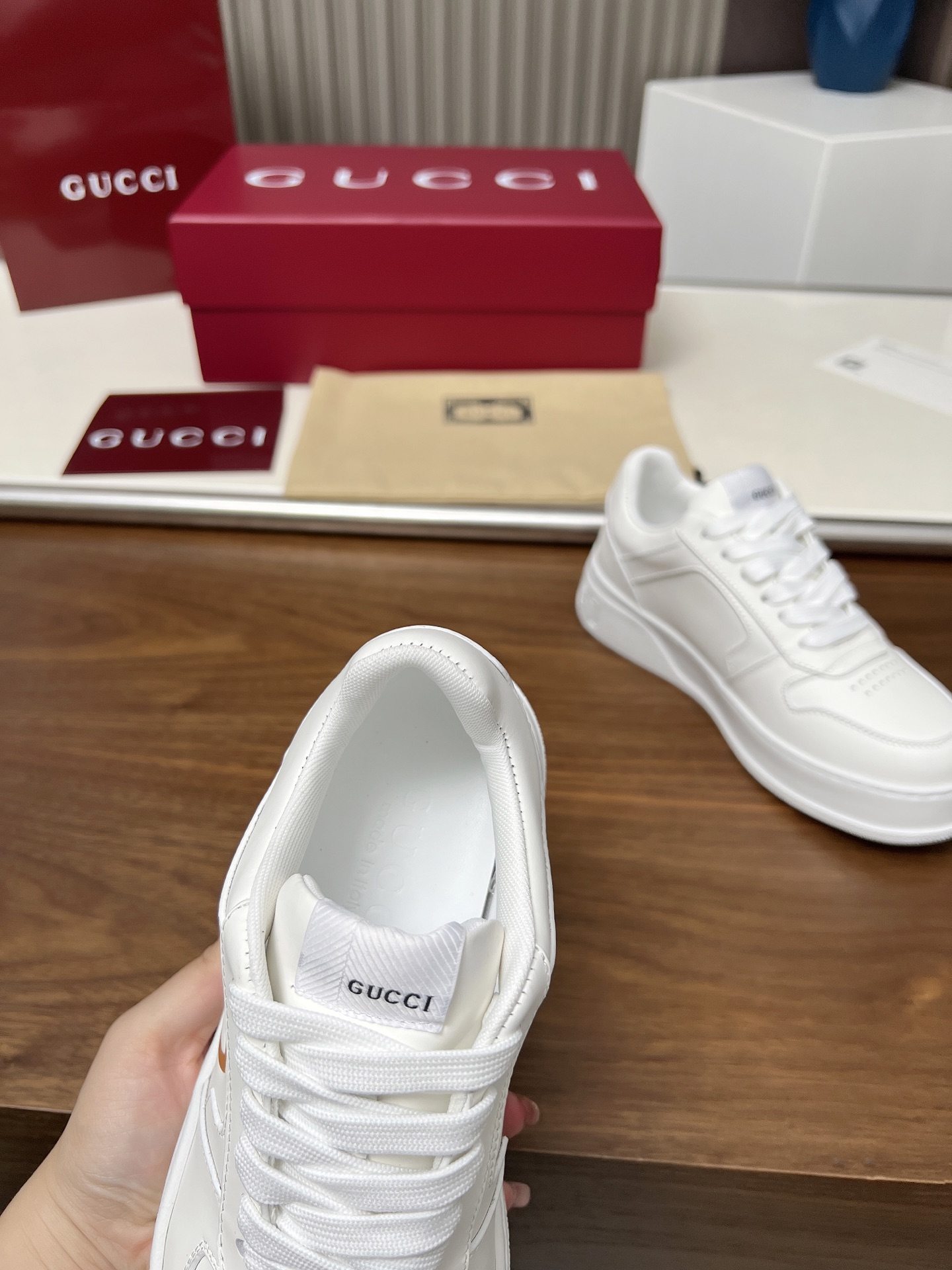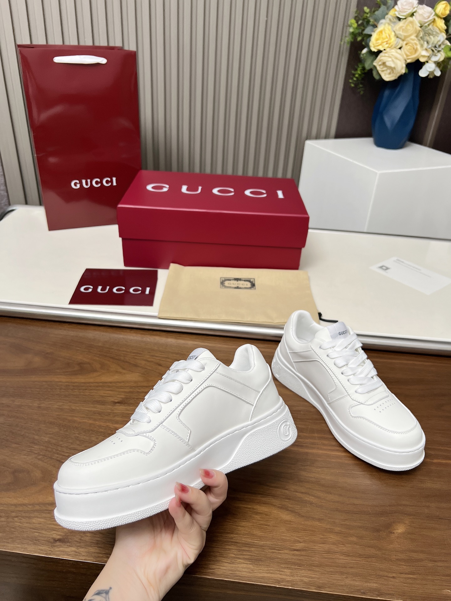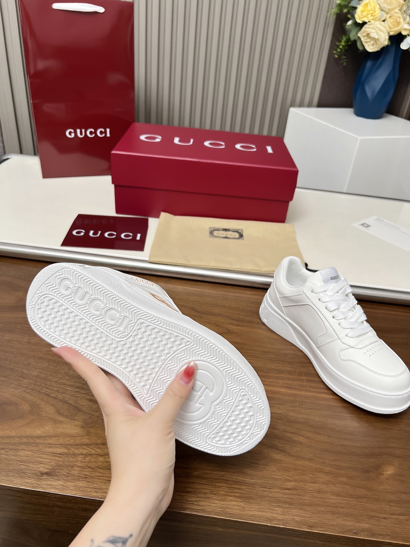 这款鞋子是AAAAA 1:1 质量 (非常棒). 使用了和原版一模一样的材料. 商标部分也保持了和古奇/Gucci一样. 图片拍摄是实物鞋子拍摄, 您所收到的实物保证和我们图片一模一样.
