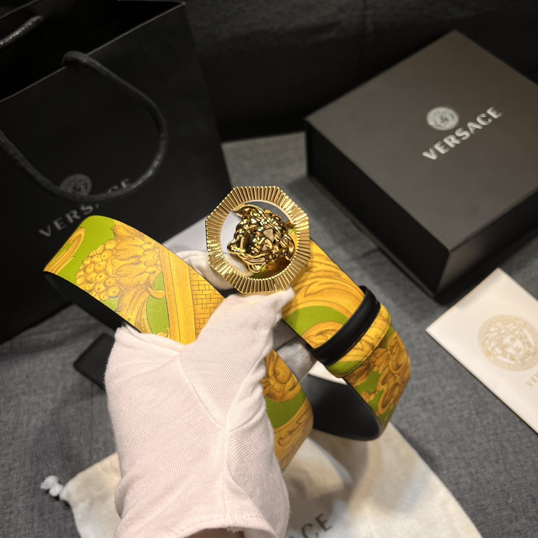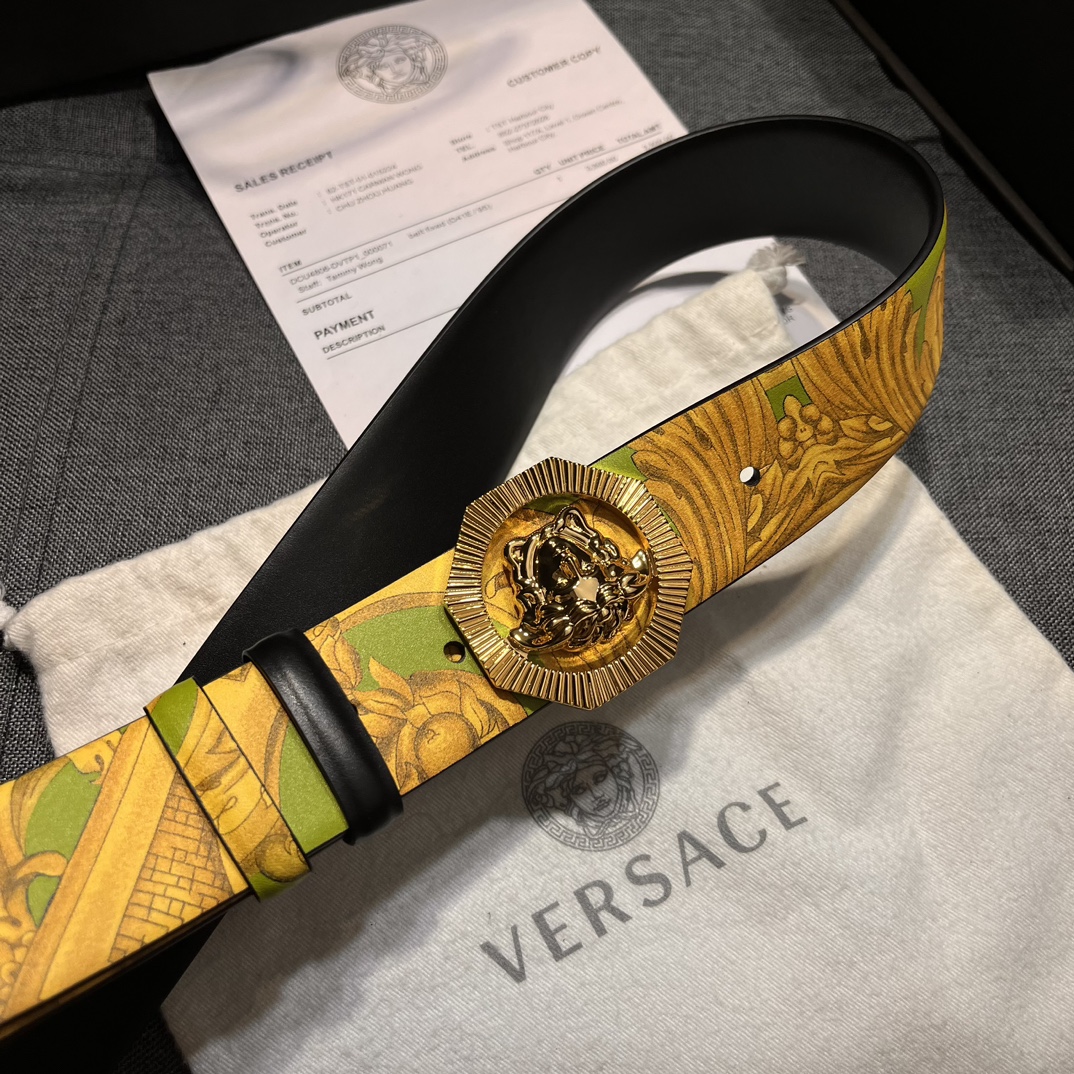 这款皮带是AAAAA 1:1 质量 (非常棒). 使用了和原版一模一样的材料. 商标部分也保持了和范思哲/Versace一样. 图片拍摄是实物皮带拍摄, 您所收到的实物保证和我们图片一模一样.