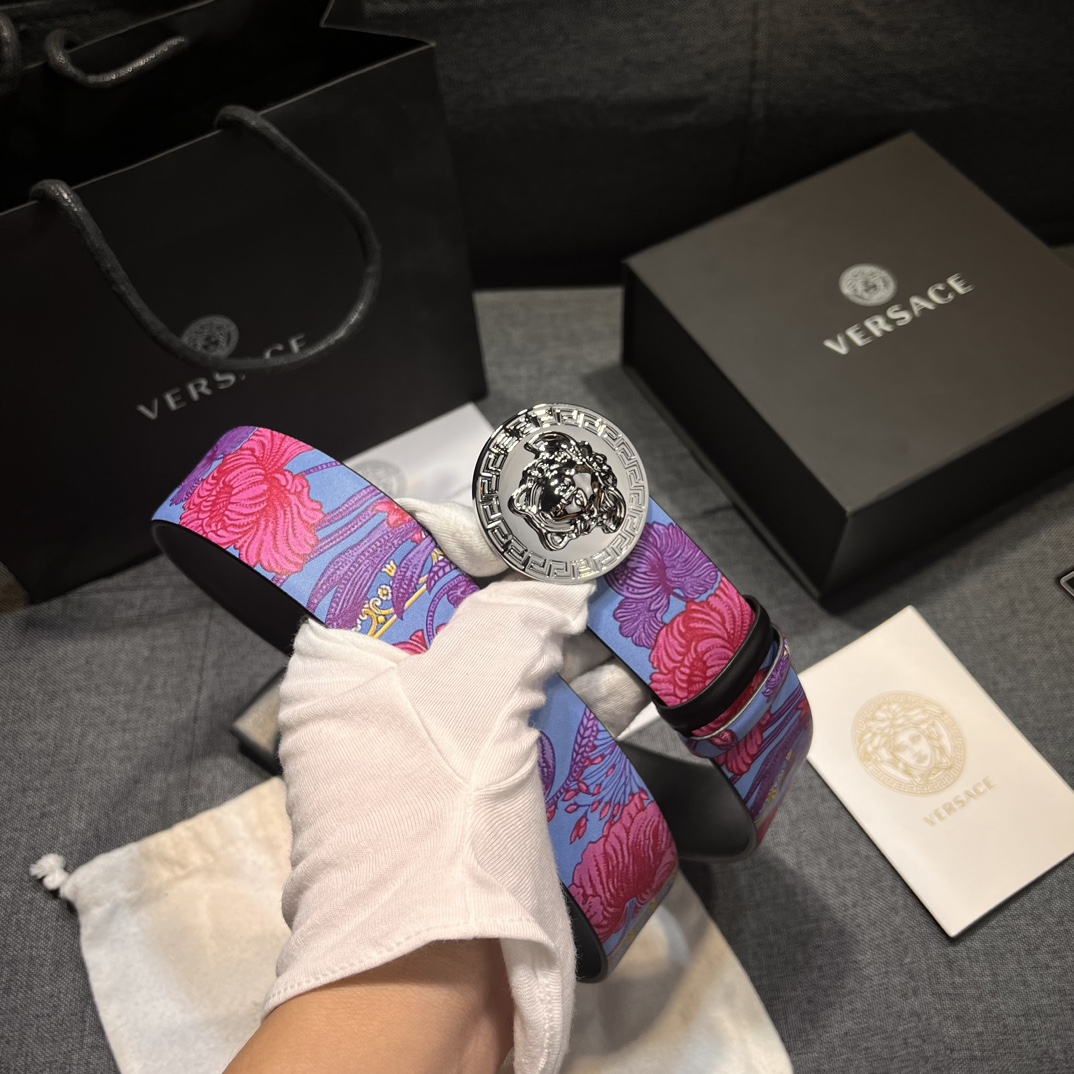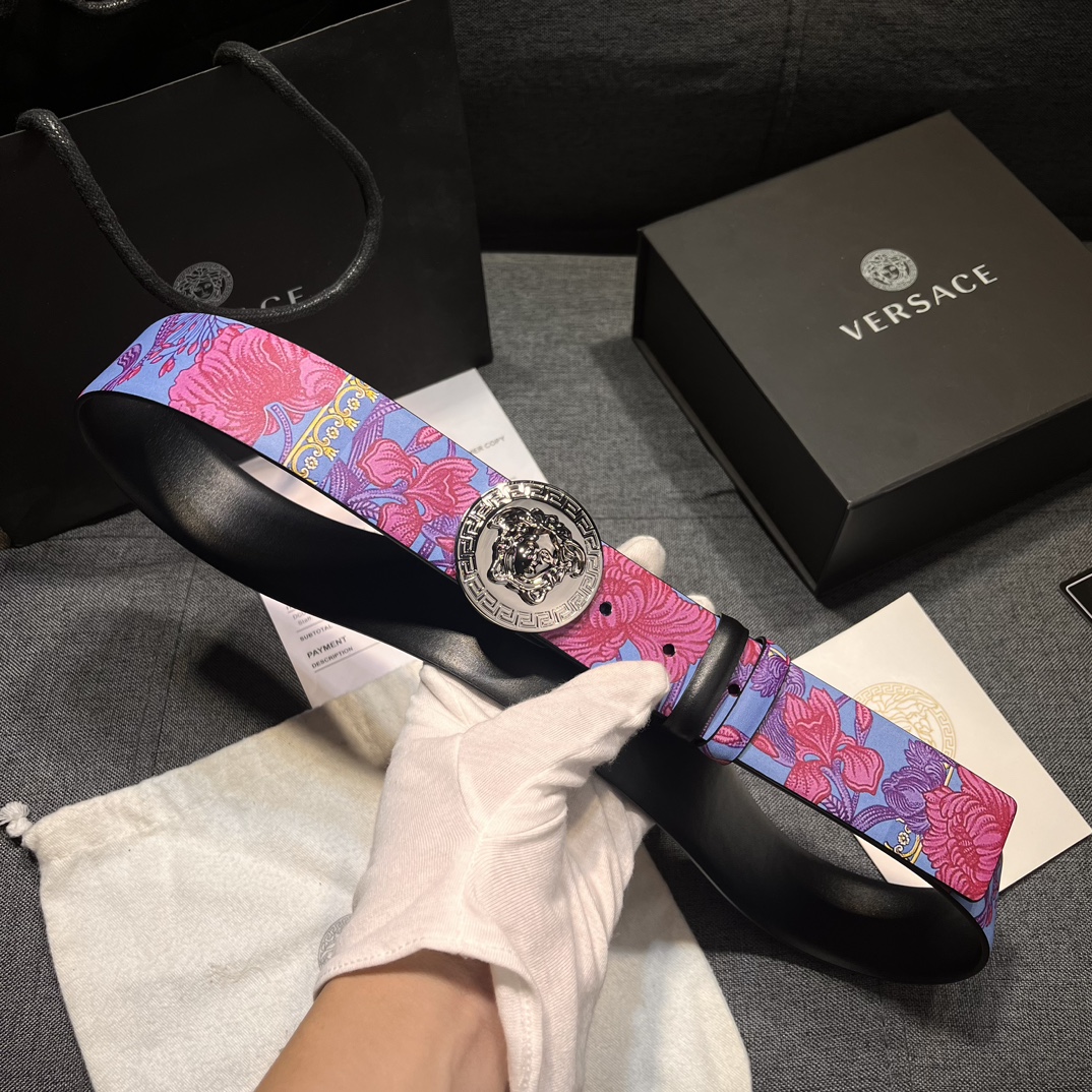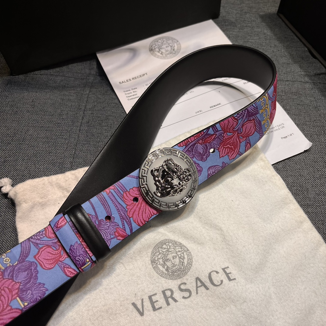 这款皮带是AAAAA 1:1 质量 (非常棒). 使用了和原版一模一样的材料. 商标部分也保持了和范思哲/Versace一样. 图片拍摄是实物皮带拍摄, 您所收到的实物保证和我们图片一模一样.