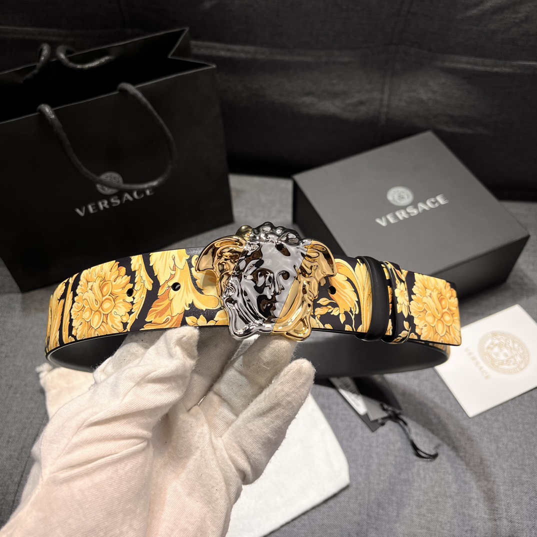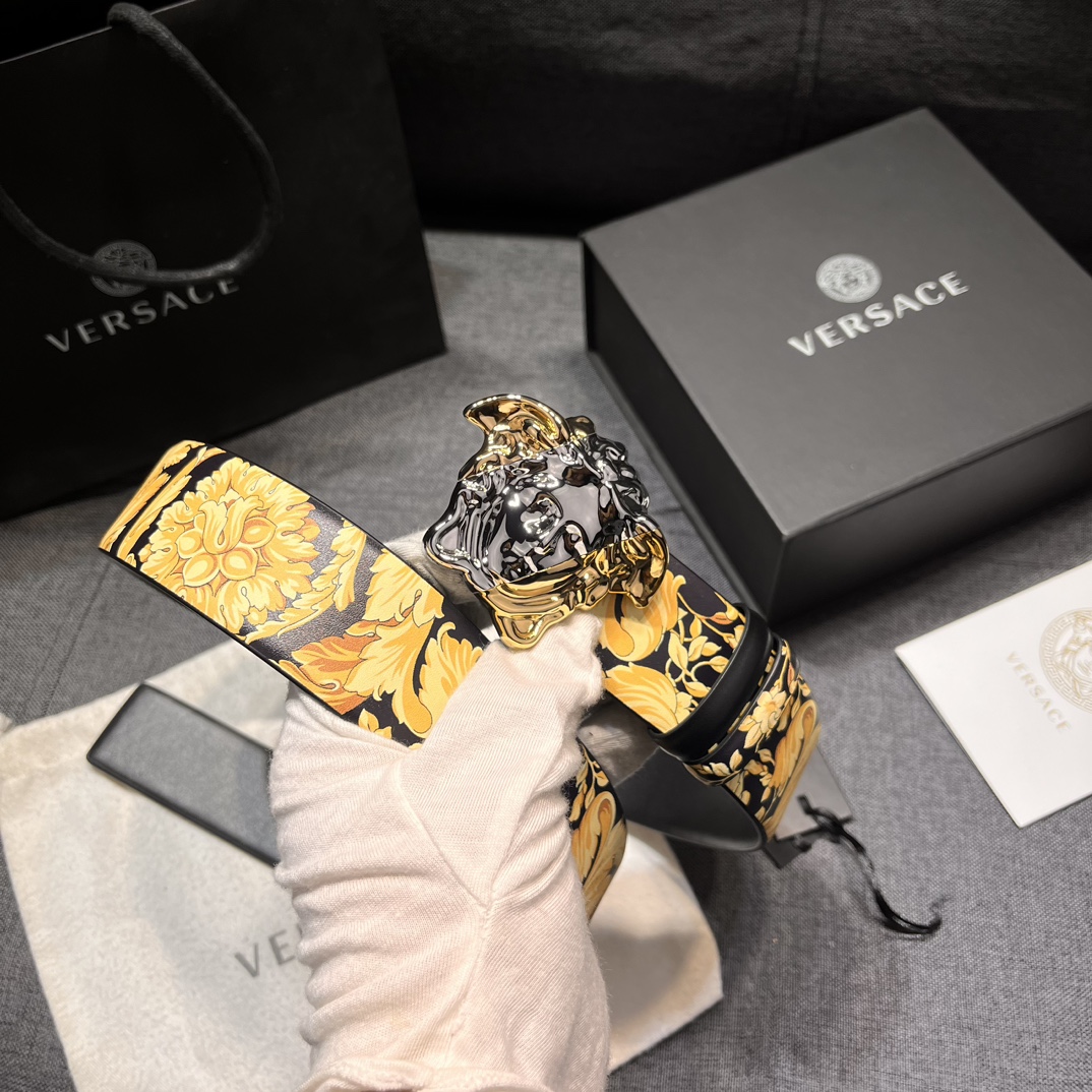 这款皮带是AAAAA 1:1 质量 (非常棒). 使用了和原版一模一样的材料. 商标部分也保持了和范思哲/Versace一样. 图片拍摄是实物皮带拍摄, 您所收到的实物保证和我们图片一模一样.