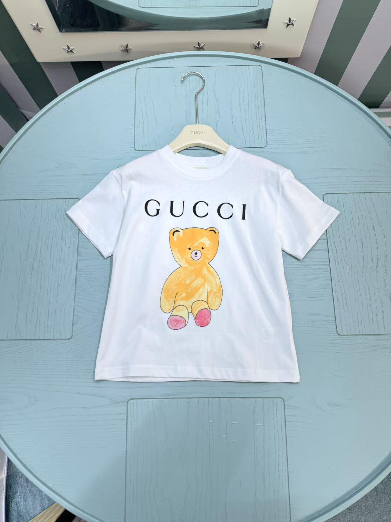 这款children's clothes是AAAAA 1:1 质量 (非常棒). 使用了和原版一模一样的材料. 商标部分也保持了和古奇/Gucci一样. 图片拍摄是实物children's clothes拍摄, 您所收到的实物保证和我们图片一模一样.