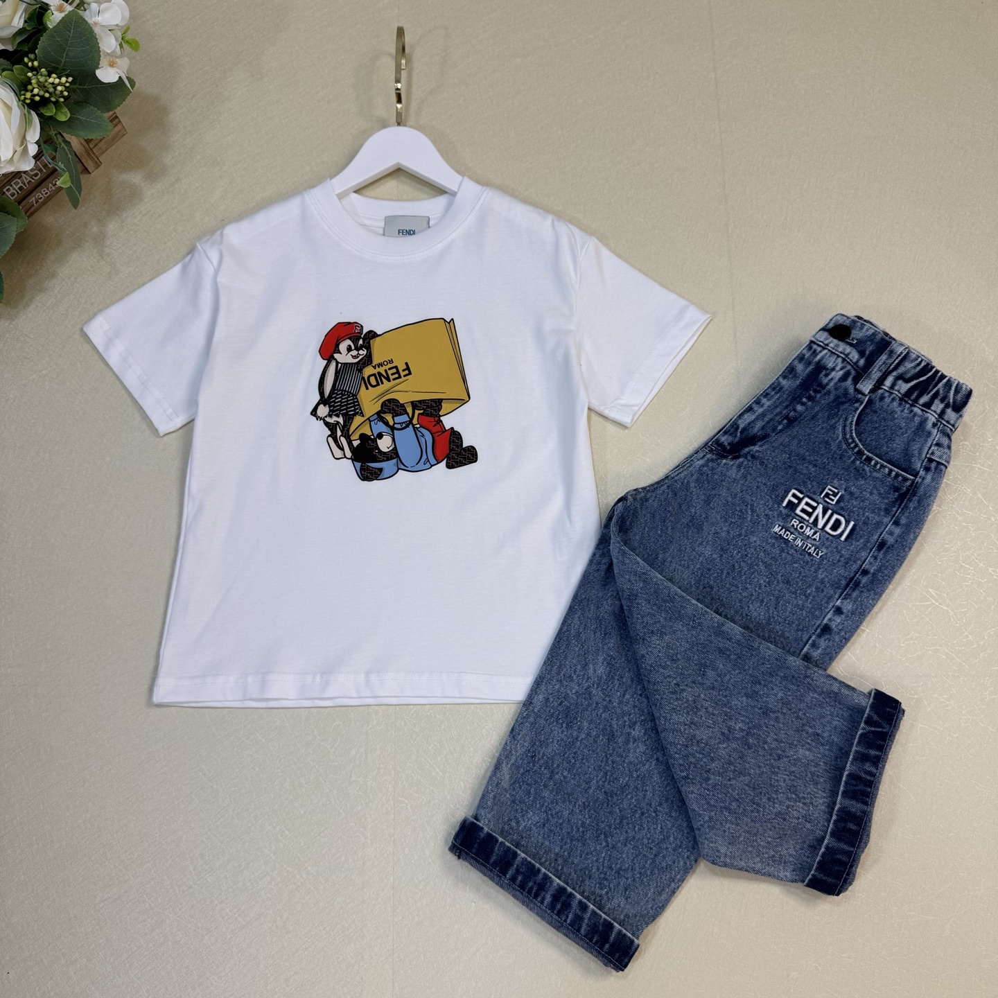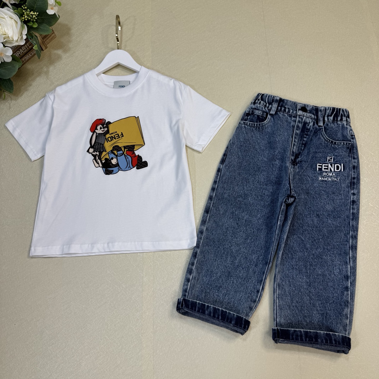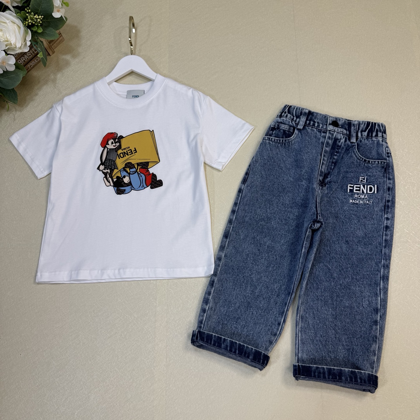这款children's clothes是AAAAA 1:1 质量 (非常棒). 使用了和原版一模一样的材料. 商标部分也保持了和芬迪/Fendi一样. 图片拍摄是实物children's clothes拍摄, 您所收到的实物保证和我们图片一模一样.