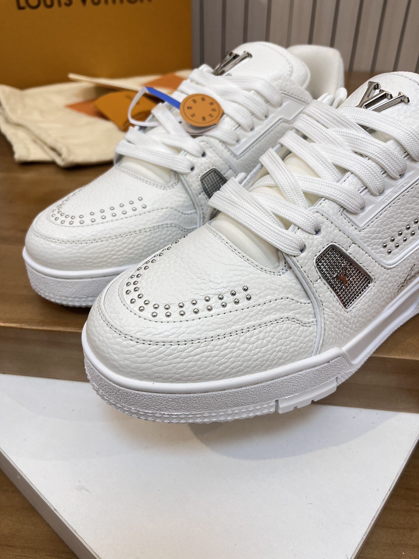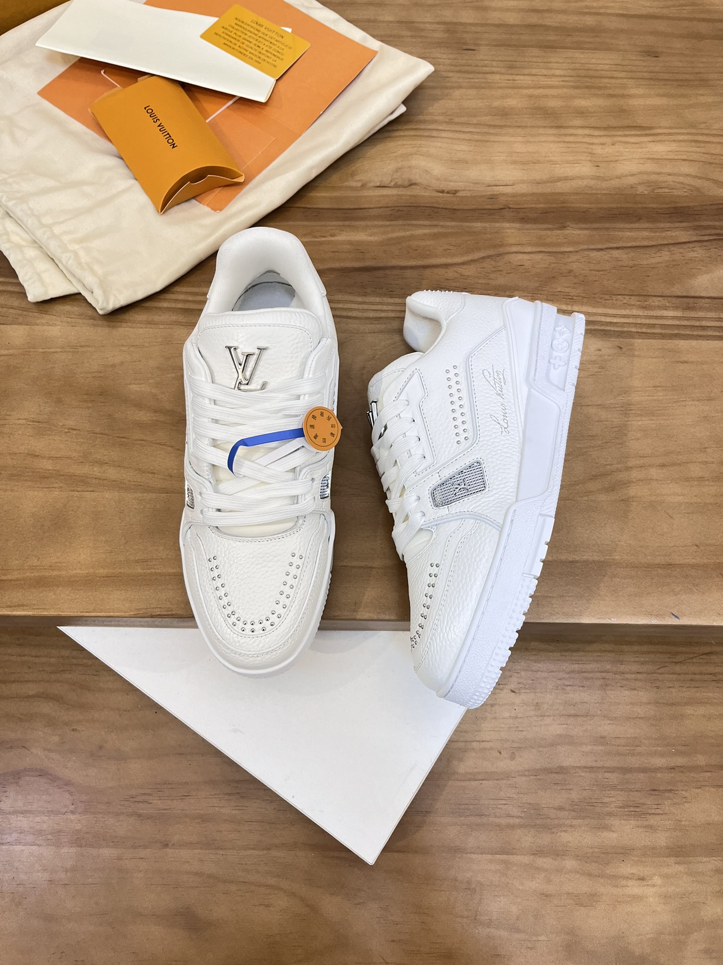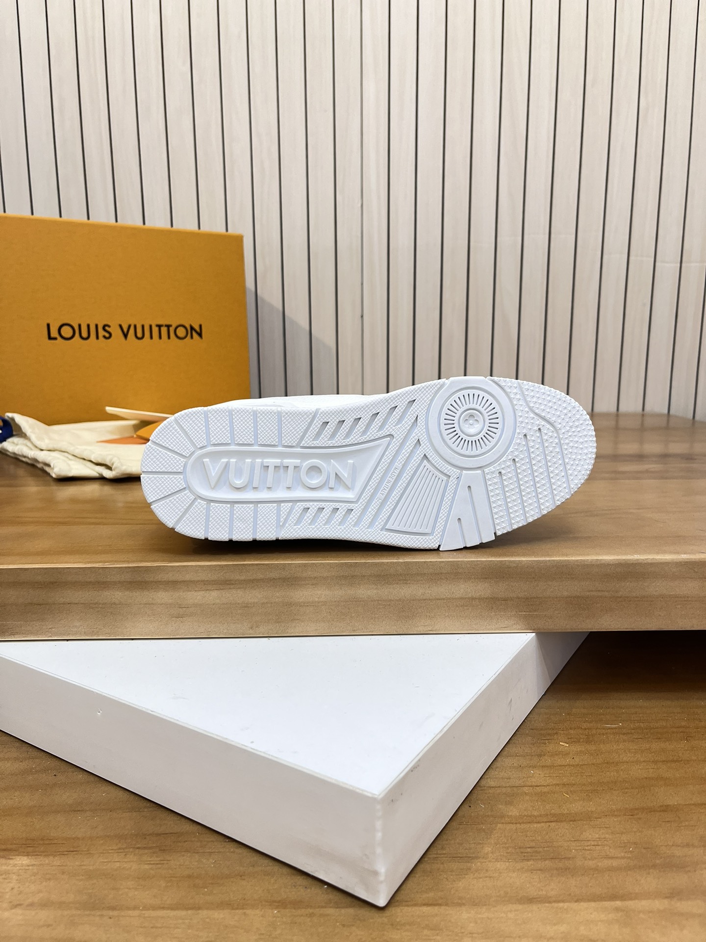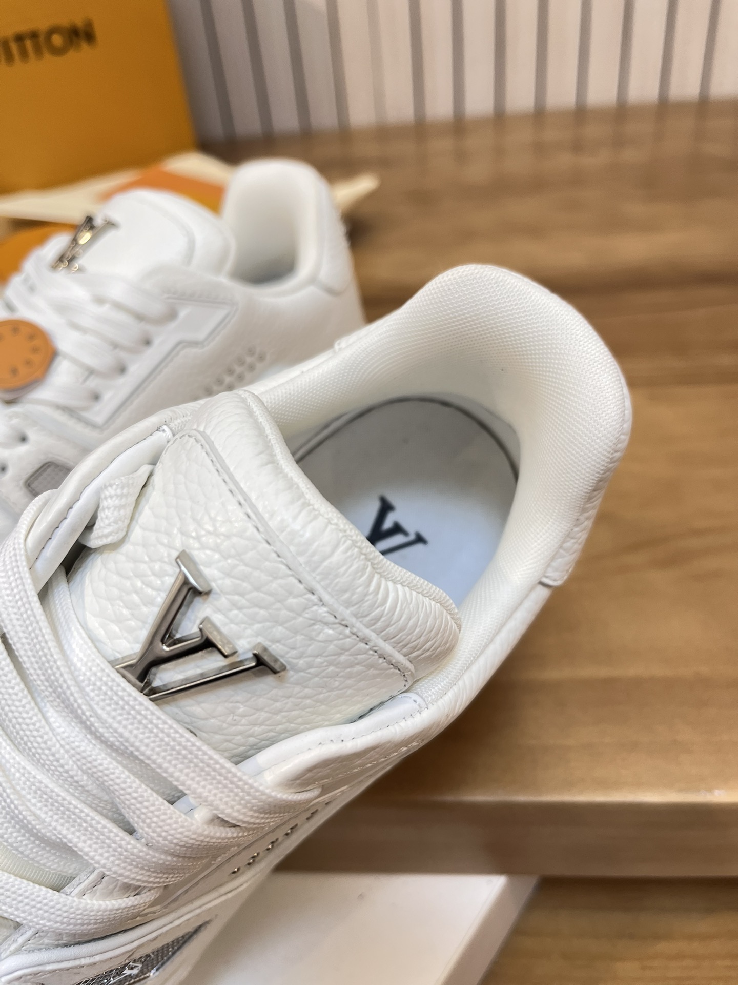 这款鞋子是AAAAA 1:1 质量 (非常棒). 使用了和原版一模一样的材料. 商标部分也保持了和路易威登/Louis Vuitton一样. 图片拍摄是实物鞋子拍摄, 您所收到的实物保证和我们图片一模一样.