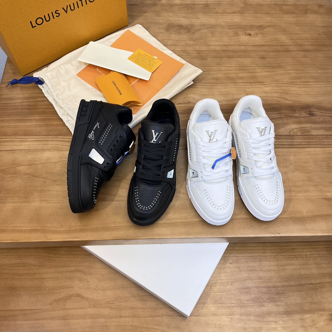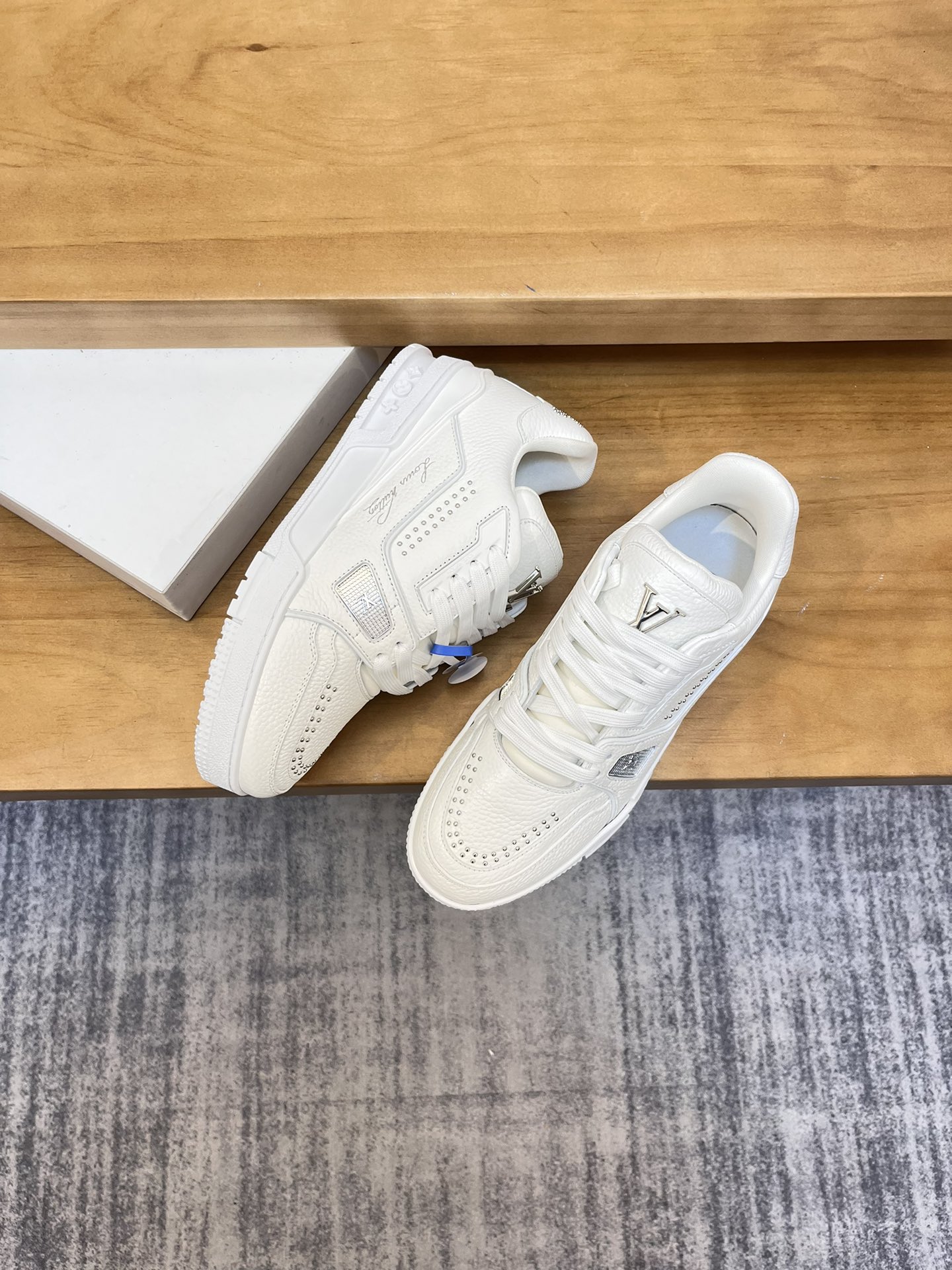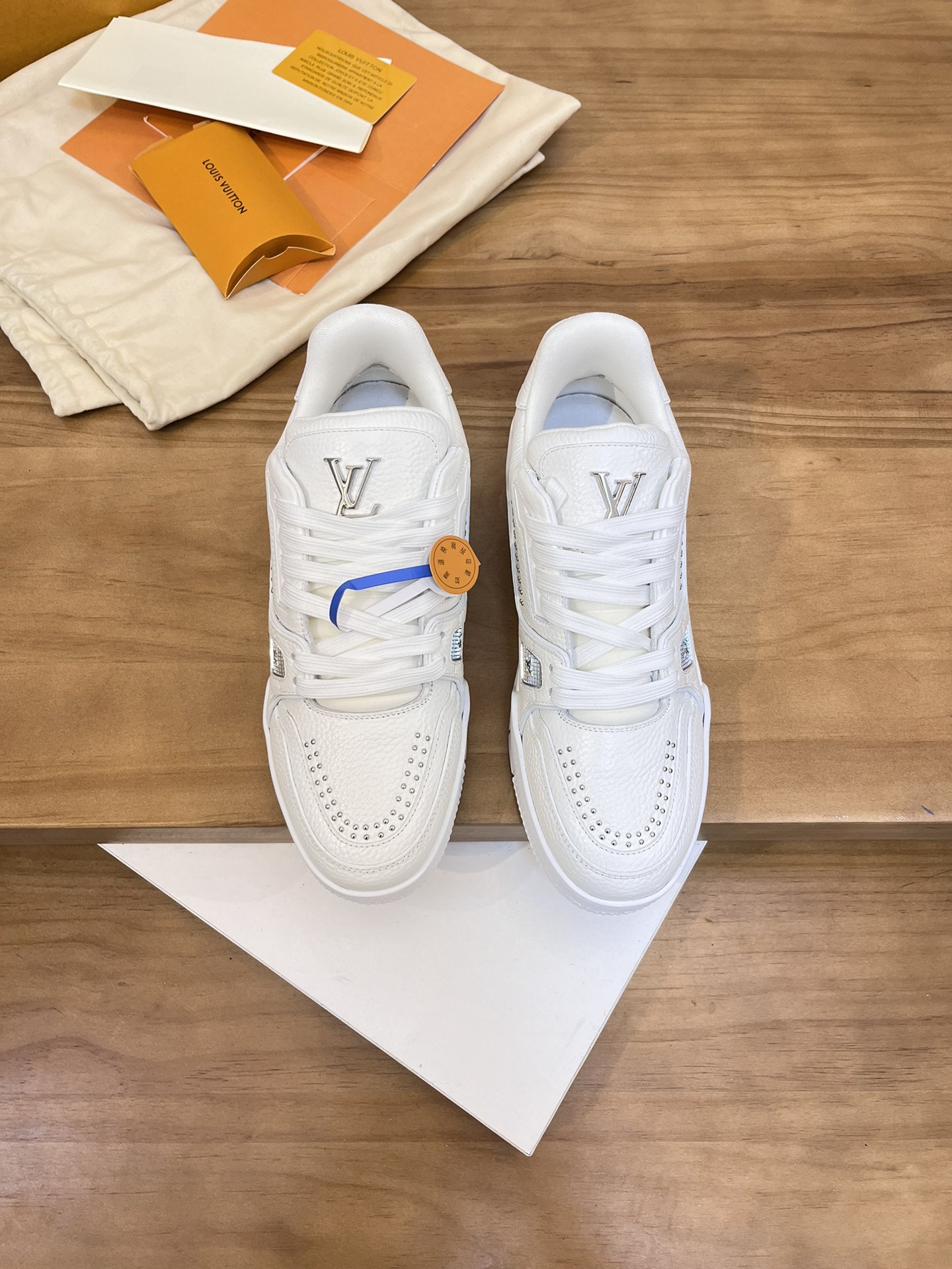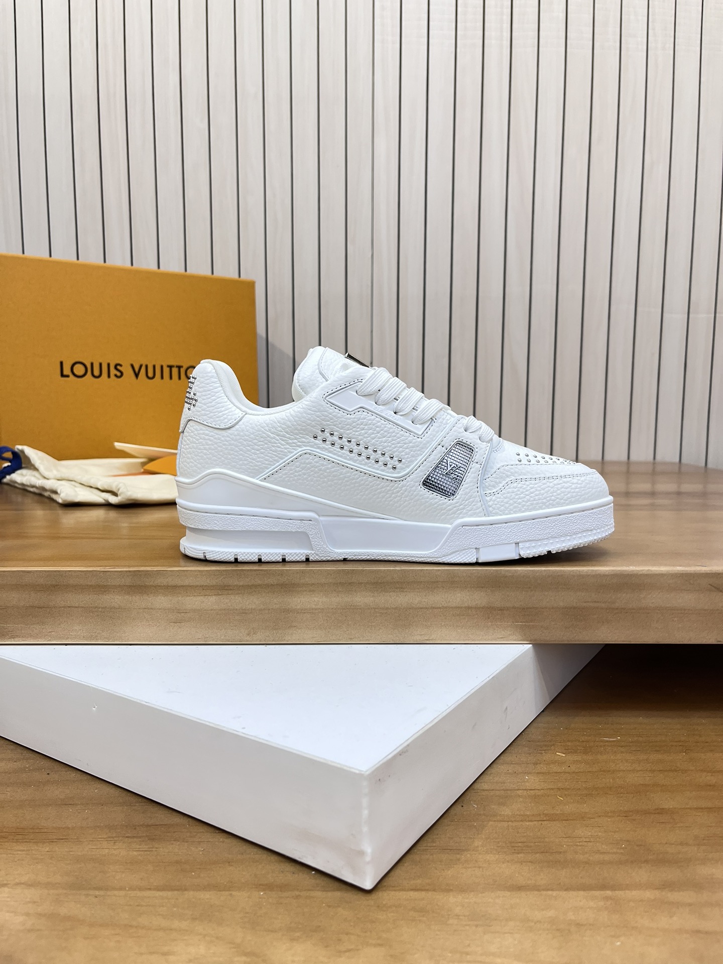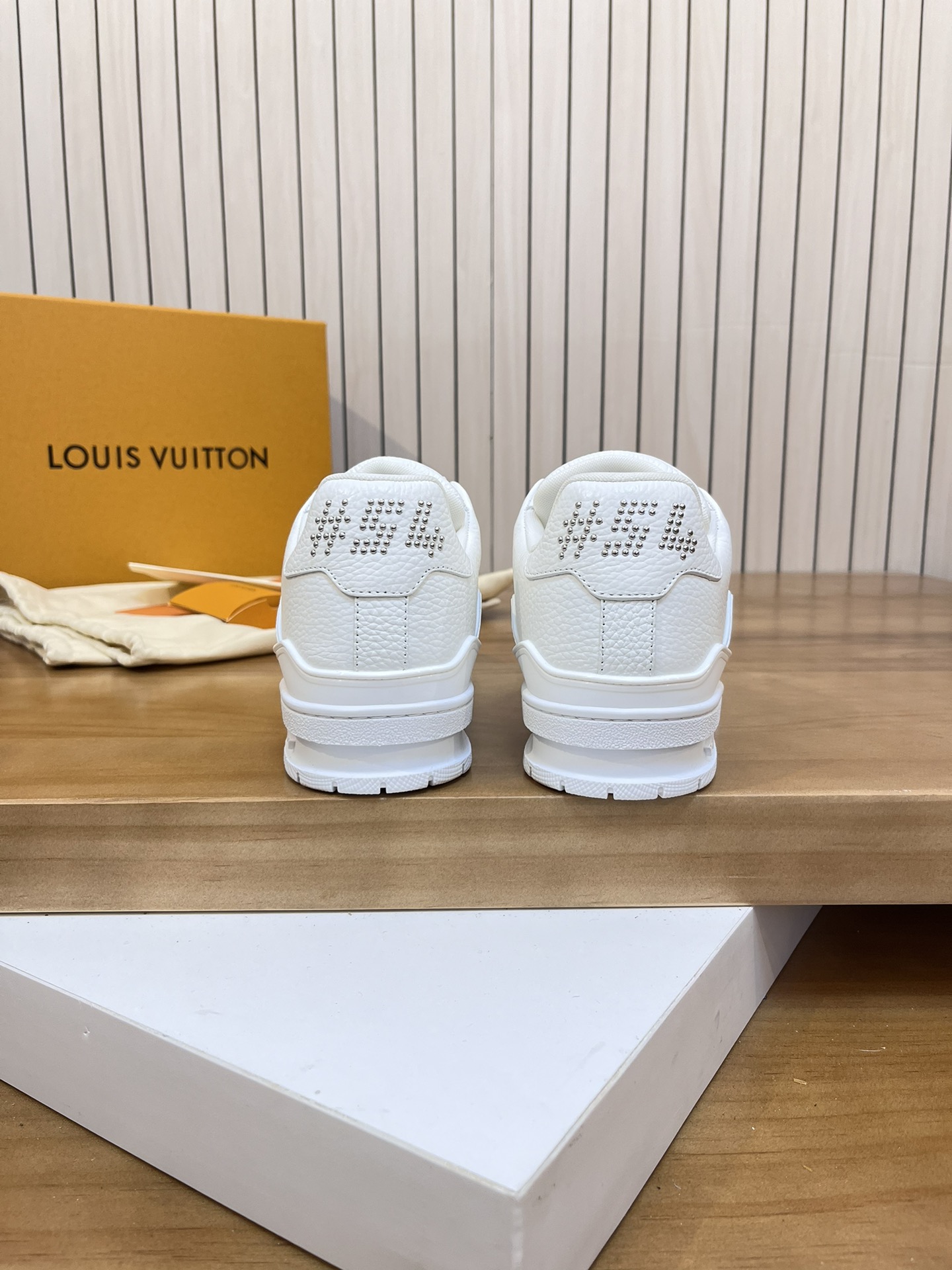 这款鞋子是AAAAA 1:1 质量 (非常棒). 使用了和原版一模一样的材料. 商标部分也保持了和路易威登/Louis Vuitton一样. 图片拍摄是实物鞋子拍摄, 您所收到的实物保证和我们图片一模一样.