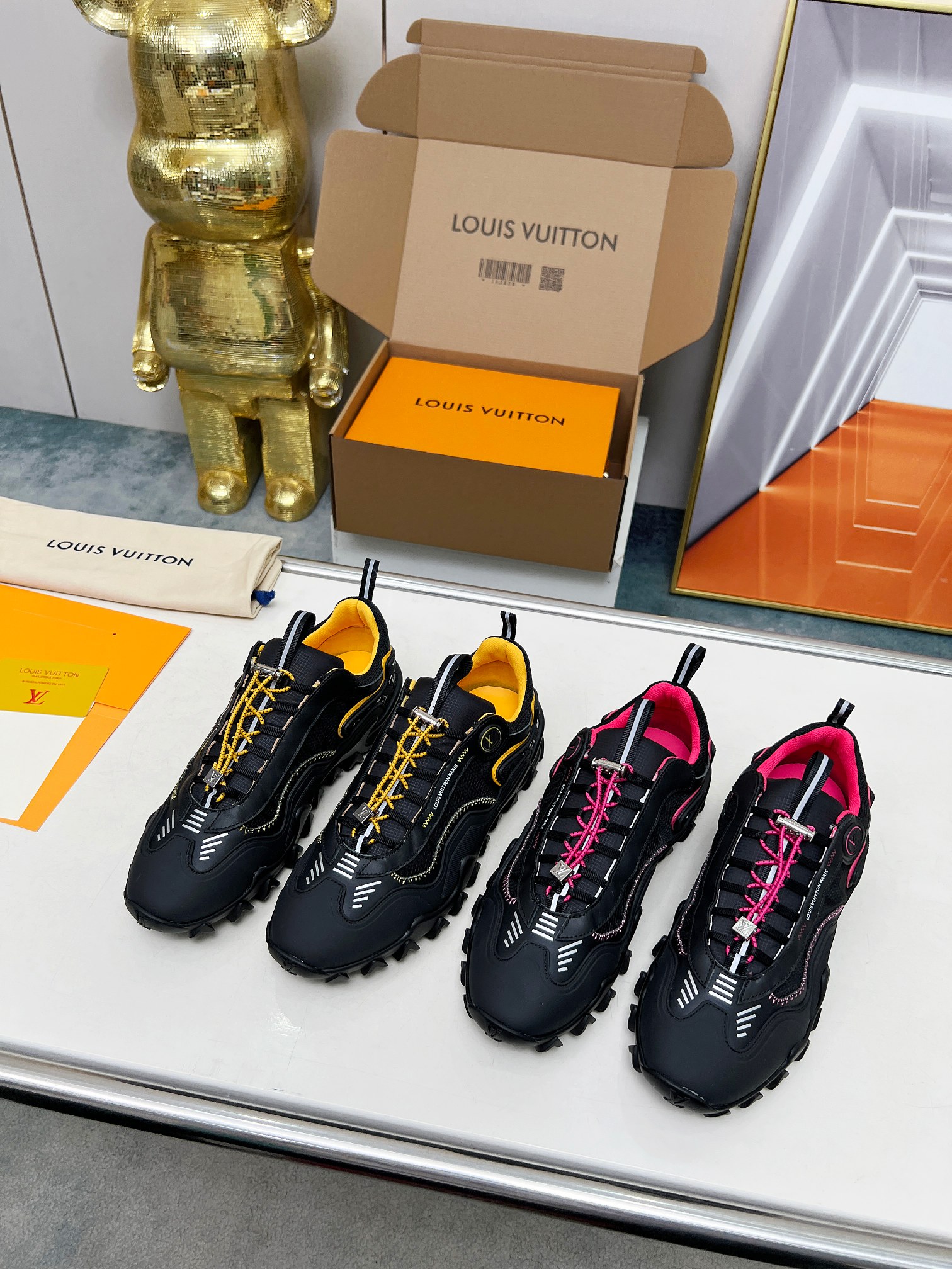 这款鞋子是AAAAA 1:1 质量 (非常棒). 使用了和原版一模一样的材料. 商标部分也保持了和路易威登/Louis Vuitton一样. 图片拍摄是实物鞋子拍摄, 您所收到的实物保证和我们图片一模一样.