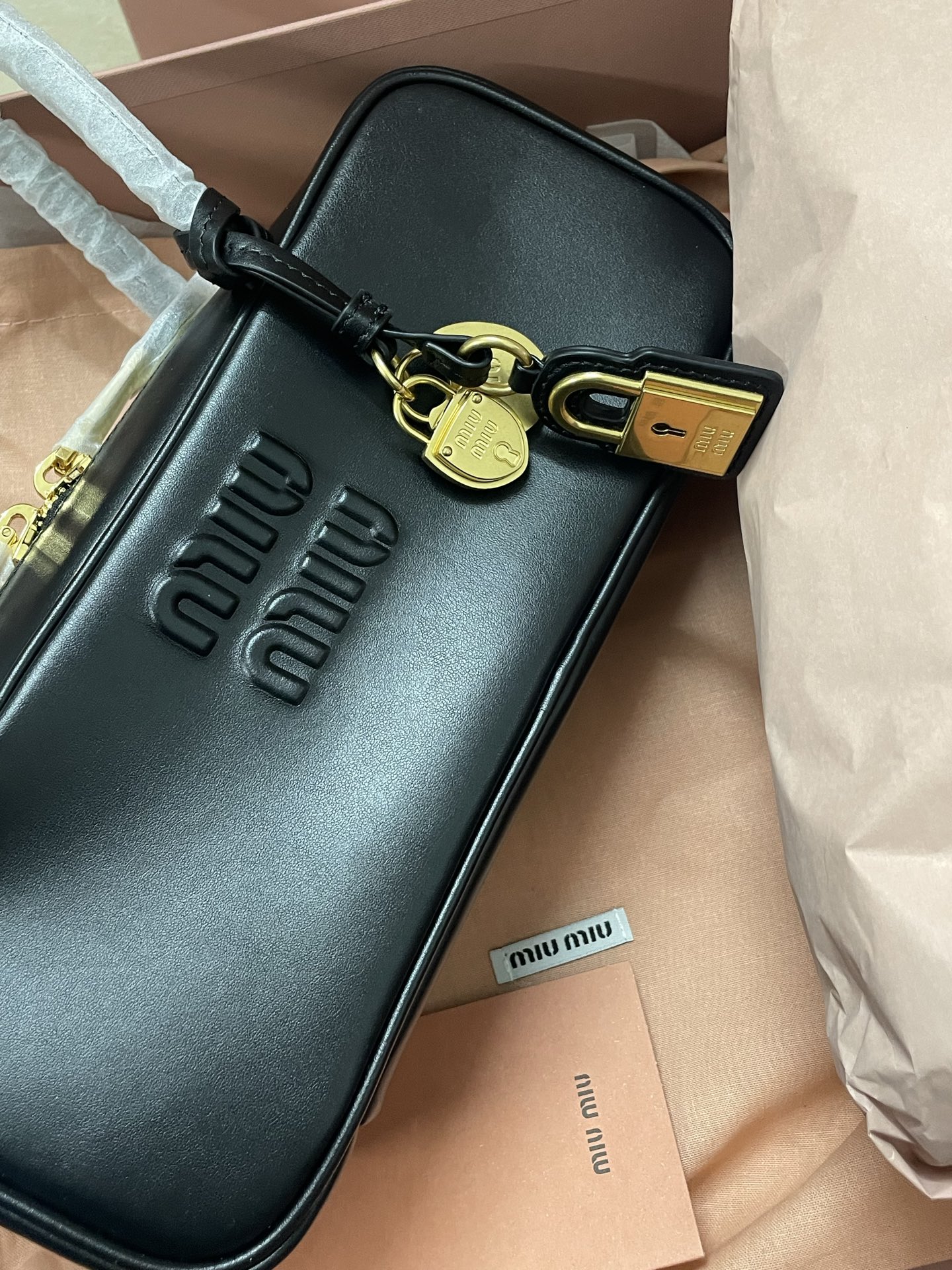 这款包包是AAAAA 1:1 质量 (非常棒). 使用了和原版一模一样的材料. 商标部分也保持了和缪缪/Miu Miu一样. 图片拍摄是实物包包拍摄, 您所收到的实物保证和我们图片一模一样.