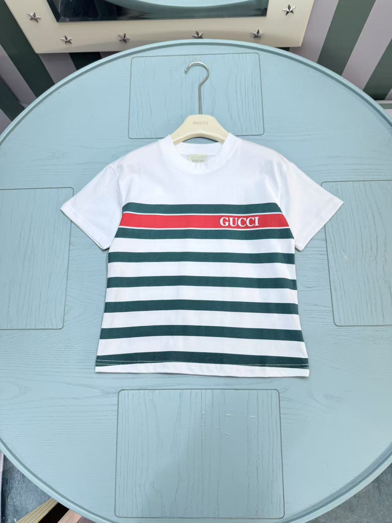 这款children's clothes是AAAAA 1:1 质量 (非常棒). 使用了和原版一模一样的材料. 商标部分也保持了和古奇/Gucci一样. 图片拍摄是实物children's clothes拍摄, 您所收到的实物保证和我们图片一模一样.