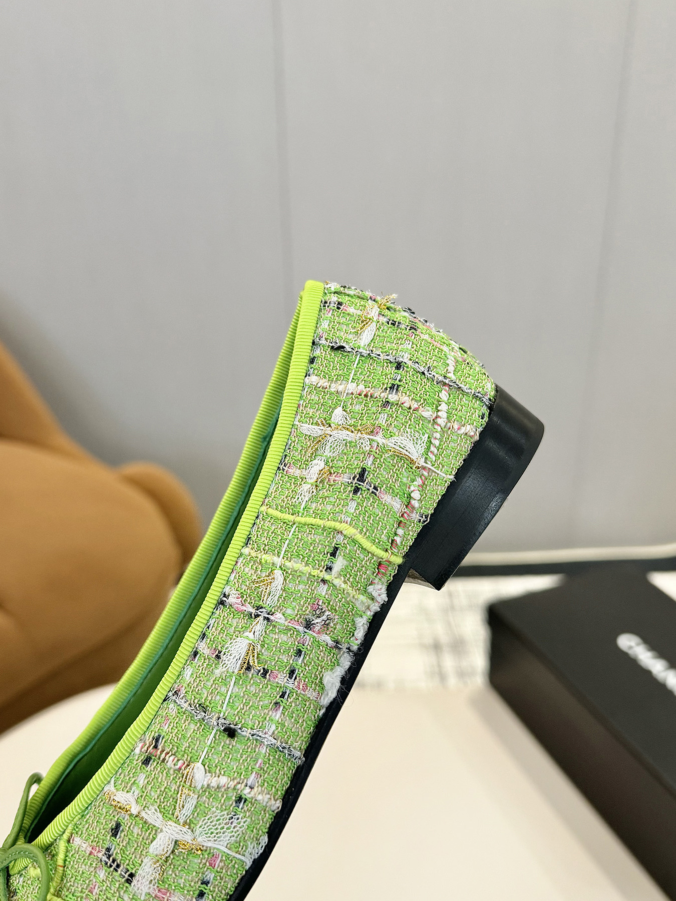 这款鞋子是AAAAA 1:1 质量 (非常棒). 使用了和原版一模一样的材料. 商标部分也保持了和香奈儿/Chanel一样. 图片拍摄是实物鞋子拍摄, 您所收到的实物保证和我们图片一模一样.
