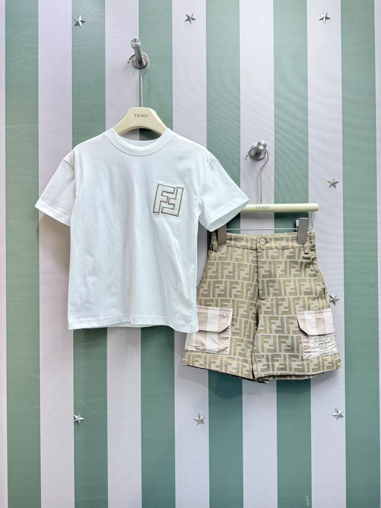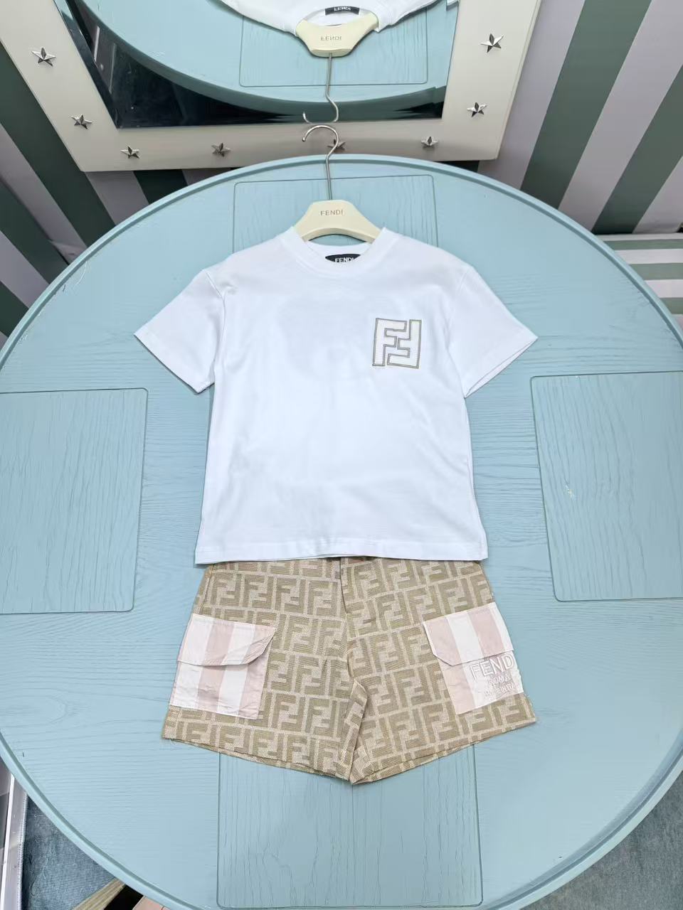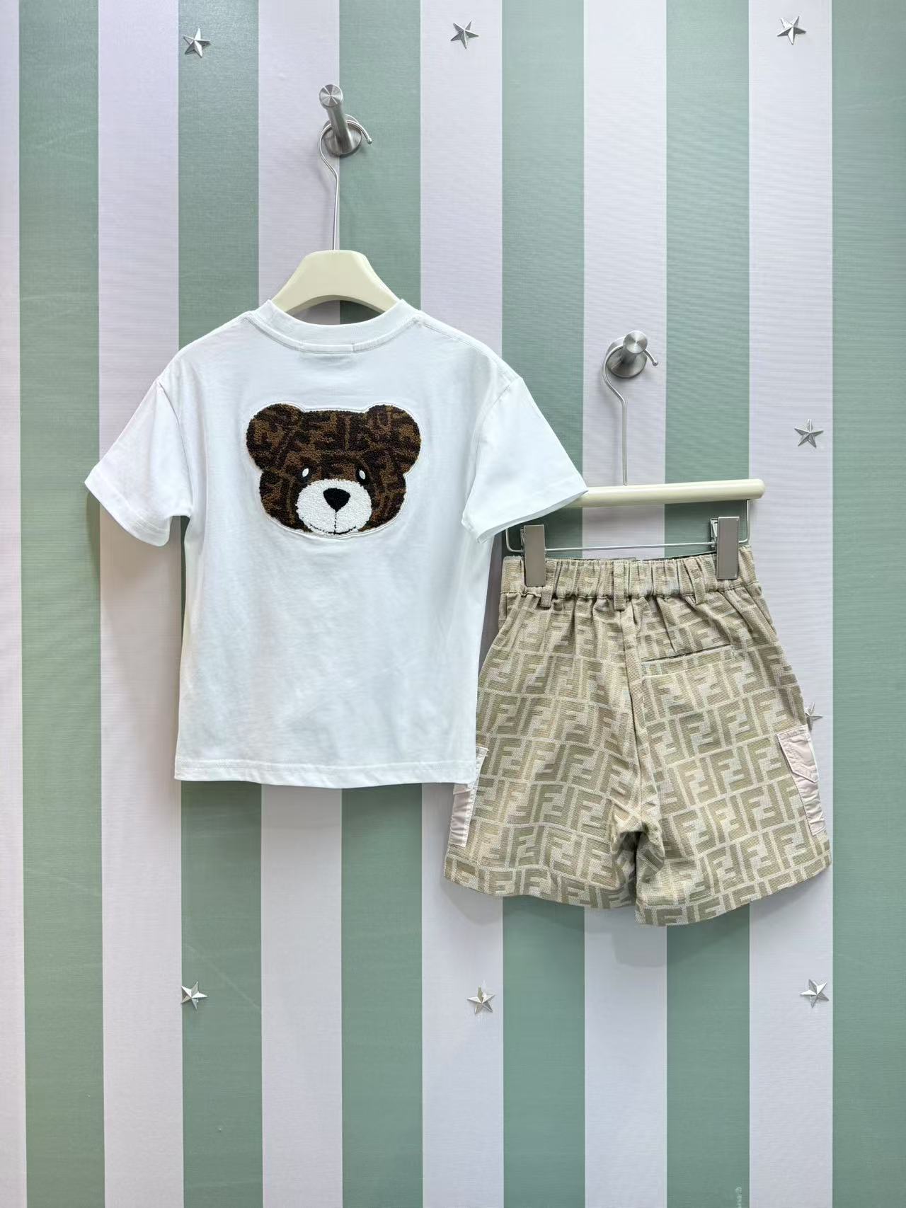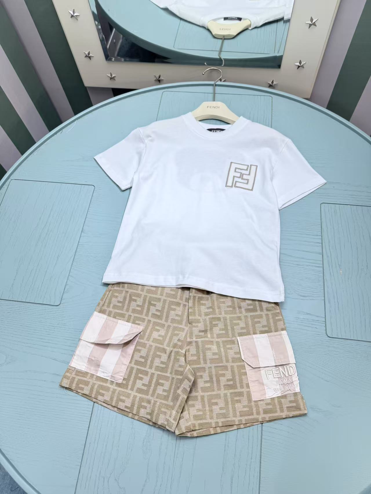 这款children's clothes是AAAAA 1:1 质量 (非常棒). 使用了和原版一模一样的材料. 商标部分也保持了和芬迪/Fendi一样. 图片拍摄是实物children's clothes拍摄, 您所收到的实物保证和我们图片一模一样.